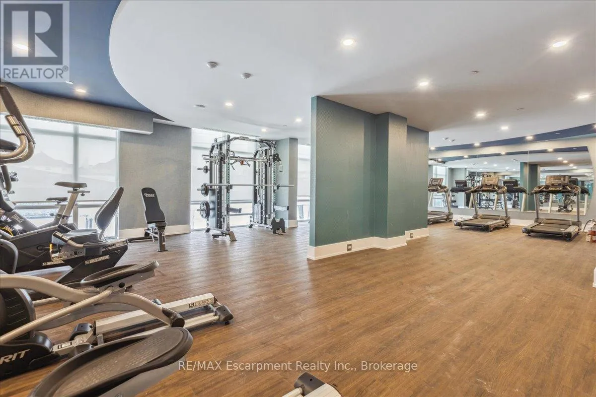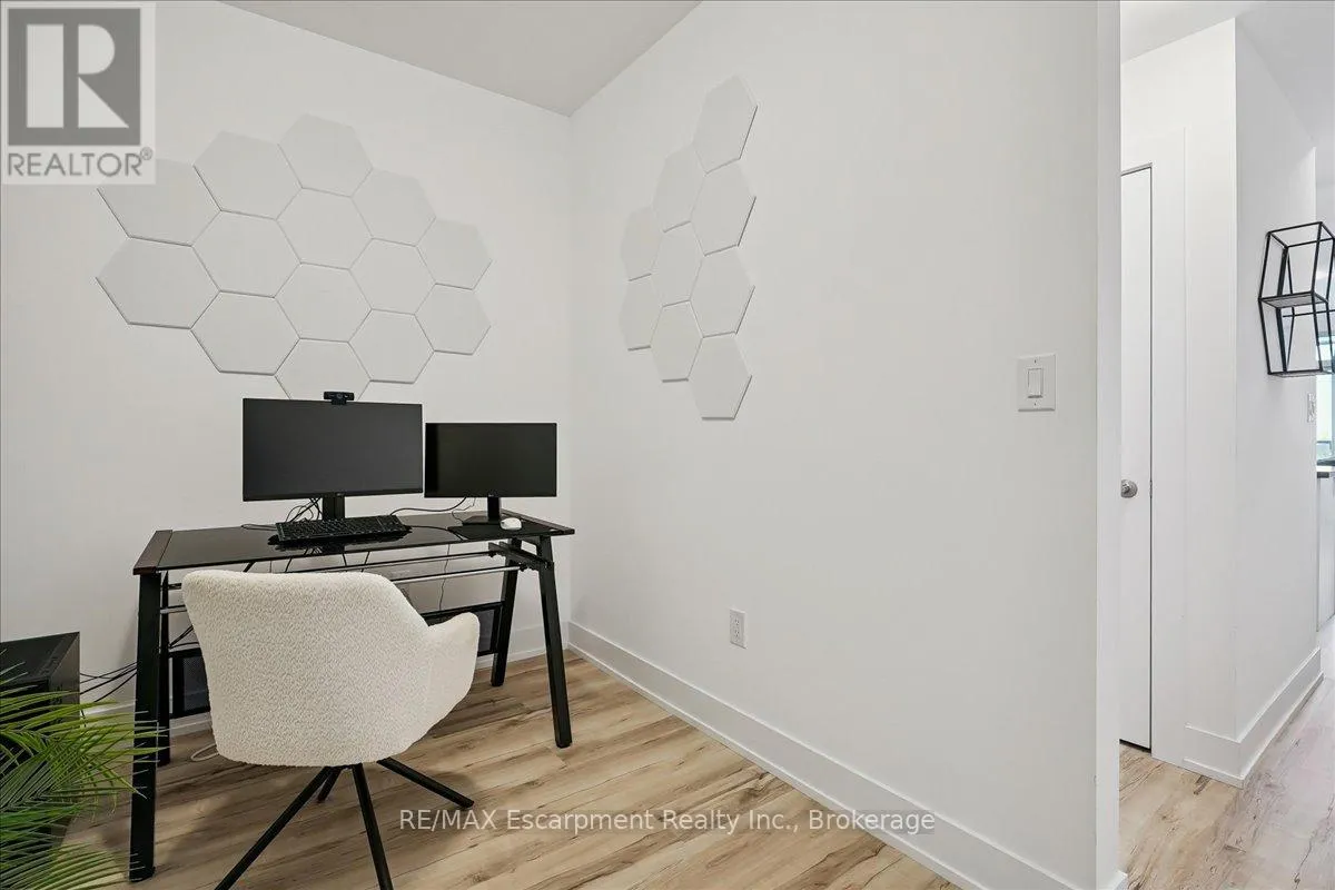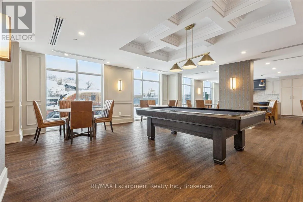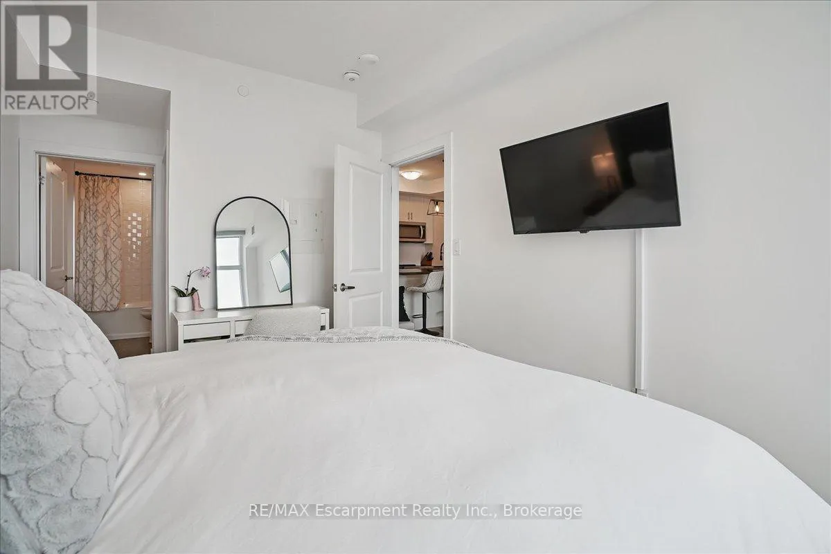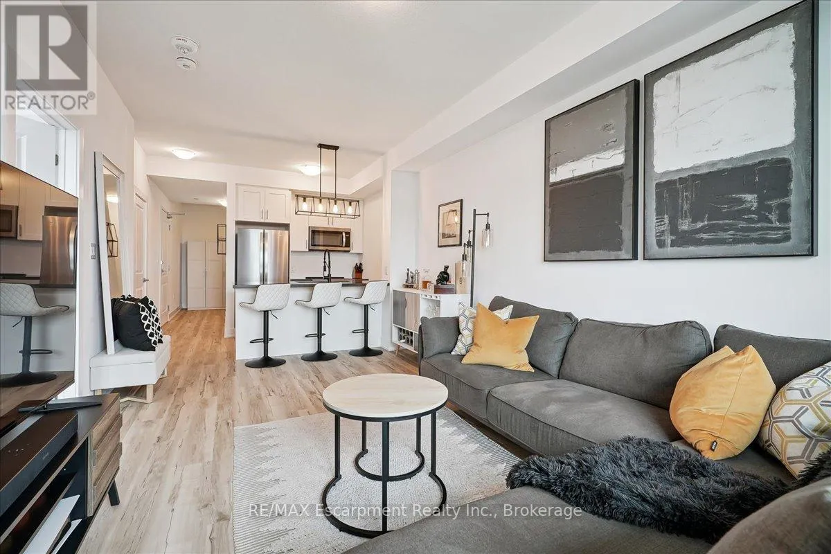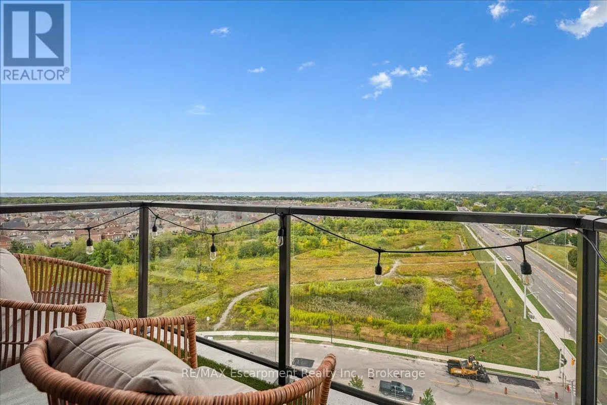 Dundas/Waterdown Rd LUXURIOUS ONE OF A KIND SPACIOUS LAYOUT with UNOBSTRUCTED VIEWS from your private balcony - 1 Bedroom Plus oversized den and 2 baths - the only model with 2 baths! Approximately 800 SF of living space and impressive HIGH END UPGRADES including Stainless-Steel appliances, built-in microwave/fan and a breakfast bar to accommodate 3-4 guests, 9' ceilings, quartz counters, designer lighting, modern blond-toned flooring throughout, ceiling-height cabinets, a separate walk-in laundry closet and so much more! The primary bedroom features a generous-sized walk-in closet, a 4-piece ensuite and that undeniable escarpment view! Amenities include a fabulous community and games room, theatre, bike storage room, and roof top with BBQs. The GO train is minutes away and access to all highways. Energy efficient geothermal building means low monthly utilities. Luxury living and lifestyle at its finest! 1 underground parking spot and 1 locker! (id:27476)