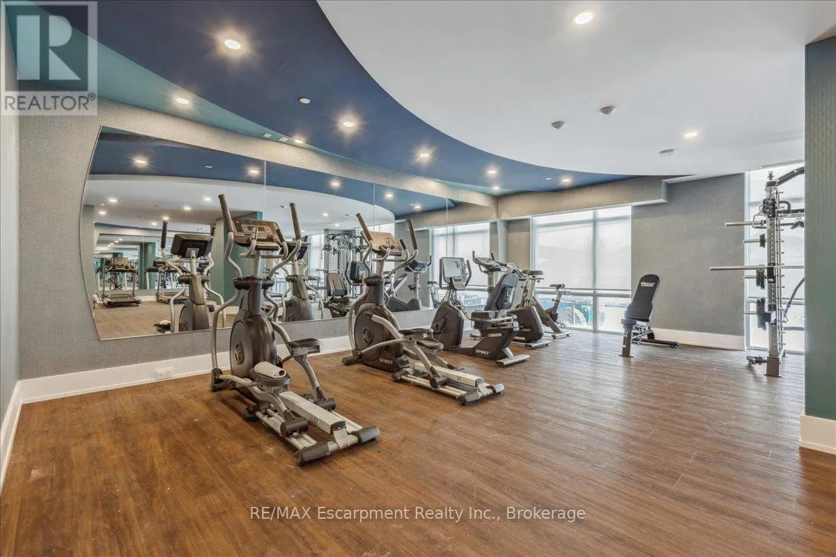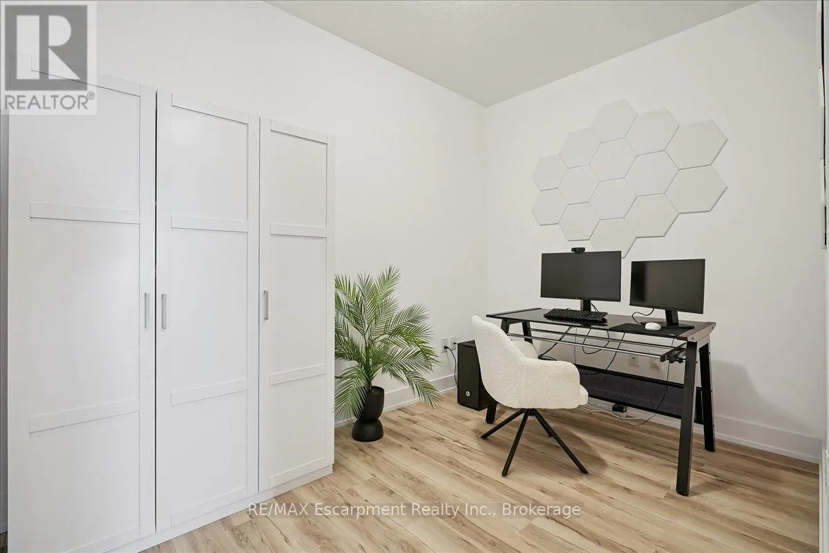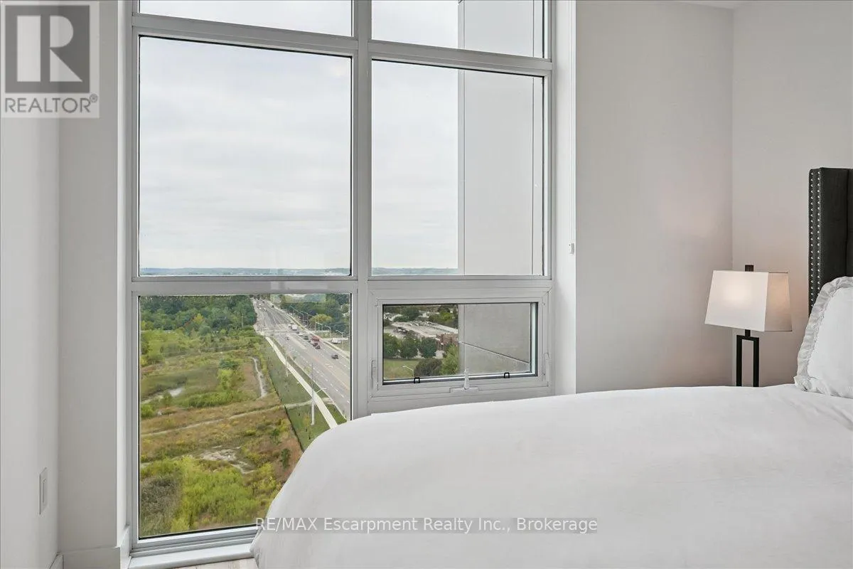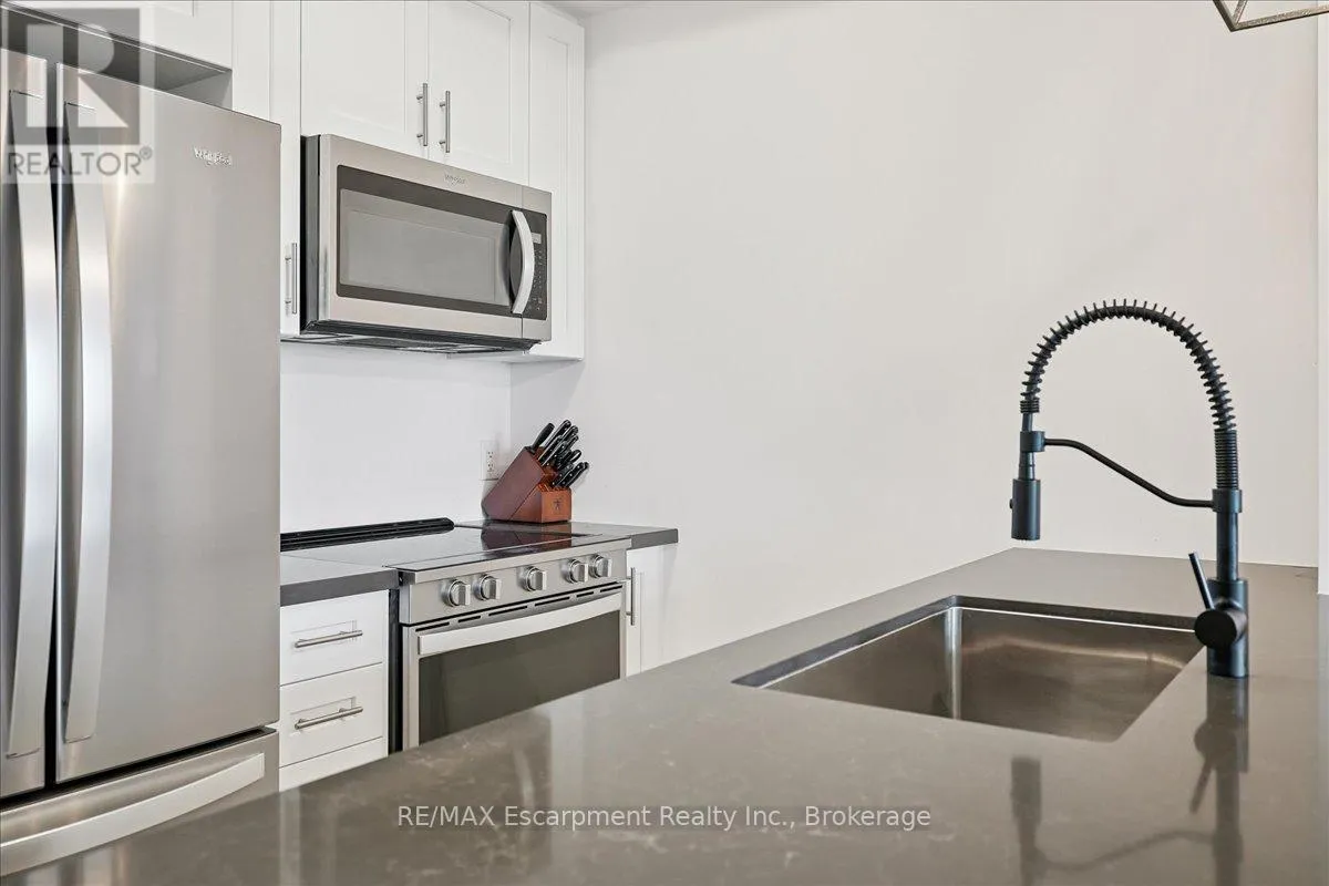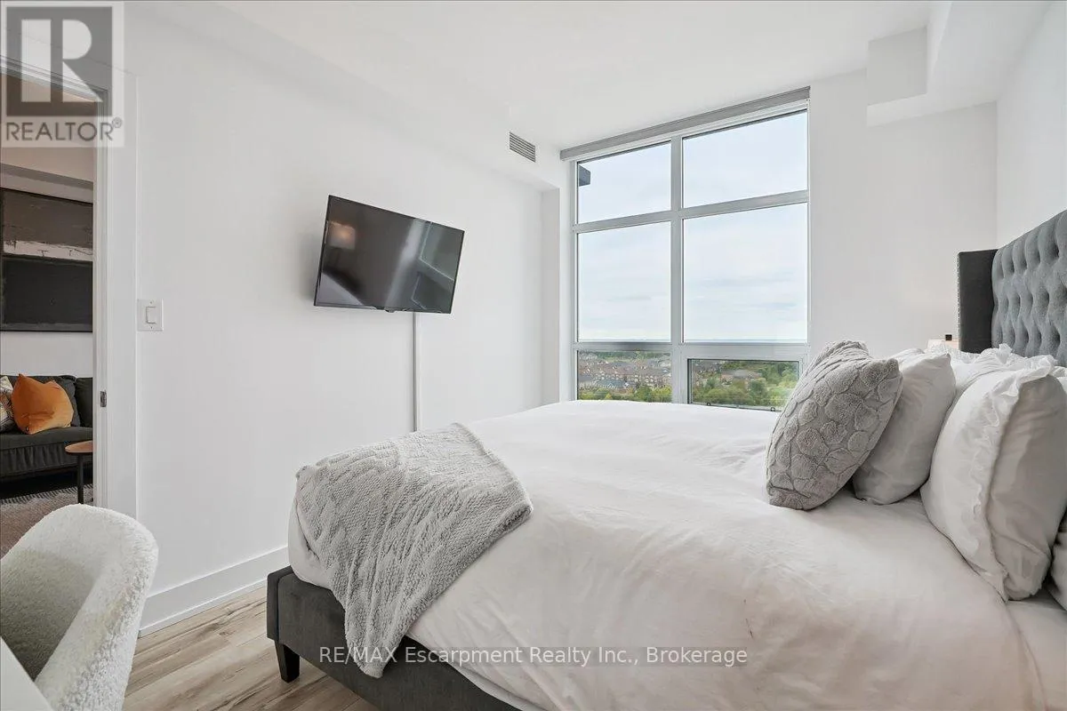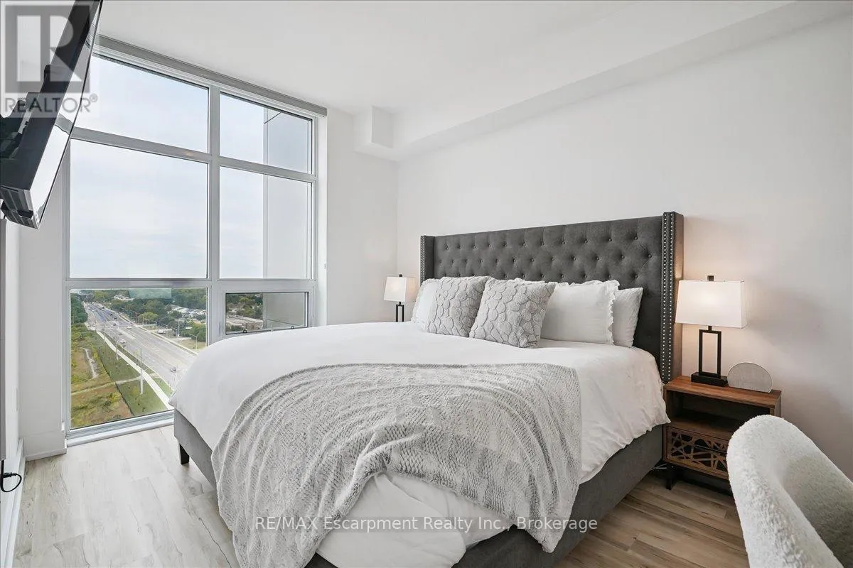 Dundas/Waterdown Rd LUXURIOUS ONE OF A KIND SPACIOUS LAYOUT with UNOBSTRUCTED VIEWS from your private balcony - 1 Bedroom Plus oversized den and 2 baths - the only model with 2 baths! Approximately 800 SF of living space and impressive HIGH END UPGRADES including Stainless-Steel appliances, built-in microwave/fan and a breakfast bar to accommodate 3-4 guests, 9' ceilings, quartz counters, designer lighting, modern blond-toned flooring throughout, ceiling-height cabinets, a separate walk-in laundry closet and so much more! The primary bedroom features a generous-sized walk-in closet, a 4-piece ensuite and that undeniable escarpment view! Amenities include a fabulous community and games room, theatre, bike storage room, and roof top with BBQs. The GO train is minutes away and access to all highways. Energy efficient geothermal building means low monthly utilities. Luxury living and lifestyle at its finest! 1 underground parking spot and 1 locker! (id:27476)