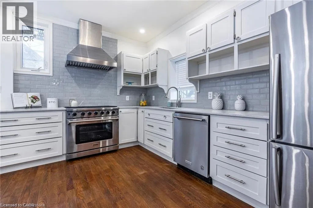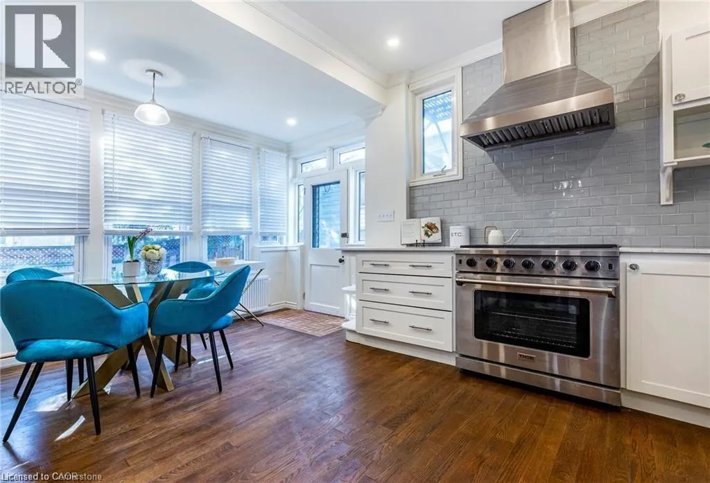 MAIN ST. E TO ST. CLAIR AVE Welcome to this thoughtfully restored home in Hamiltonâs desirable Gibson South neighbourhood. Blending historic character with modern updates, this property features original woodwork, banisters, and stained-glass windows. The main floor unit offers a bright eat-in kitchen with stainless steel appliances and a large gas burner stove. Original hardwood flooring runs throughout, complementing the spacious living area and generously sized primary bedroom. A second bedroom offers flexibility for use as a home office or guest room. The unit also enjoys exclusive access to the backyard, ideal for outdoor enjoyment. Conveniently located near schools, shops, restaurants, public transit, and with easy access to major highways, this home offers a rare opportunity to enjoy classic charm in a well-connected urban setting. (id:27476)