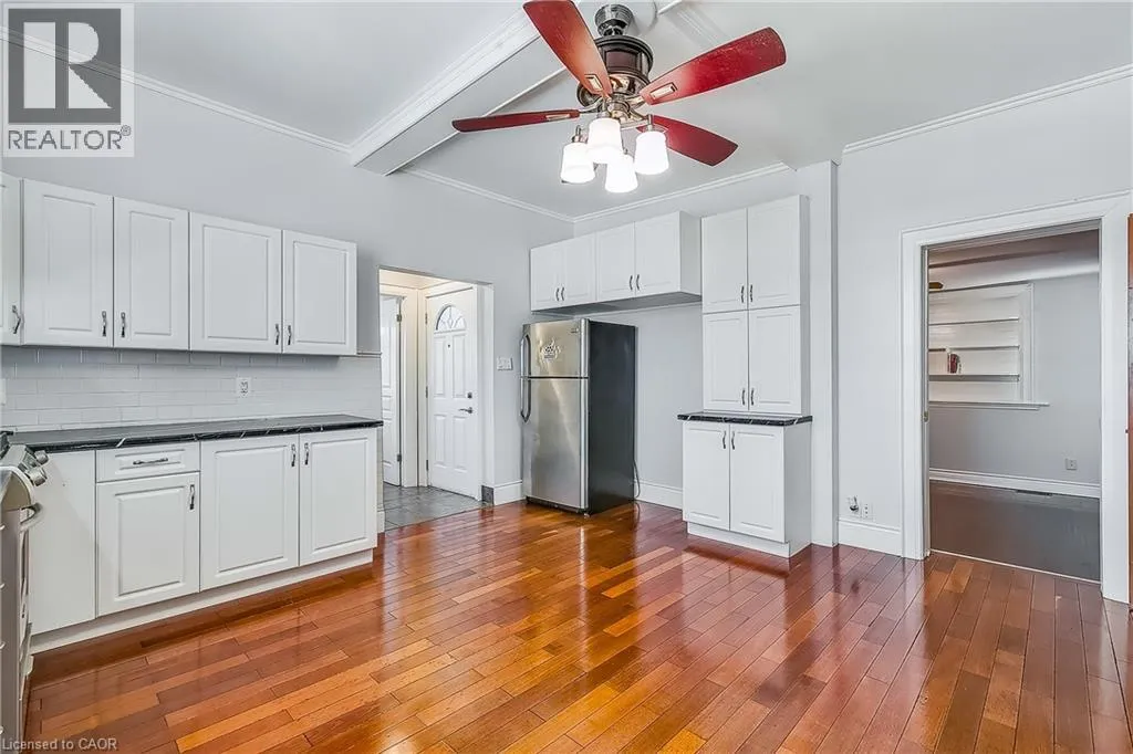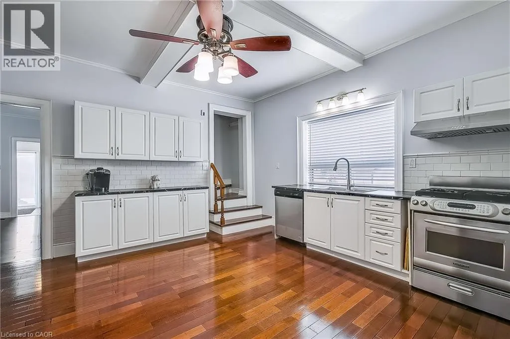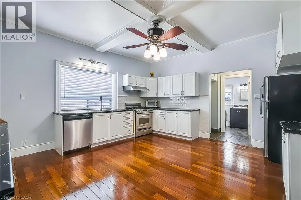 Parkdale Ave N to Roxborough Ave Welcome to this inviting family home in the sought-after Normanhurst neighborhood! This property features four spacious bedrooms, with three located on the upper floor and an additional bedroom on the main floor, perfect for guests or a home office. The heart of the home is a huge kitchen, ideal for cooking and entertaining. Enjoy a private, fenced backyard, perfect for summer barbecues and family gatherings. Theres ample parking space for multiple vehicles. Located conveniently close to Highway 403, the Queen Elizabeth Way (QEW), and the Red Hill Valley Parkway, commuting from this home is a breeze. The area is also rich with amenities, including shopping at the nearby mall and new developments that add to the neighborhood's appeal. (id:27476)