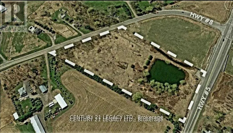 Cross Streets: Hwy 8/Hwy 5. ** Directions: South East intersections of Hwy 8 and Hwy 5. Major Price Improvement - Now $999,000 (Previously $1.275M)! Outstanding opportunity to own a prime 8.23-acre corner lot at the high-traffic intersection of Hwy 5 & Hwy 8. Zoned A2, offering a wide range of permitted uses including (but not limited to): Single Detached Dwelling, Residential Care Facility, Veterinary Services (Farm Animals), Kennel, Nursery, Home Industry, Agricultural Operations, Abattoir, Agricultural Processing, and Farm Product Supply. Development-Ready: Brand new drilled water well, Environmental Phase 1 completed, Hydrogeological and archaeological studies completed. Natural gas available at the lot line. Everything is in place to start building immediately (subject to zoning allowances). All completed studies and reports are included in the sale. Buyers and their agents are encouraged to perform their own due diligence regarding permitted uses and development regulations. Contact the City of Hamilton Zoning Department for full A2 zoning details. (id:27476)