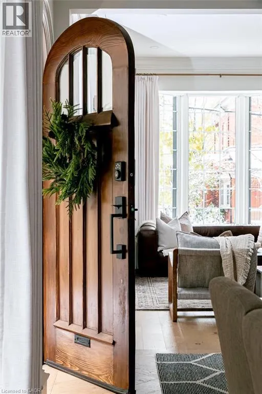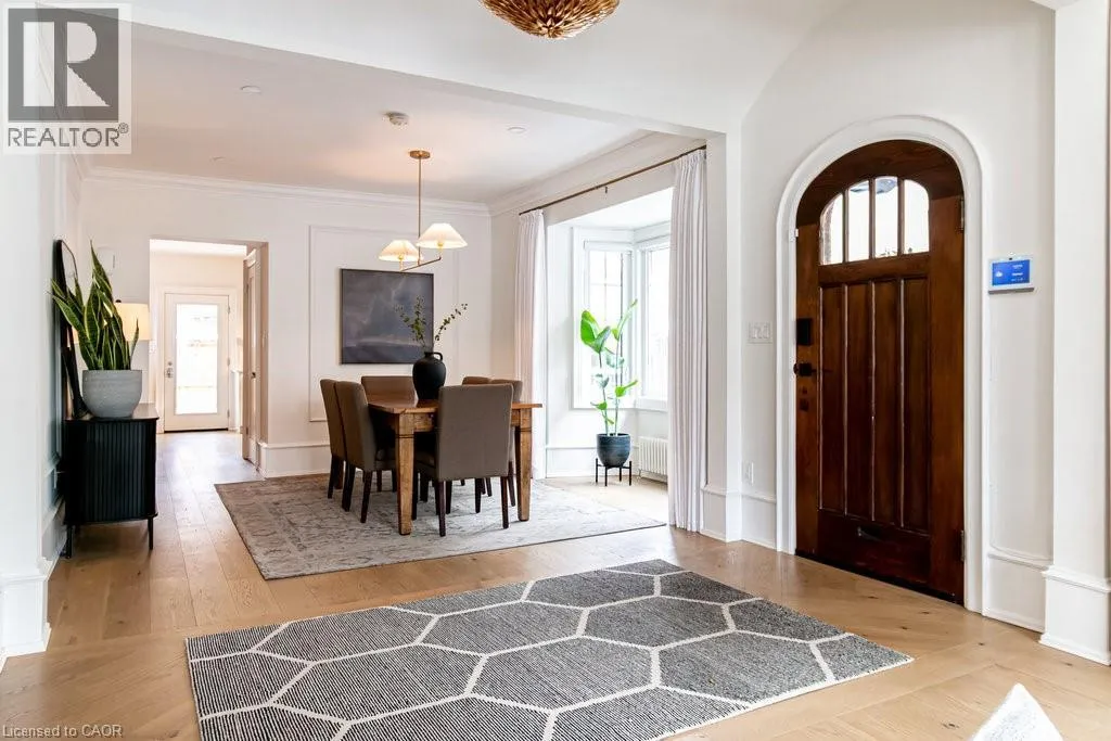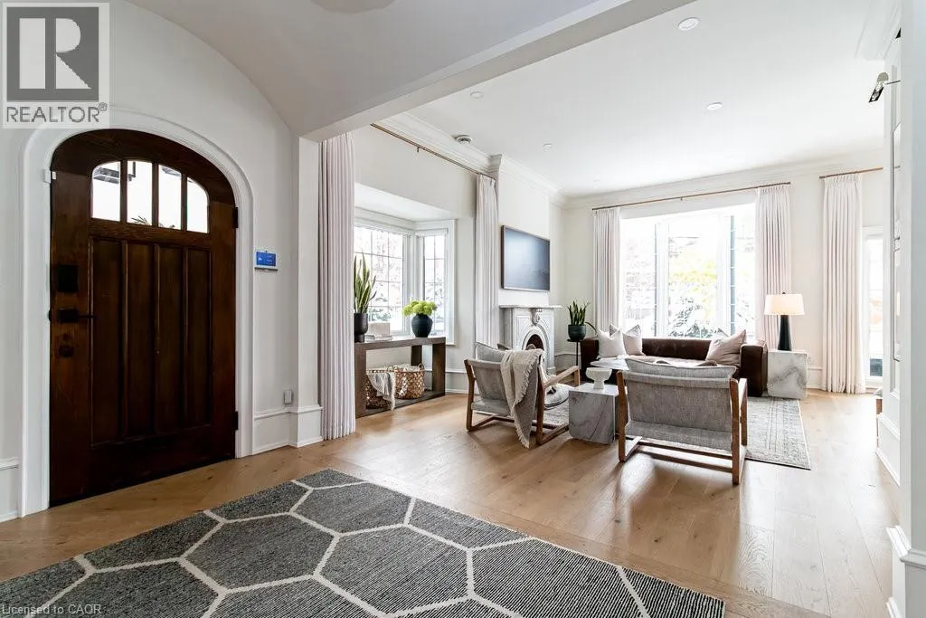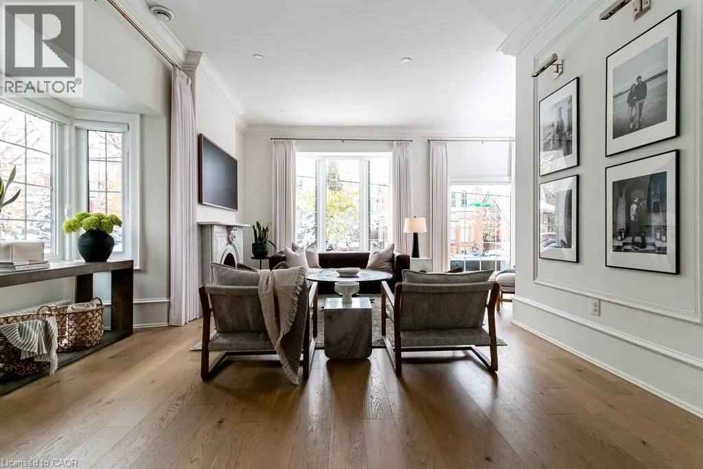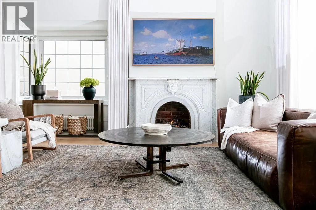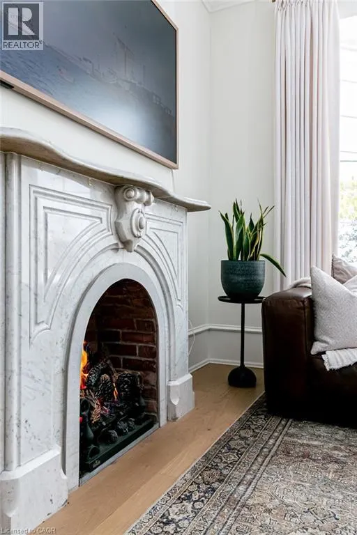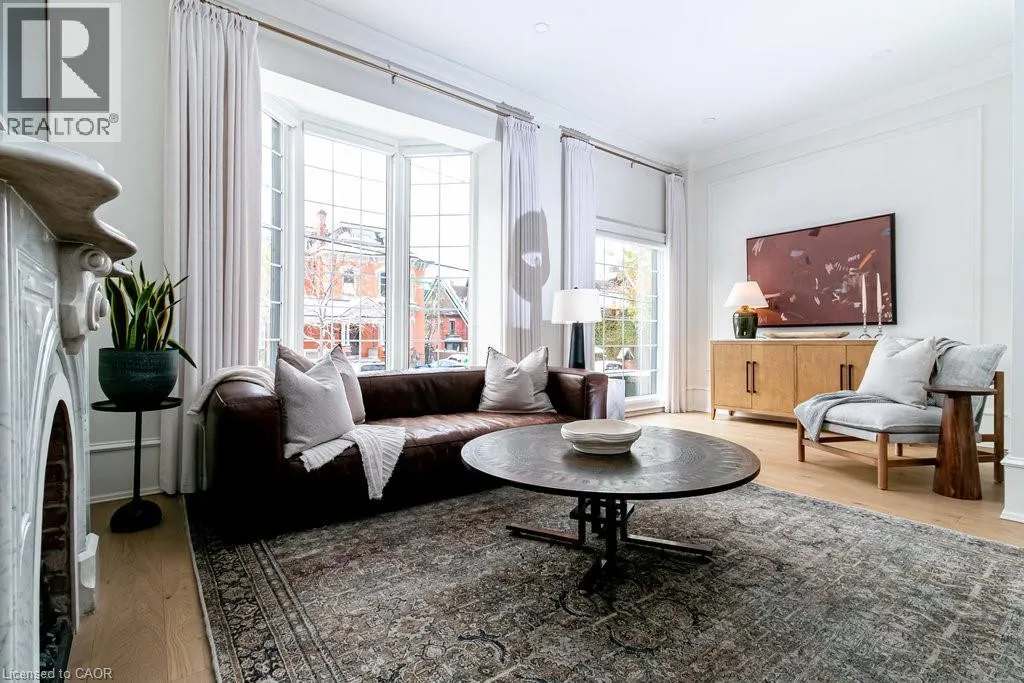James St S to Markland St to MacNab St S Discover timeless elegance and modern luxury in this exquisitely restored 1867 Victorian. Nestled in the heart of the vibrant Durand neighbourhood, this 4-bedroom, 3-bathroom masterpiece spans nearly 2200 square feet across two stories, where original grandeurâhighlighted by the arched solid wood front door, curved ceilings in the foyer, soaring 10-foot ceilings, and oversized bay windowsâmerges seamlessly with premium contemporary finishes. The main floor flows effortlessly through a formal living room with custom mouldings, an original marble mantle and complimentary gas log set, elegant dining area, a gourmet chefâs kitchen showcasing full-height white oak and crisp white cabinetry to the ceiling, gleaming quartz counters, and built-in full sized fridge and freezer. A designer 2-piece bath and a custom mudroom with built-in storage complete the main floor. Upstairs, the serene primary suite features floor-to-ceiling closets, a spa-like ensuite with a frameless glass walk-in rain shower, joined by three additional bedrooms, an additional 5-piece bathroom, second-floor laundry, and a sun-drenched sunroom with wrap-around windowsâperfect as a cozy den. Outside, a fully fenced backyard becomes a lush, private retreat surrounded by summer grapevines. Parking for three cars and equipped with an EV charger. Meticulously maintained and upgraded with new shingles (2025), windows (2022), boiler and radiators (2023), and AC (2021), this home blends heritage charm with turnkey sophistication. Luxury Certified. (id:27476)