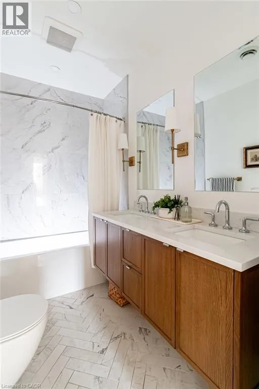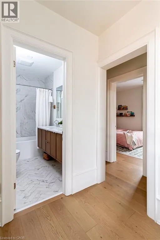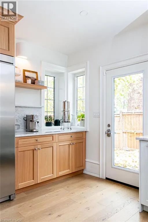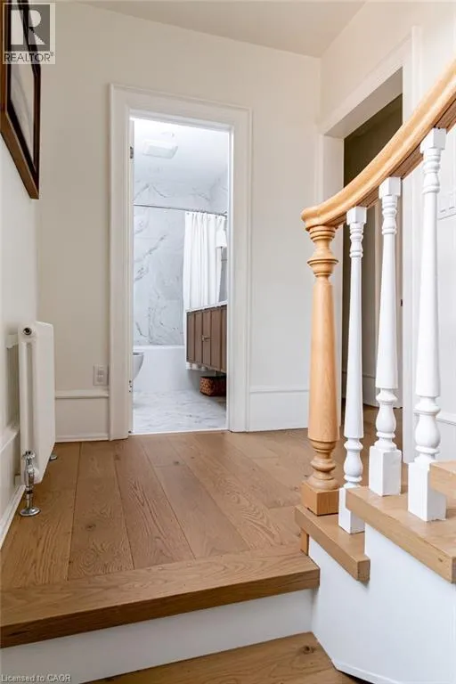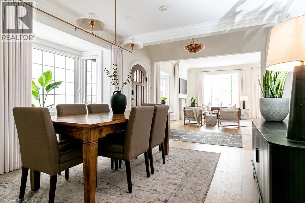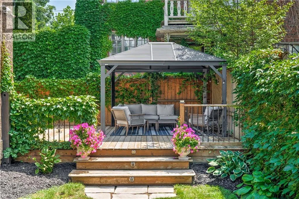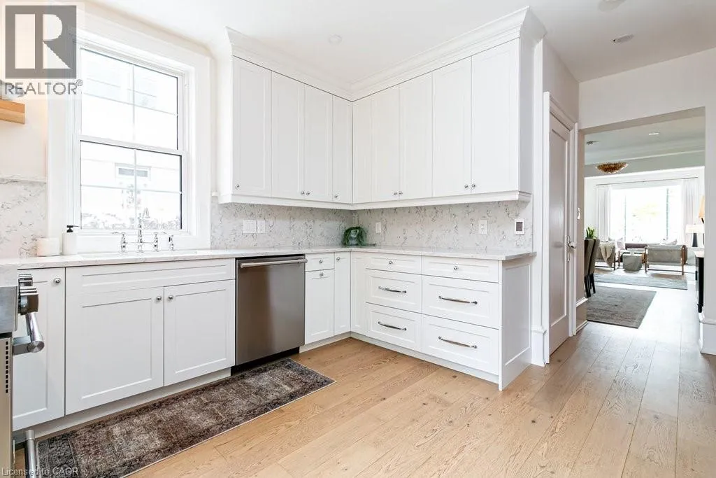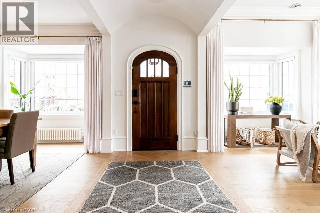 James St S to Markland St to MacNab St S Discover timeless elegance and modern luxury in this exquisitely restored 1867 Victorian. Nestled in the heart of the vibrant Durand neighbourhood, this 4-bedroom, 3-bathroom masterpiece spans nearly 2200 square feet across two stories, where original grandeurâhighlighted by the arched solid wood front door, curved ceilings in the foyer, soaring 10-foot ceilings, and oversized bay windowsâmerges seamlessly with premium contemporary finishes. The main floor flows effortlessly through a formal living room with custom mouldings, an original marble mantle and complimentary gas log set, elegant dining area, a gourmet chefâs kitchen showcasing full-height white oak and crisp white cabinetry to the ceiling, gleaming quartz counters, and built-in full sized fridge and freezer. A designer 2-piece bath and a custom mudroom with built-in storage complete the main floor. Upstairs, the serene primary suite features floor-to-ceiling closets, a spa-like ensuite with a frameless glass walk-in rain shower, joined by three additional bedrooms, an additional 5-piece bathroom, second-floor laundry, and a sun-drenched sunroom with wrap-around windowsâperfect as a cozy den. Outside, a fully fenced backyard becomes a lush, private retreat surrounded by summer grapevines. Parking for three cars and equipped with an EV charger. Meticulously maintained and upgraded with new shingles (2025), windows (2022), boiler and radiators (2023), and AC (2021), this home blends heritage charm with turnkey sophistication. Luxury Certified. (id:27476)