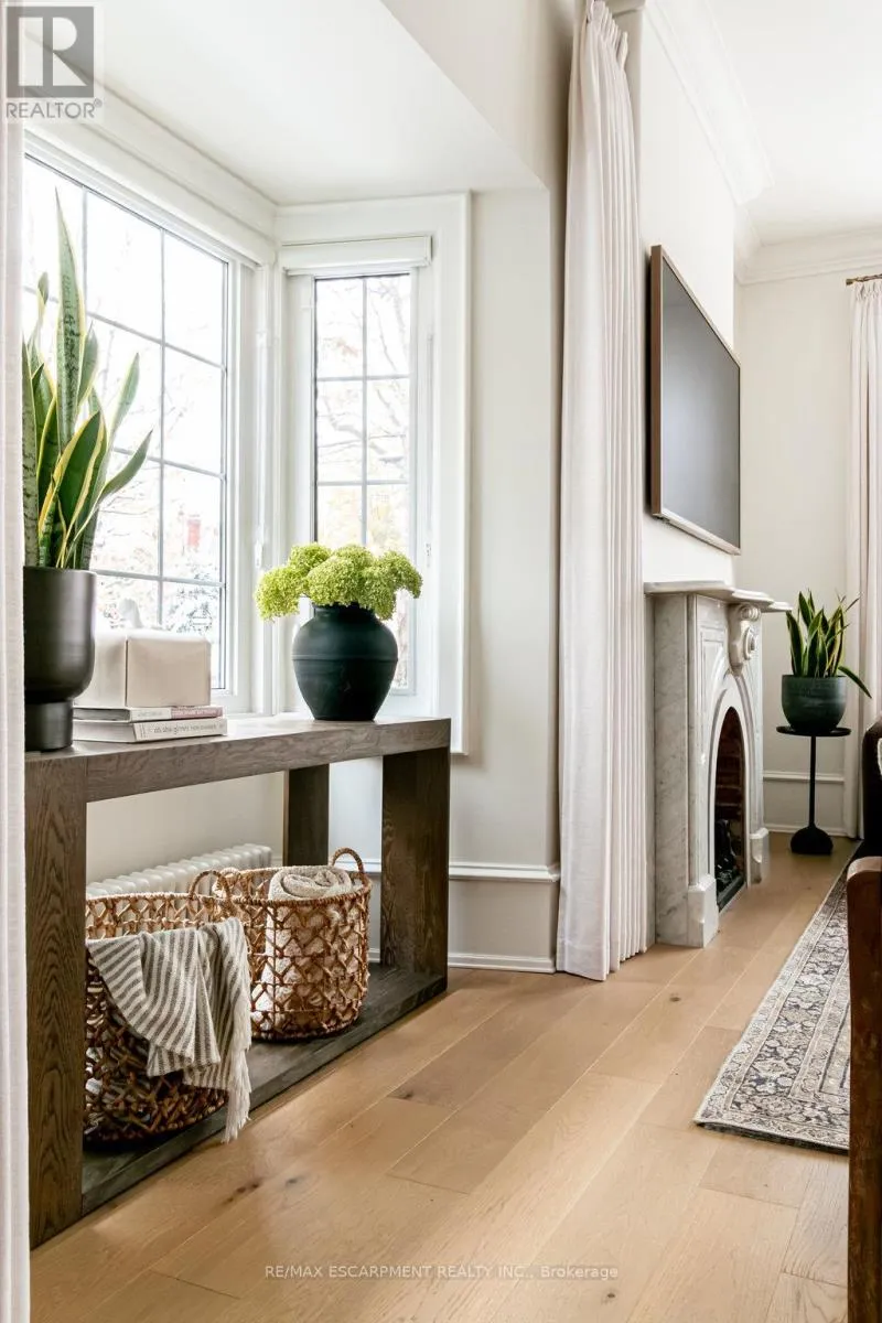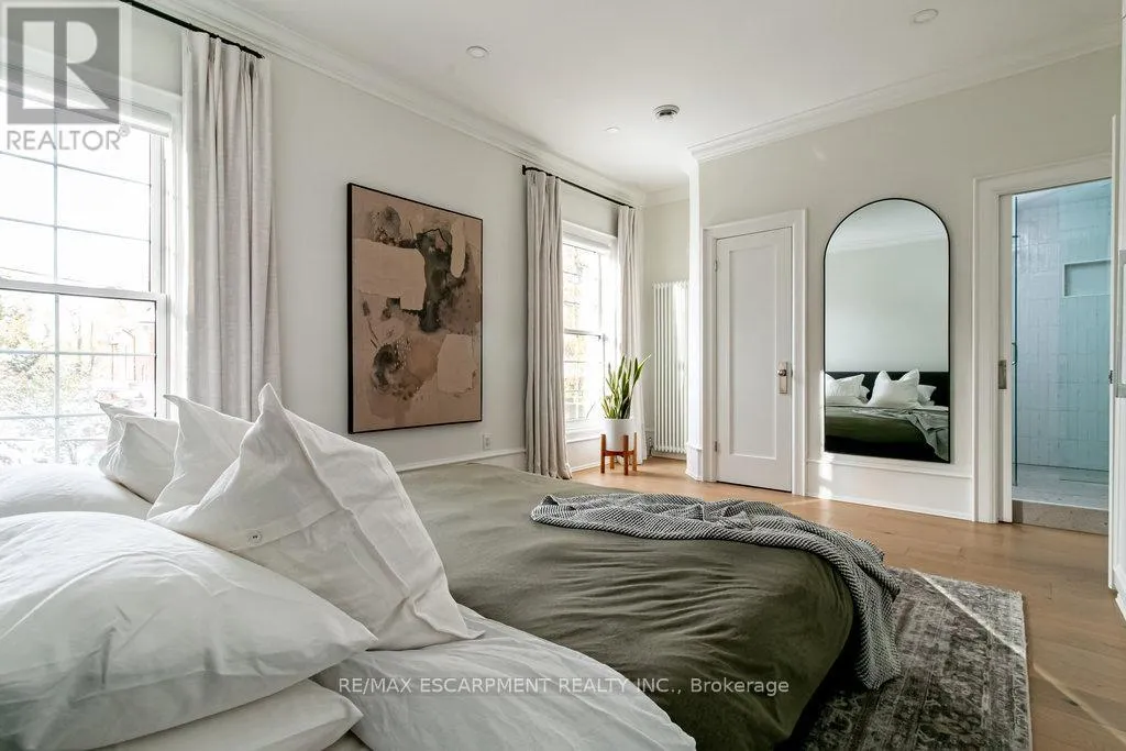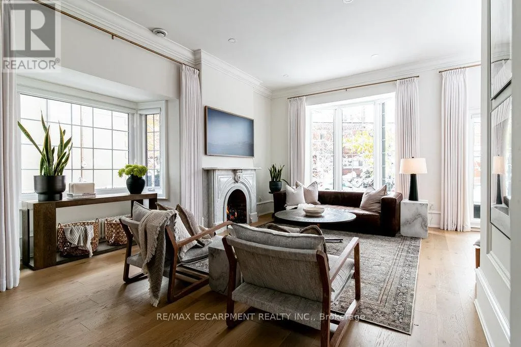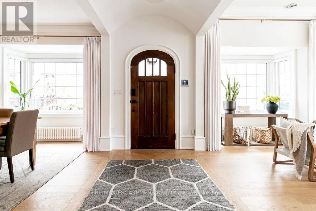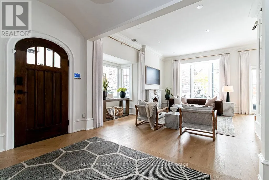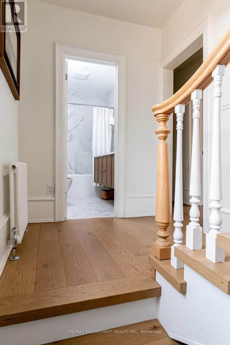 Cross Streets: MARKLAND ST. ** Directions: James St S to Markland St to MacNab St S. Discover timeless elegance and modern luxury in this exquisitely restored 1867 Victorian. Nestled in the heart of the vibrant Durand neighbourhood, this 4-bedroom, 3-bathroom masterpiece spans nearly 2200 square feet across two stories, where original grandeur-highlighted by the arched solid wood front door, curved ceilings in the foyer, soaring 10-foot ceilings, and oversized bay windows-merges seamlessly with premium contemporary finishes.The main floor flows effortlessly through a formal living room with custom mouldings, an original marble mantle and complimentary gas log set, elegant dining area, a gourmet chef's kitchen showcasing full-height white oak and crisp white cabinetry to the ceiling, gleaming quartz counters, and built-in full sized fridge and freezer. A designer 2-piece bath and a custom mudroom with built-in storage complete the main floor. Upstairs, the serene primary suite features floor-to-ceiling closets, a spa-like ensuite with a frameless glass walk-in rain shower, joined by three additional bedrooms, an additional 5-piece bathroom, second-floor laundry, and a sun-drenched sunroom with wrap-around windows-perfect as a cozy den.Outside, a fully fenced backyard becomes a lush, private retreat surrounded by summer grapevines. Parking for three cars and equipped with an EV charger. Meticulously maintained and upgraded with new shingles (2025), windows (2022), boiler and radiators (2023), and AC (2021), this home blends heritage charm with turnkey sophistication. Luxury Certified. (id:27476)