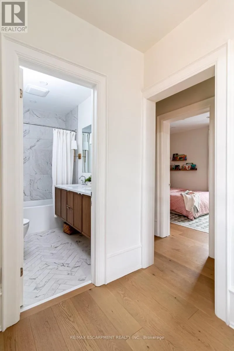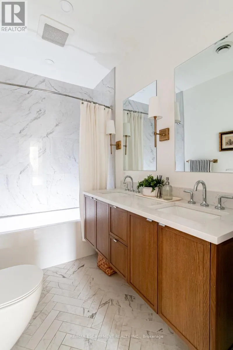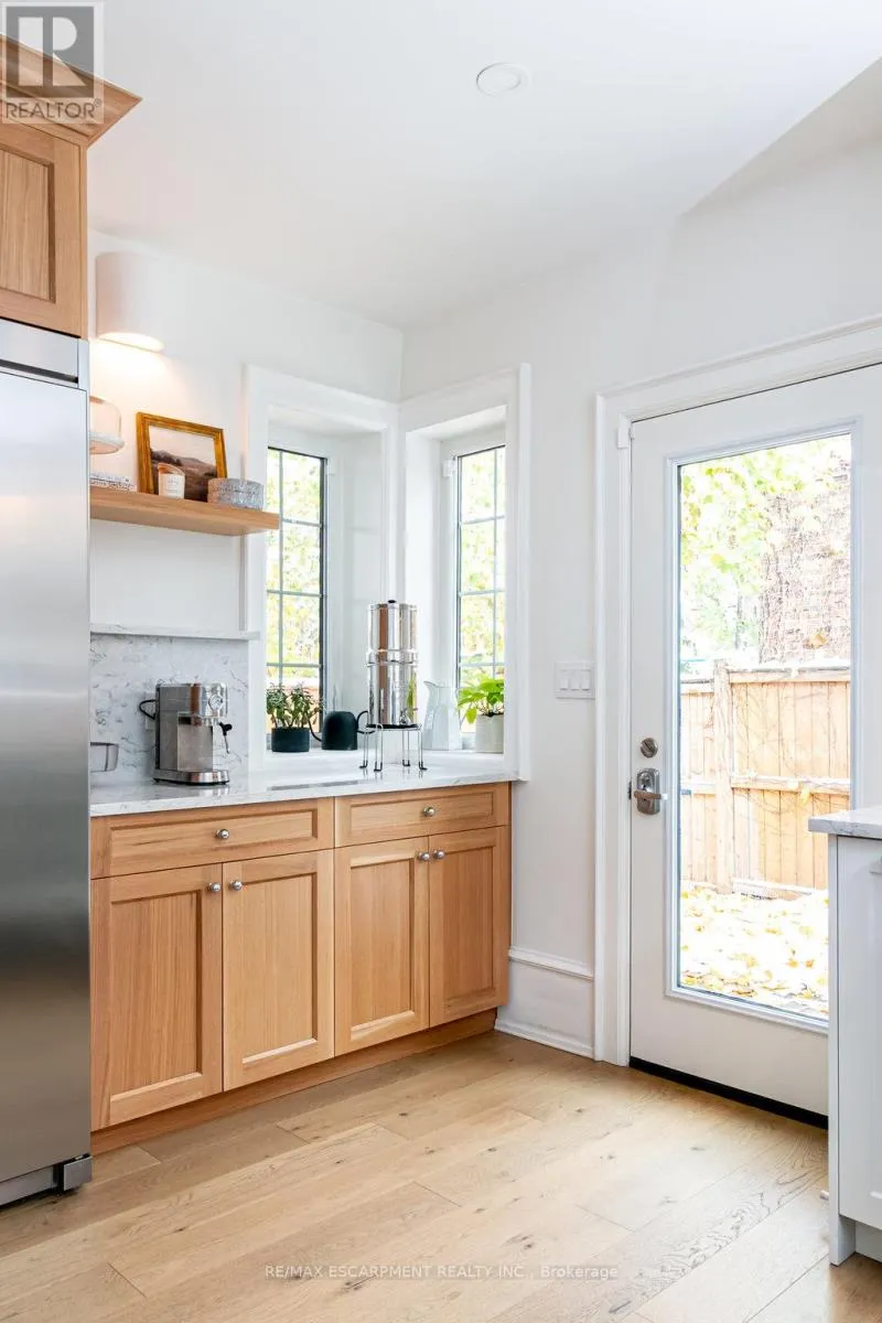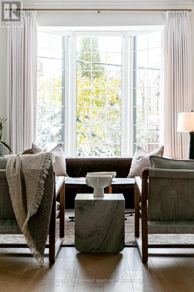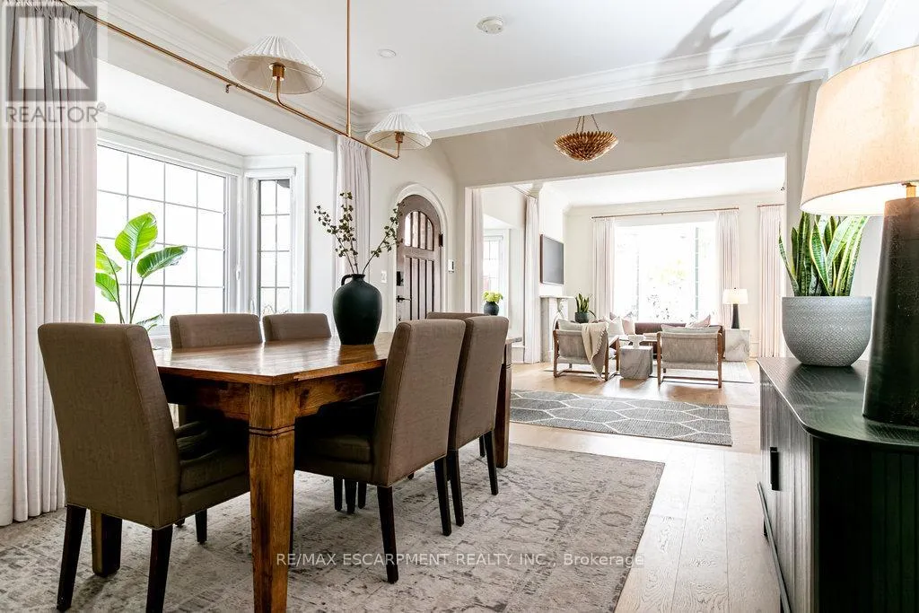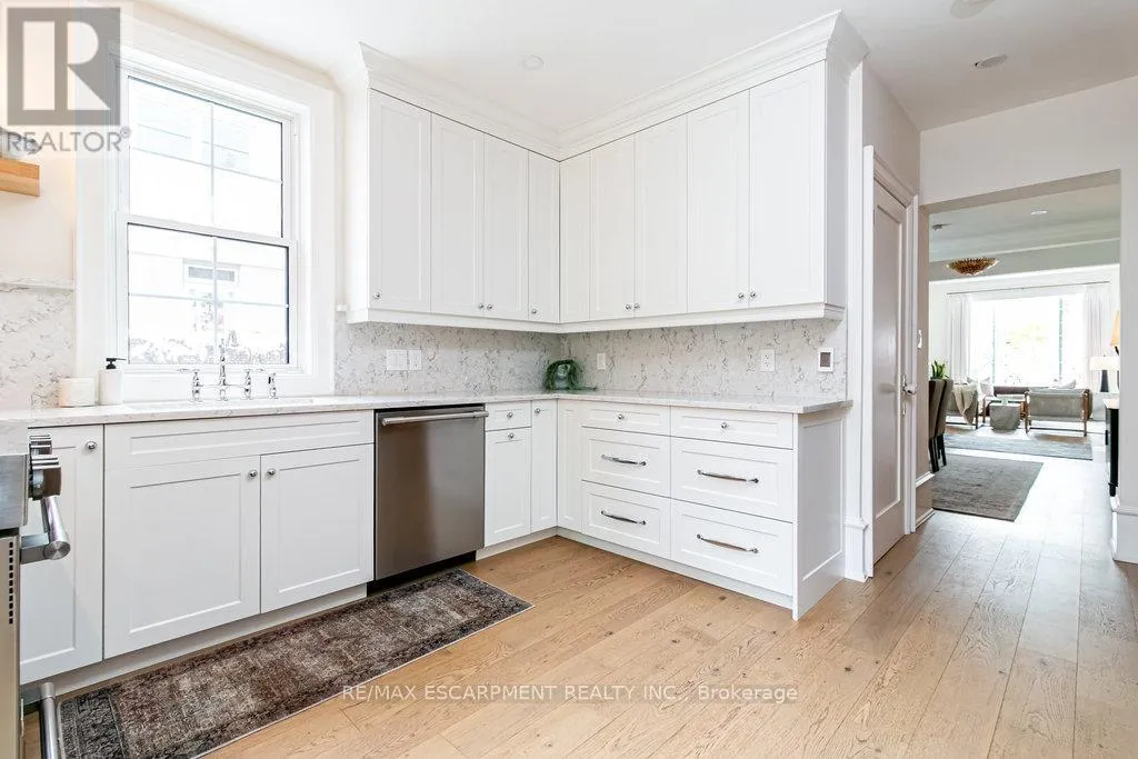 Cross Streets: MARKLAND ST. ** Directions: James St S to Markland St to MacNab St S. Discover timeless elegance and modern luxury in this exquisitely restored 1867 Victorian. Nestled in the heart of the vibrant Durand neighbourhood, this 4-bedroom, 3-bathroom masterpiece spans nearly 2200 square feet across two stories, where original grandeur-highlighted by the arched solid wood front door, curved ceilings in the foyer, soaring 10-foot ceilings, and oversized bay windows-merges seamlessly with premium contemporary finishes.The main floor flows effortlessly through a formal living room with custom mouldings, an original marble mantle and complimentary gas log set, elegant dining area, a gourmet chef's kitchen showcasing full-height white oak and crisp white cabinetry to the ceiling, gleaming quartz counters, and built-in full sized fridge and freezer. A designer 2-piece bath and a custom mudroom with built-in storage complete the main floor. Upstairs, the serene primary suite features floor-to-ceiling closets, a spa-like ensuite with a frameless glass walk-in rain shower, joined by three additional bedrooms, an additional 5-piece bathroom, second-floor laundry, and a sun-drenched sunroom with wrap-around windows-perfect as a cozy den.Outside, a fully fenced backyard becomes a lush, private retreat surrounded by summer grapevines. Parking for three cars and equipped with an EV charger. Meticulously maintained and upgraded with new shingles (2025), windows (2022), boiler and radiators (2023), and AC (2021), this home blends heritage charm with turnkey sophistication. Luxury Certified. (id:27476)