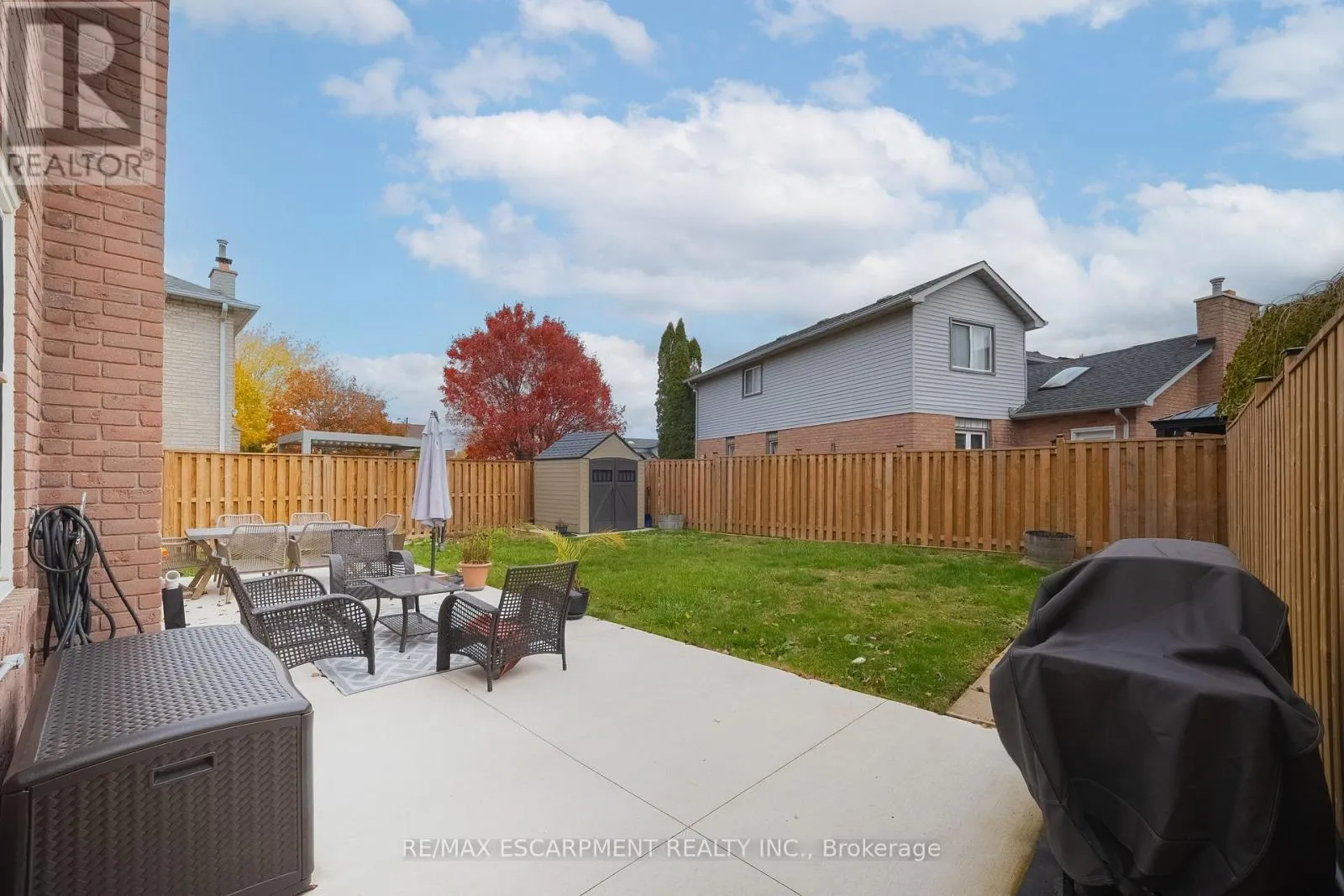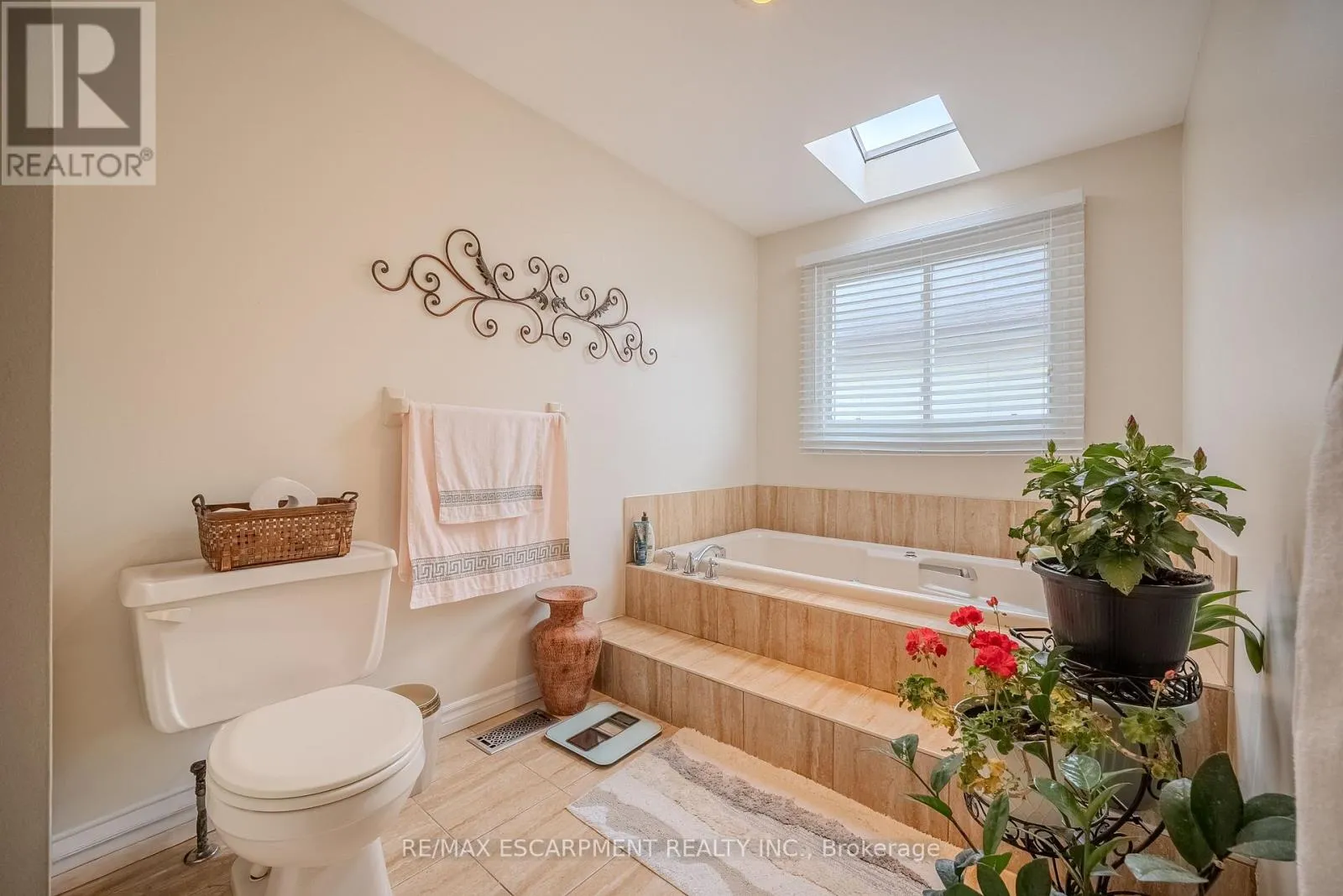 Stone Church Rd E Beautifully upgraded 2-storey home in a sought-after, family-oriented Central Mountain neighbourhood, directly across from Elmar Park. Featuring 3 spacious bedrooms and 3.5 baths, this home offers hardwood floors, an elegant staircase with wrought-iron spindles, and California shutters. The kitchen showcases granite counters, stainless steel appliances, pot lights, and a full separate pantry. A bright family room with vaulted ceilings, skylights, and a cozy fireplace anchors the main floor. The spacious primary bedroom features a sun-filled ensuite and walk-in closet, offering the perfect retreat. The fully finished basement is perfect for relaxing or entertaining family and friends. Spacious, fully fenced backyard with a new concrete patio - ideal for gatherings and outdoor living. Aggregate driveway and front porch, 1.5-car garage, and new fencing all around. Steps to top schools, Limeridge Mall, parks, and every convenience. Furnace & A/C (2024), new concrete walkway and patio (2024), new full-perimeter fence (2024) and roof (2020). (id:27476)