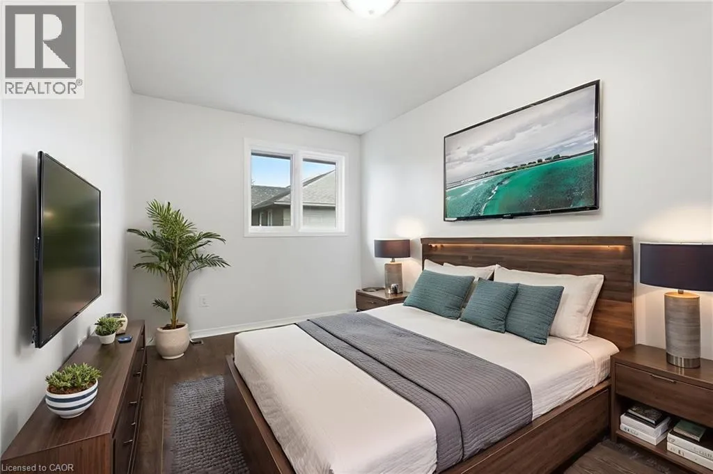 Rymal Rd to Upper Wentworth St to Vineberg Dr Welcome to this beautifully renovated 2-storey end unit townhome featuring 3 bedrooms and 2.5 bathrooms. The main floor is bright and inviting, with large windows and a modern updated kitchen with brand new cabinets and countertops, and some newer appliances. Upstairs, youâll find 2 good sized bedrooms and the spacious primary suite offers his and hers closets along with a private ensuite. The finished basement provides additional living space for a family room, office, or gym. Condo fees include roof, windows, cable, lawn care, main road snow removal, and exterior maintenance (driveway snow removal not included). Conveniently located close to all amenities and highway accessâjust move in and enjoy. Updates: include but not limited to, bathrooms (vanity, countertops, mirror and lights 2025), kitchen (2025), A/C (2025), pot lights (2025). Full renovation list available at the property. (id:27476)
