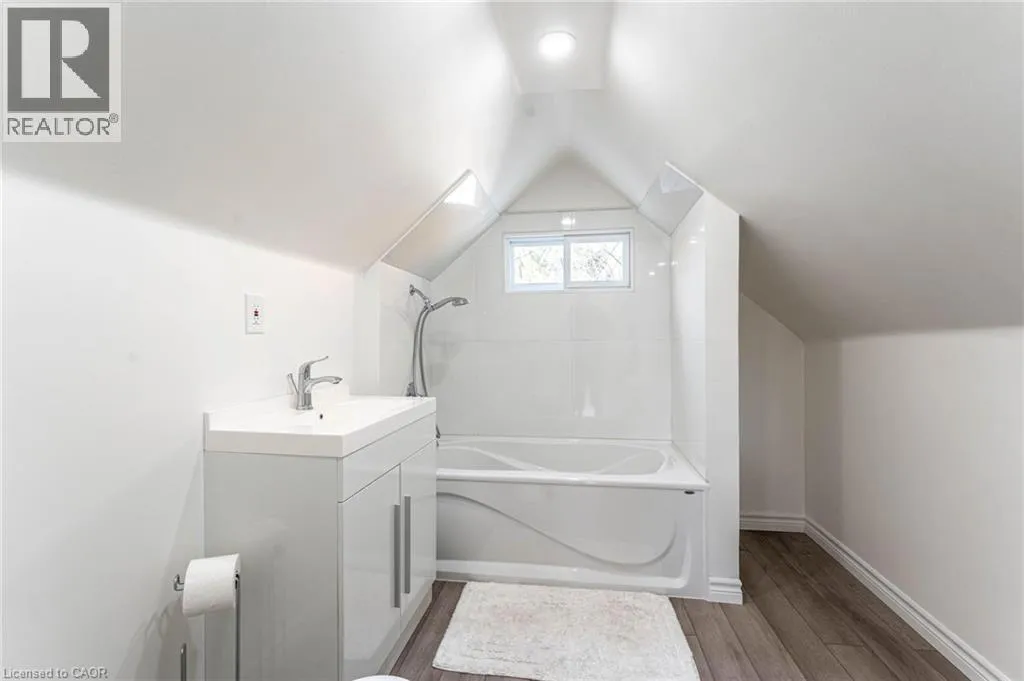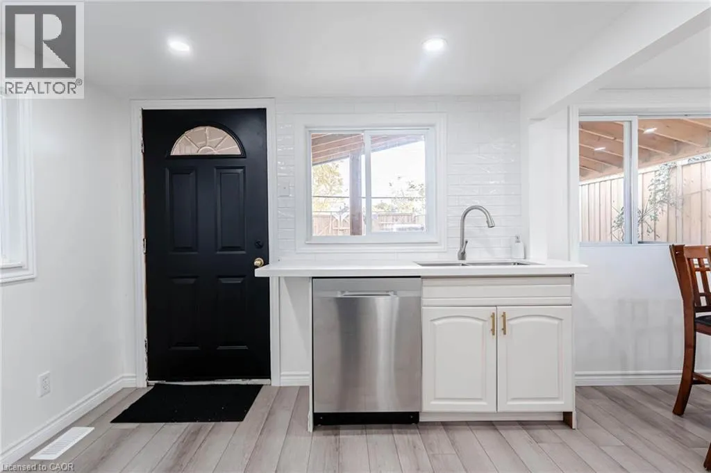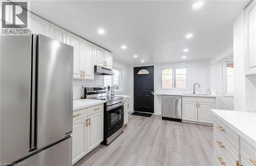 Queenston Rd & Paling Ave. Welcome to 284 Paling ave, the perfect home for a young family or couple looking for a detached home in a great location and move-in ready! This beautiful home is located ideally in Hamilton East, close to the hwy, bus stops, the future LRT and Go Station, perfect for commuting for school or work. With many parks, schools, trails, and even the lake nearby, this neighbourhood offers all the natural beauty Hamilton has to offer. Situated on a 117 foot long lot, you get to enjoy a large deck area and backyard that is great to enjoy with family and friends. In the back of the property there are two private parking spots and plenty of street parking for your guests. When you enter the home, you will fall in love with all the modern finishes, a breathtaking kitchen with sleek cabinets, quartz countertops, new stainless steel appliances, beautiful new flooring. Also on the main floor, you get to enjoy a luxurious full bathroom and a bedroom, everything you need on the same floor. On the second level, there is a massive second bedroom and another beautiful full bathroom to enjoy. With a full basement awaiting your final touch, this home has so much to offer for such a great price. With a new roof, fence, furnace, AC, hot water heater, water softener, this home is truly move-in ready. (id:27476)
