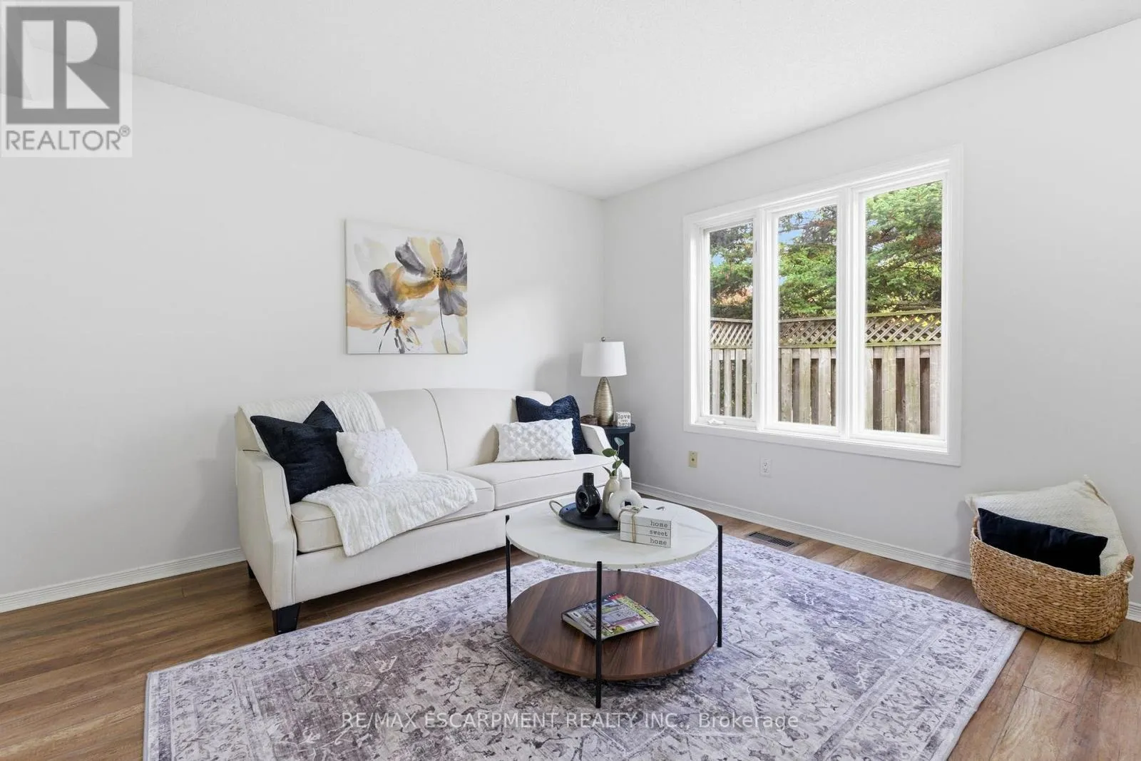 Cross Streets: Rymal Rd and Upper Wentworth St. ** Directions: Rymal Rd to Upper Wentworth St to Vineberg Dr. Welcome to this beautifully renovated 2-storey end unit townhome featuring 3 bedrooms and 2.5 bathrooms. The main floor is bright and inviting, with large windows and a modern updated kitchen with brand new cabinets and countertops, and some newer appliances. Upstairs, you'll find 2 good sized bedrooms and the spacious primary suite offers his and hers closets along with a private ensuite. The finished basement provides additional living space for a family room, office, or gym. Condo fees include roof, windows, cable, lawn care, main road snow removal, and exterior maintenance (driveway snow removal not included). Conveniently located close to all amenities and highway access-just move in and enjoy. Updates: include but not limited to, bathrooms (vanity, countertops, mirror and lights 2025), kitchen (2025), A/C (2025), pot lights (2025). (id:27476)