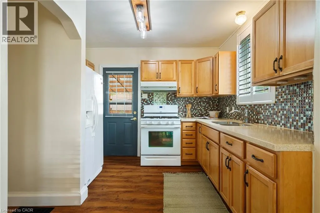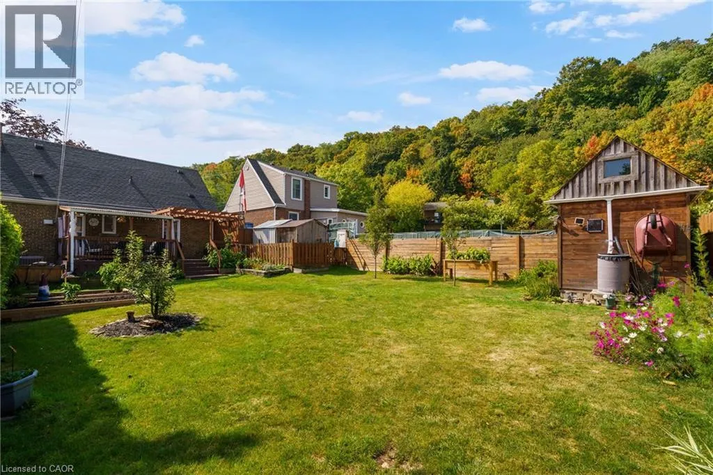 Turn East from Kimberly Drive and house is immediately on the left. Welcome to 3 Montrose Avenue â a charming 1.5-storey home nestled beneath the scenic escarpment in the sought-after Rosedale neighbourhood. The main floor offers a bright and spacious living room, a formal dining room that flows into the kitchen, a convenient main-floor bedroom, and a newly updated 4-piece bathroom. Upstairs, youâll find two generous bedrooms with warm natural wood floors, along with a handy 2-piece bath at the top of the stairs. The lower level is wide open with excellent ceiling height, providing plenty of potential to finish into additional living space. A 3-piece bathroom is already in place, and the separate laundry room is both functional and practical with great storage options. A well-designed workshop adds to the versatility of the home. Recent updates include: roof with gutter guard (2023), furnace (2017), and an owned hot water heater. Set on a beautifully landscaped 125-foot lot, the property offers picturesque views of the lush escarpment. Enjoy being just steps away from hiking trails and King's Forest Golf Club, all while living in a quiet, family-friendly community. (id:27476)