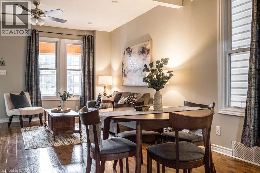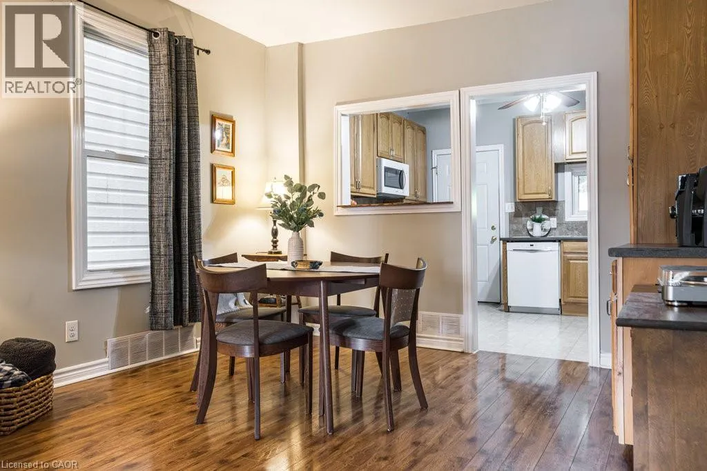 Balmoral Avenue North between Barton and Cannon Move-In Ready 3+1 Bedroom Home. Beautifully maintained and offering 1,500 sq. ft. of living space. The main floor features an open-concept living and dining area, a well-appointed kitchen with ample cabinetry and counter space, stainless steel appliances, and a walkout to a covered deck overlooking the fully fenced backyard. Upstairs, the second floor includes three comfortable bedrooms, including an east-facing primary, and a full bath. The bright and versatile third floor provides additional living space, ideal for a home office or family room. Additional highlights include generous storage, an enclosed front porch, off-street parking, and laneway access. Recent updates include Central Air (2024) and Eaves, Soffit, and Fascia (2022). Just steps to Ottawa Street North and The Centre on Barton, this home offers a walkable lifestyle. (id:27476)