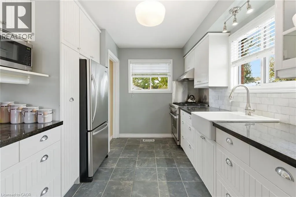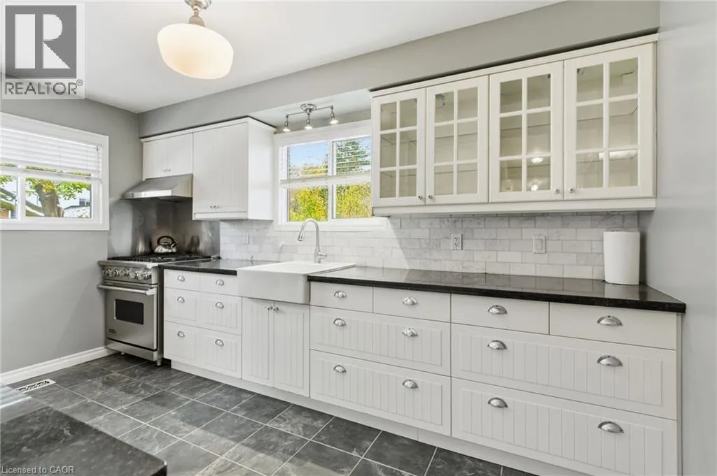 Mountain Brow/Mohawk UPPER UNIT ONLY--- This inviting bungalow is perfectly situated on a peaceful court and sits on a large, pie-shaped lot. Featuring a spacious floor plan, the home boasts original hardwood flooring throughout and a bright kitchen with white cabinets, quartz countertops, a subway tile backsplash, a farmhouse sink, and a gas range stove â perfect for cooking and entertaining. The home offers three generously sized bedrooms and shared laundry in the basement. The property includes a mutually shared driveway and backyard, with lawn maintenance and snow removal being the tenantâs responsibility. Currently, tenants cover 100% of utilities, which will adjust to 70% once the basement tenant moves in. A great opportunity for comfortable living in a serene location, ready for immediate move-in! (id:27476)