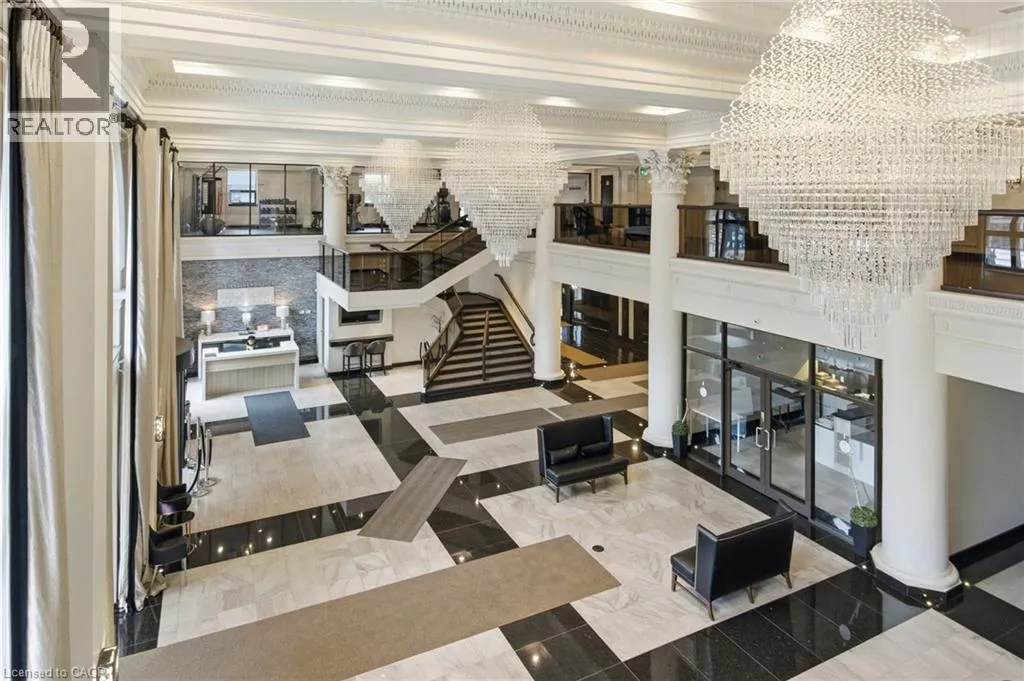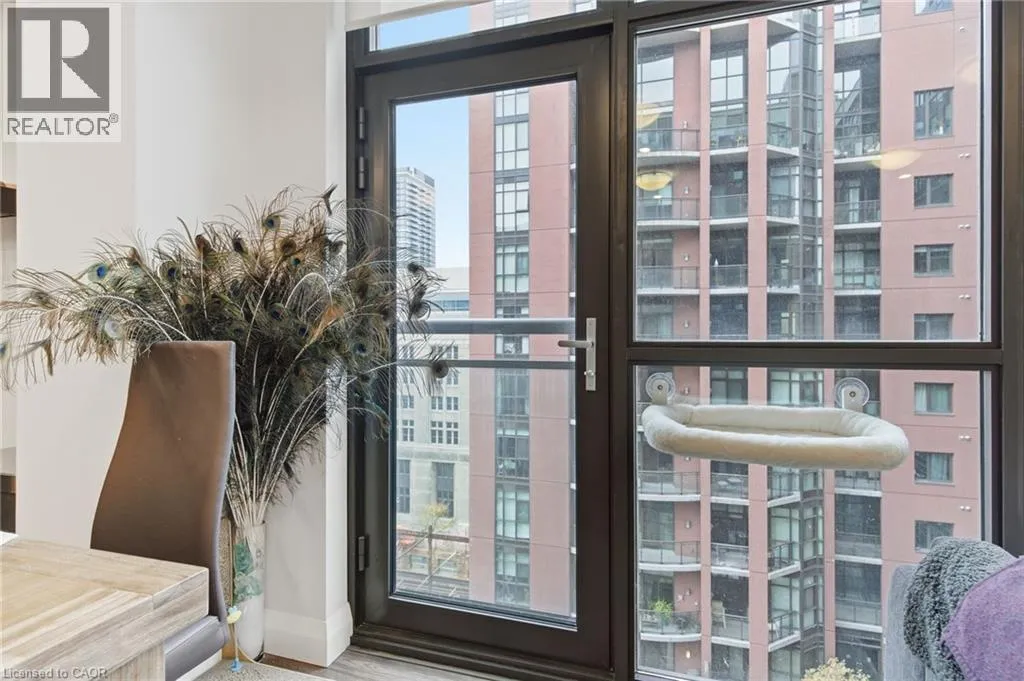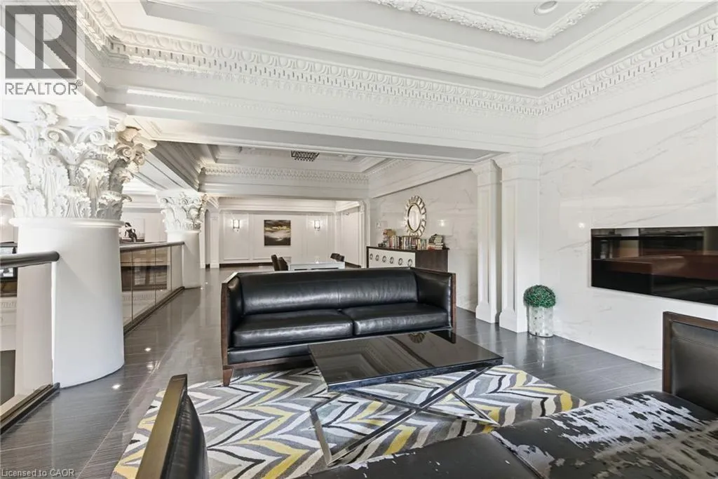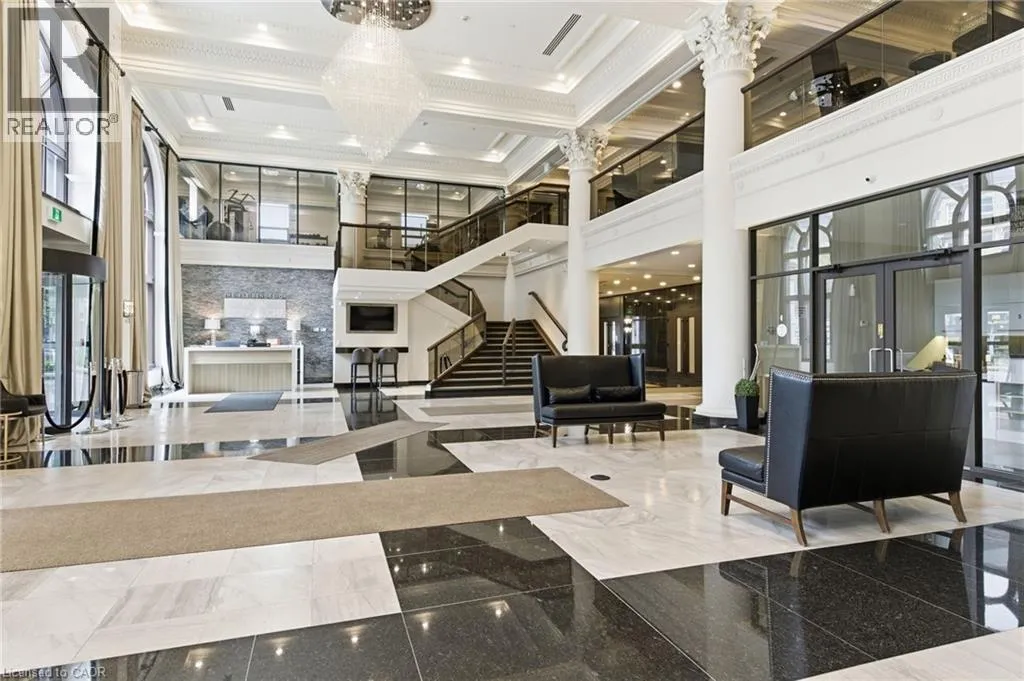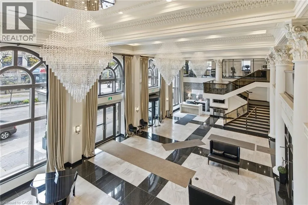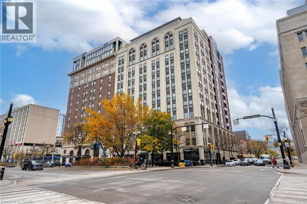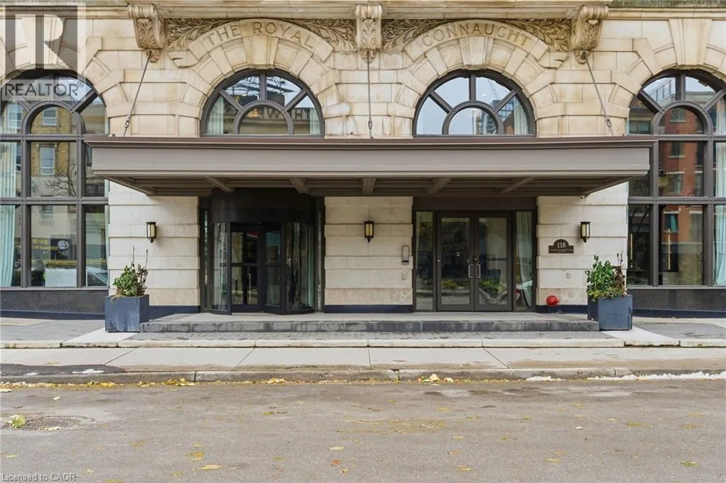 118 King St E, Enter on King St between Catherine St and John St Bright, refined, and effortlessly contemporary - Suite 916 at the iconic Royal Connaught, a beautifully preserved piece of Hamilton's history in the heart of downtown, offers an exceptional standard of urban living. This nearly 900 sq. ft 1-bedroom + den residence features 9' ceilings and expansive floor to ceiling windows that span the full width of the suite, immersing the home in natural light and framing sweeping southeast views of the courtyard, city skyline, and escarpment. Showcasing one of the building's most desirable layouts, the suite includes extra height kitchen cabinetry with lower pull-outs, granite countertops, pot lights, solar-charged motorized blinds, and a walk-in closet with custom organizers. The bathroom has also been beautifully upgraded with granite counters and premium porcelain tile. Thoughtful enhancements throughout elevate both comfort and style. The spacious open den provides exceptional versatility - ideal as a home office, guest room, or potential second bedroom. Residents enjoy access to outstanding amenities, including a rooftop terrace perfect for sunsets and summer evenings, concierge service, a fully equipped fitness centre, media room and elegant party room. This unit also comes with an owned locker and an underground parking spot. Step outside and you're moments from Hamilton's finest cafes, shops, art galleries, and restaurants, along with the vibrant energy of James Street. Hospital services, transit and GO station connections are all within easy reach. If you're seeking a seamless blend of luxury, history, and urban convenience, this spectacular suite at the Royal Connaught might just be your perfect match. (id:27476)