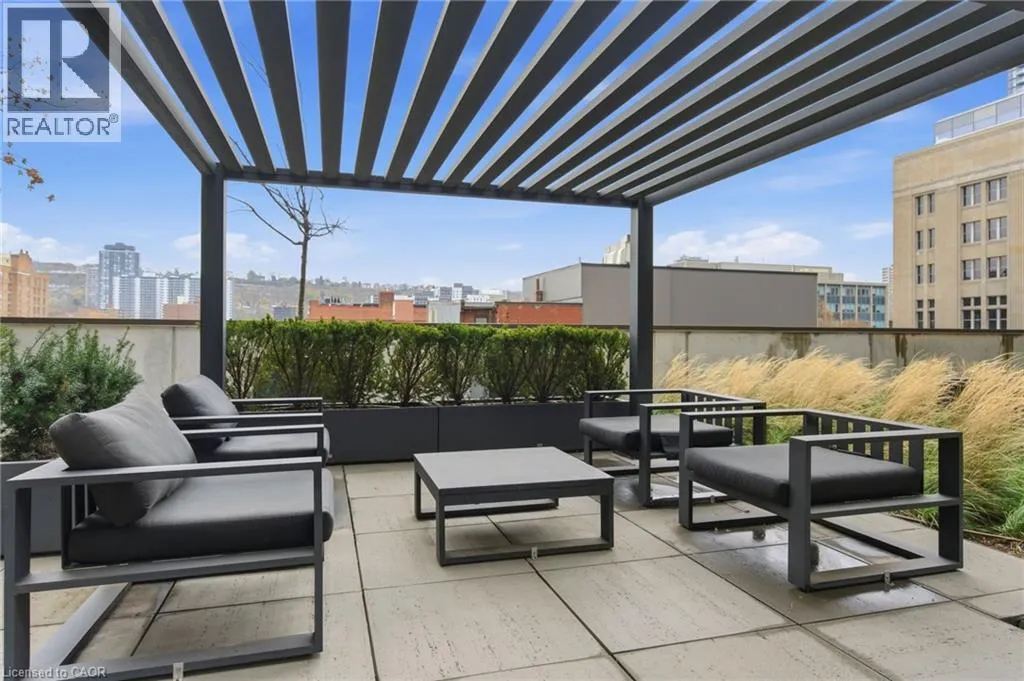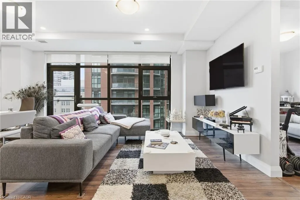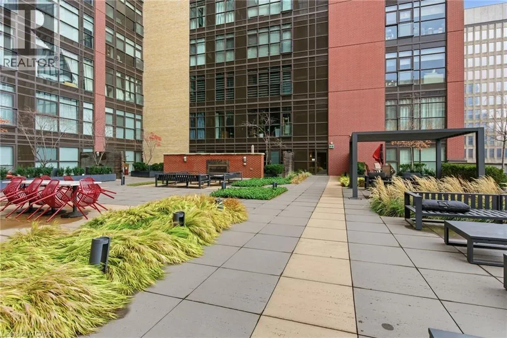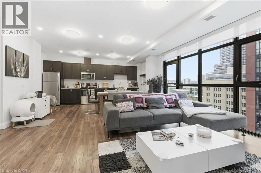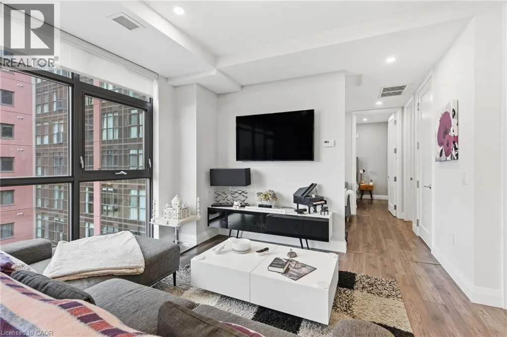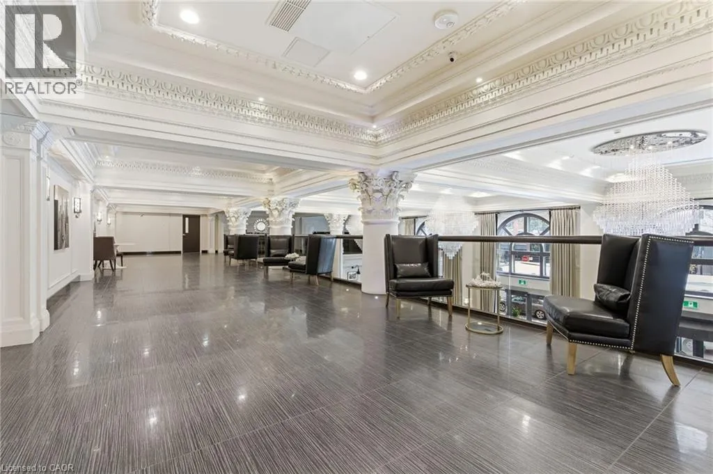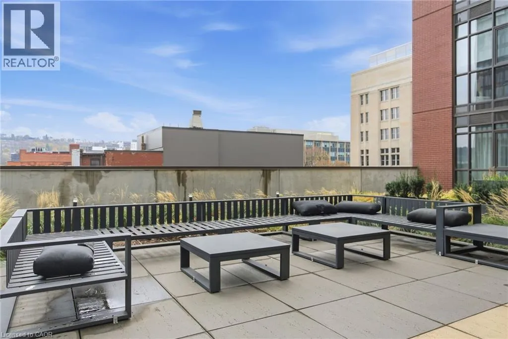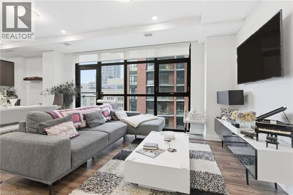 118 King St E, Enter on King St between Catherine St and John St Bright, refined, and effortlessly contemporary - Suite 916 at the iconic Royal Connaught, a beautifully preserved piece of Hamilton's history in the heart of downtown, offers an exceptional standard of urban living. This nearly 900 sq. ft 1-bedroom + den residence features 9' ceilings and expansive floor to ceiling windows that span the full width of the suite, immersing the home in natural light and framing sweeping southeast views of the courtyard, city skyline, and escarpment. Showcasing one of the building's most desirable layouts, the suite includes extra height kitchen cabinetry with lower pull-outs, granite countertops, pot lights, solar-charged motorized blinds, and a walk-in closet with custom organizers. The bathroom has also been beautifully upgraded with granite counters and premium porcelain tile. Thoughtful enhancements throughout elevate both comfort and style. The spacious open den provides exceptional versatility - ideal as a home office, guest room, or potential second bedroom. Residents enjoy access to outstanding amenities, including a rooftop terrace perfect for sunsets and summer evenings, concierge service, a fully equipped fitness centre, media room and elegant party room. This unit also comes with an owned locker and an underground parking spot. Step outside and you're moments from Hamilton's finest cafes, shops, art galleries, and restaurants, along with the vibrant energy of James Street. Hospital services, transit and GO station connections are all within easy reach. If you're seeking a seamless blend of luxury, history, and urban convenience, this spectacular suite at the Royal Connaught might just be your perfect match. (id:27476)