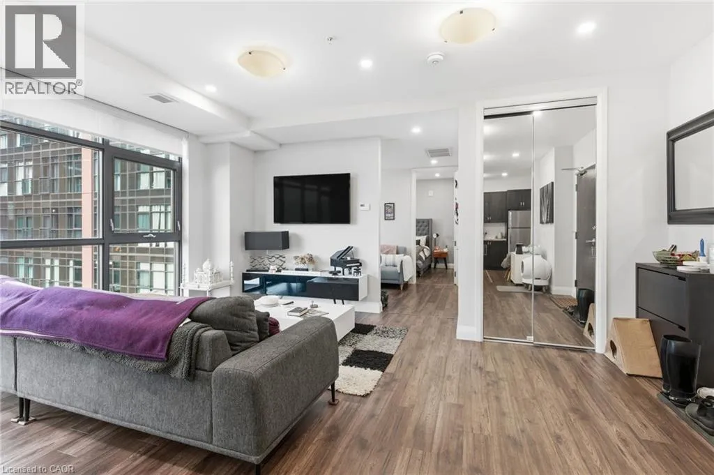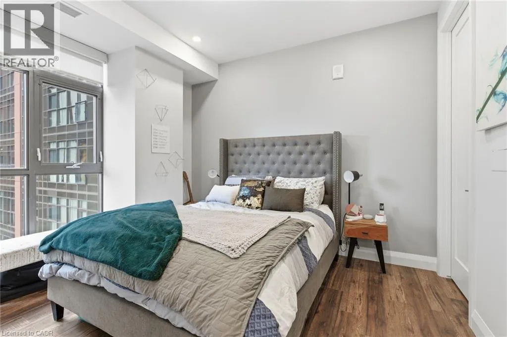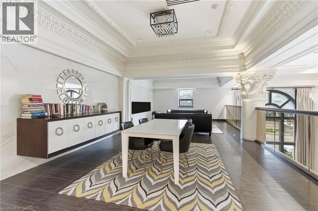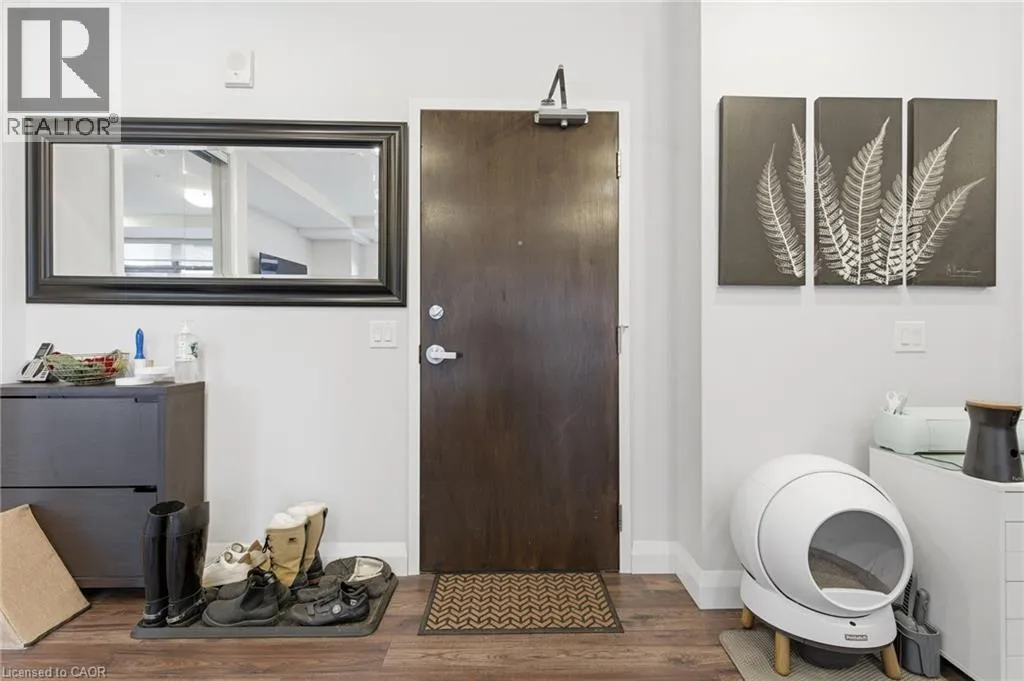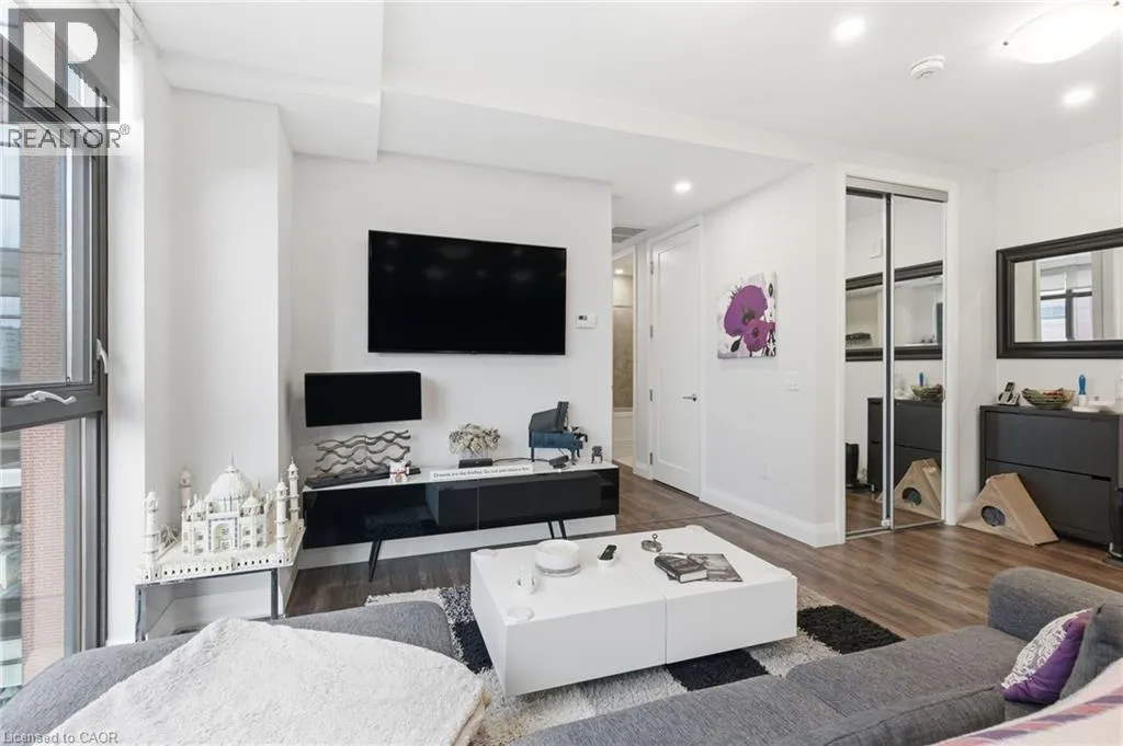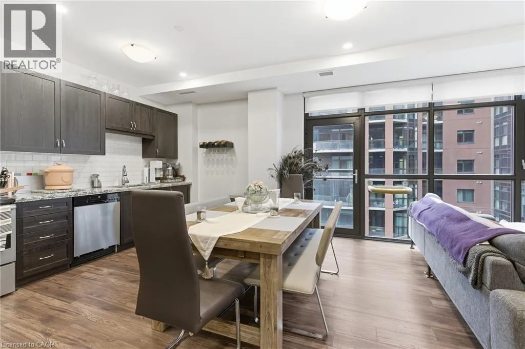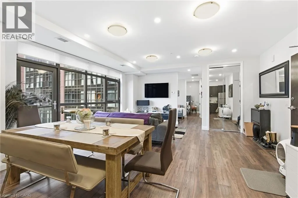 118 King St E, Enter on King St between Catherine St and John St Bright, refined, and effortlessly contemporary - Suite 916 at the iconic Royal Connaught, a beautifully preserved piece of Hamilton's history in the heart of downtown, offers an exceptional standard of urban living. This nearly 900 sq. ft 1-bedroom + den residence features 9' ceilings and expansive floor to ceiling windows that span the full width of the suite, immersing the home in natural light and framing sweeping southeast views of the courtyard, city skyline, and escarpment. Showcasing one of the building's most desirable layouts, the suite includes extra height kitchen cabinetry with lower pull-outs, granite countertops, pot lights, solar-charged motorized blinds, and a walk-in closet with custom organizers. The bathroom has also been beautifully upgraded with granite counters and premium porcelain tile. Thoughtful enhancements throughout elevate both comfort and style. The spacious open den provides exceptional versatility - ideal as a home office, guest room, or potential second bedroom. Residents enjoy access to outstanding amenities, including a rooftop terrace perfect for sunsets and summer evenings, concierge service, a fully equipped fitness centre, media room and elegant party room. This unit also comes with an owned locker and an underground parking spot. Step outside and you're moments from Hamilton's finest cafes, shops, art galleries, and restaurants, along with the vibrant energy of James Street. Hospital services, transit and GO station connections are all within easy reach. If you're seeking a seamless blend of luxury, history, and urban convenience, this spectacular suite at the Royal Connaught might just be your perfect match. (id:27476)