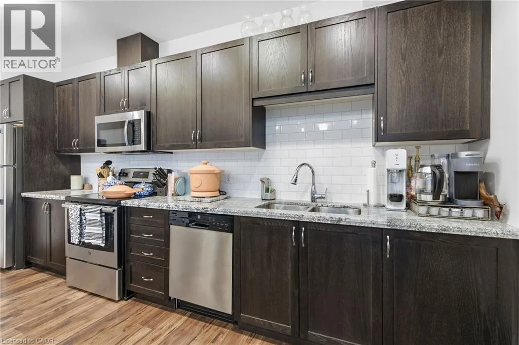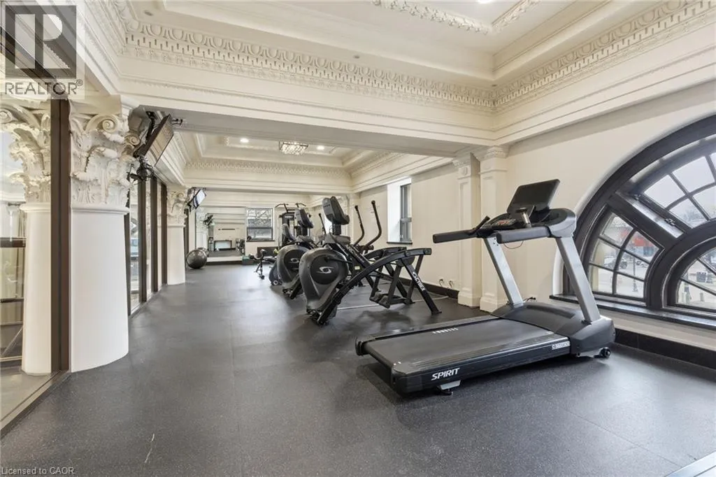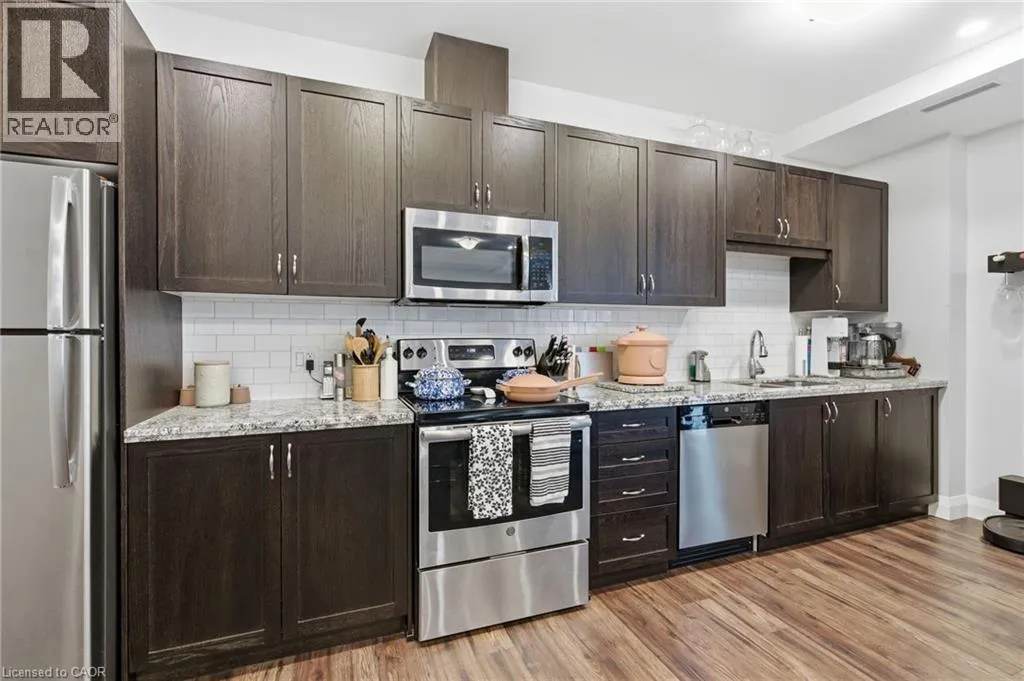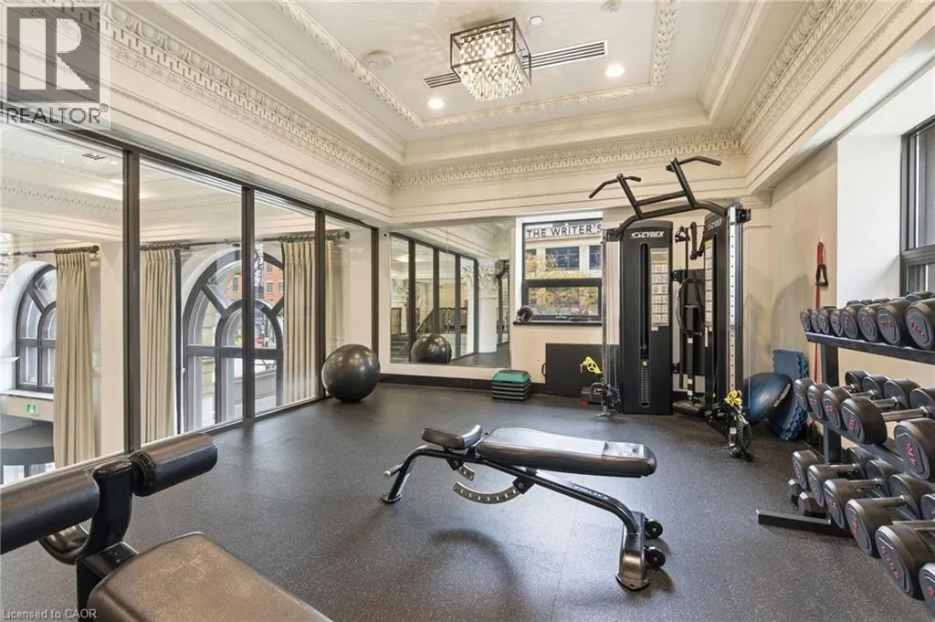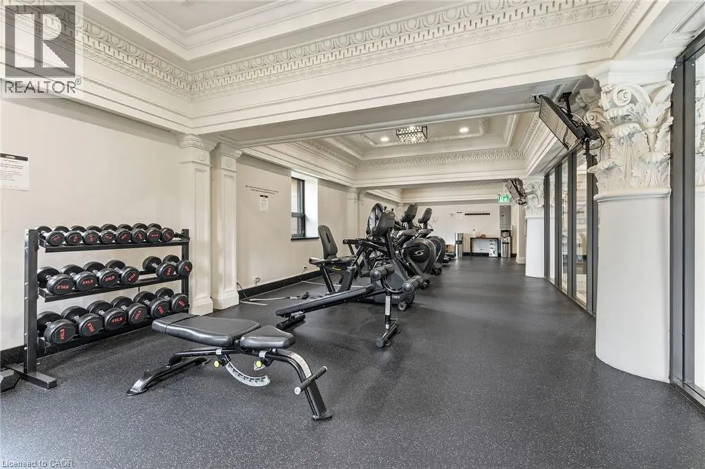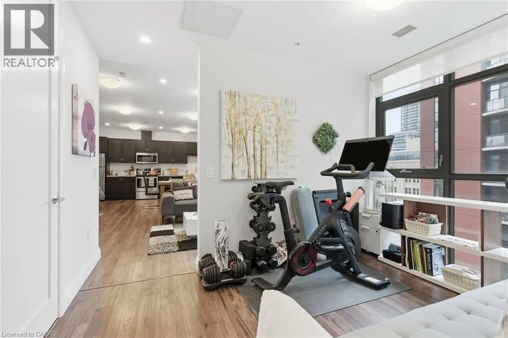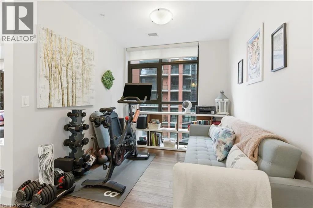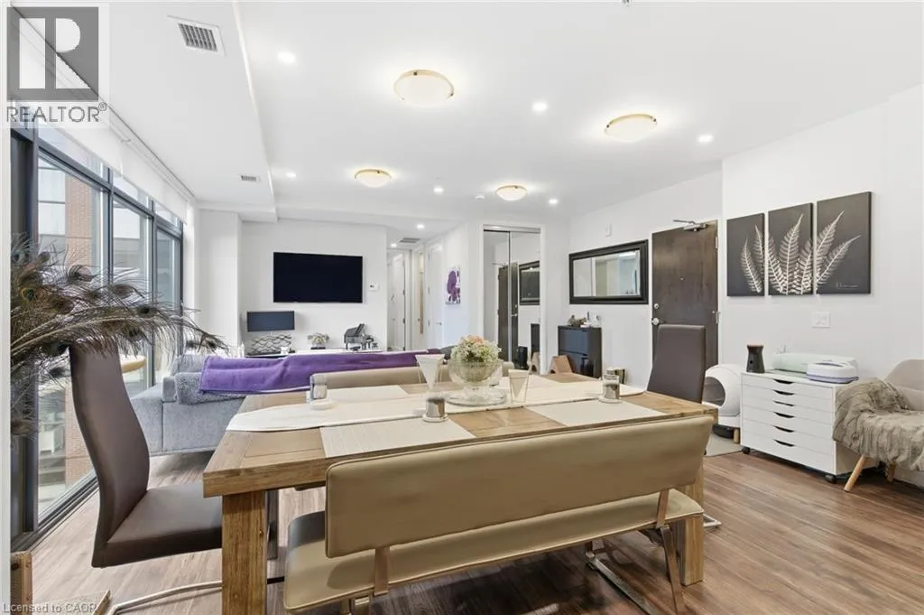 118 King St E, Enter on King St between Catherine St and John St Bright, refined, and effortlessly contemporary - Suite 916 at the iconic Royal Connaught, a beautifully preserved piece of Hamilton's history in the heart of downtown, offers an exceptional standard of urban living. This nearly 900 sq. ft 1-bedroom + den residence features 9' ceilings and expansive floor to ceiling windows that span the full width of the suite, immersing the home in natural light and framing sweeping southeast views of the courtyard, city skyline, and escarpment. Showcasing one of the building's most desirable layouts, the suite includes extra height kitchen cabinetry with lower pull-outs, granite countertops, pot lights, solar-charged motorized blinds, and a walk-in closet with custom organizers. The bathroom has also been beautifully upgraded with granite counters and premium porcelain tile. Thoughtful enhancements throughout elevate both comfort and style. The spacious open den provides exceptional versatility - ideal as a home office, guest room, or potential second bedroom. Residents enjoy access to outstanding amenities, including a rooftop terrace perfect for sunsets and summer evenings, concierge service, a fully equipped fitness centre, media room and elegant party room. This unit also comes with an owned locker and an underground parking spot. Step outside and you're moments from Hamilton's finest cafes, shops, art galleries, and restaurants, along with the vibrant energy of James Street. Hospital services, transit and GO station connections are all within easy reach. If you're seeking a seamless blend of luxury, history, and urban convenience, this spectacular suite at the Royal Connaught might just be your perfect match. (id:27476)