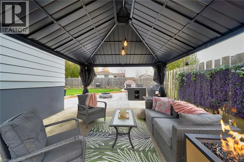 East on Loconder from Upper Gage. Left (North) onto Queen Victoria Drive. Left (West) onto Raleigh St. This home takes âturn-key readyâ to the next level! Every inch of this modern, stylish raised ranch bungalow has been upgraded with care and attention to detail. Step inside to a warm and inviting living room featuring a custom stonewall and cozy fireplace, perfect for relaxing or entertaining. The bright dining area flows into an updated kitchen with newer appliances and plenty of space to cook and connect. The main floor offers three spacious bedrooms and a beautiful 4pc bath. Downstairs, discover a fully finished lower level with three additional bedrooms, a large rec room, a modern 3pc bath, laundry, and tons of storage space, ideal for extended family or guests. Step outside to your private backyard oasis, complete with a 2024 deck, stone firepit, gazebo, and a new hot tub (Oct 2024, drained and winterized). Located in a highly sought-after Hamilton Mountain neighbourhood, this home offers convenience, comfort, and style in one incredible package. Major updates include: fridge (2024), stove & OTR microwave (2025), roof & stone tile (2025), deck (2024), furnace and heat pump (2023) and water heater (under 5 years, owned). Simply move in and enjoy, this one truly checks every box! (id:27476)