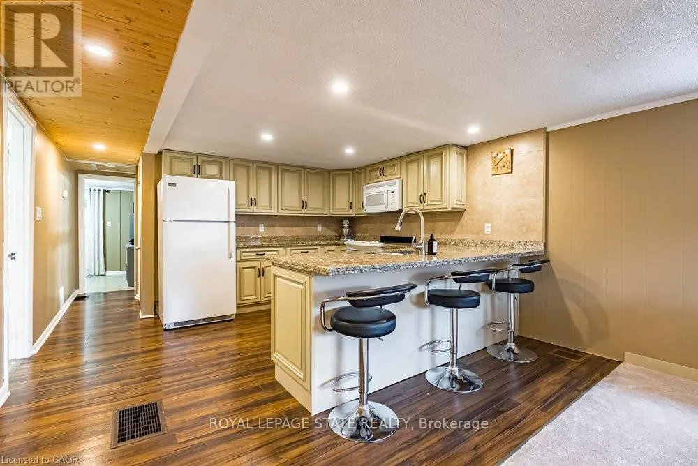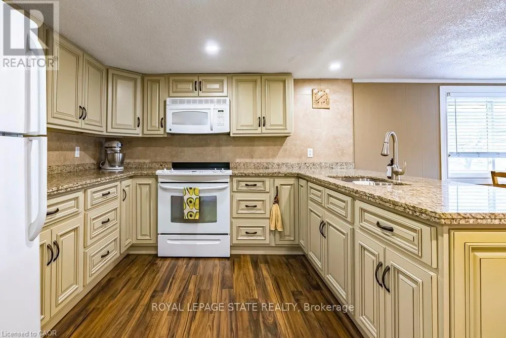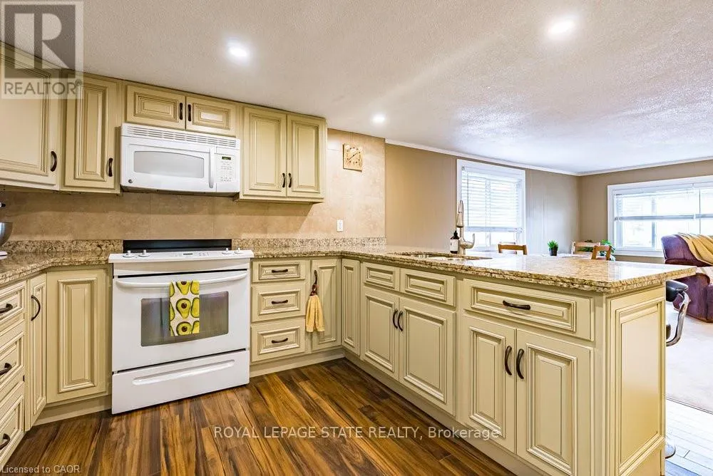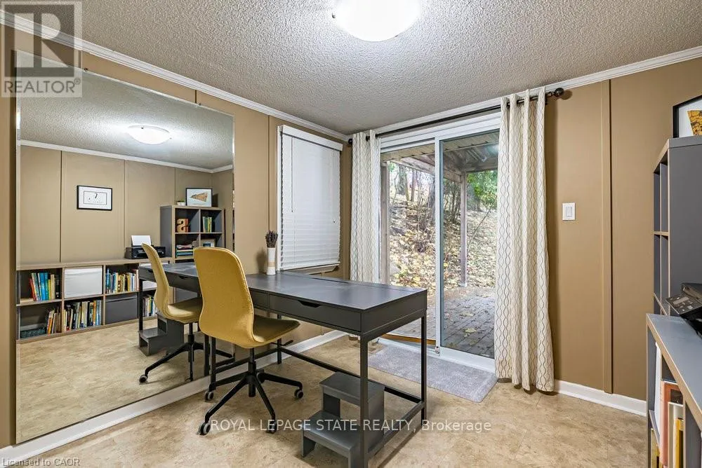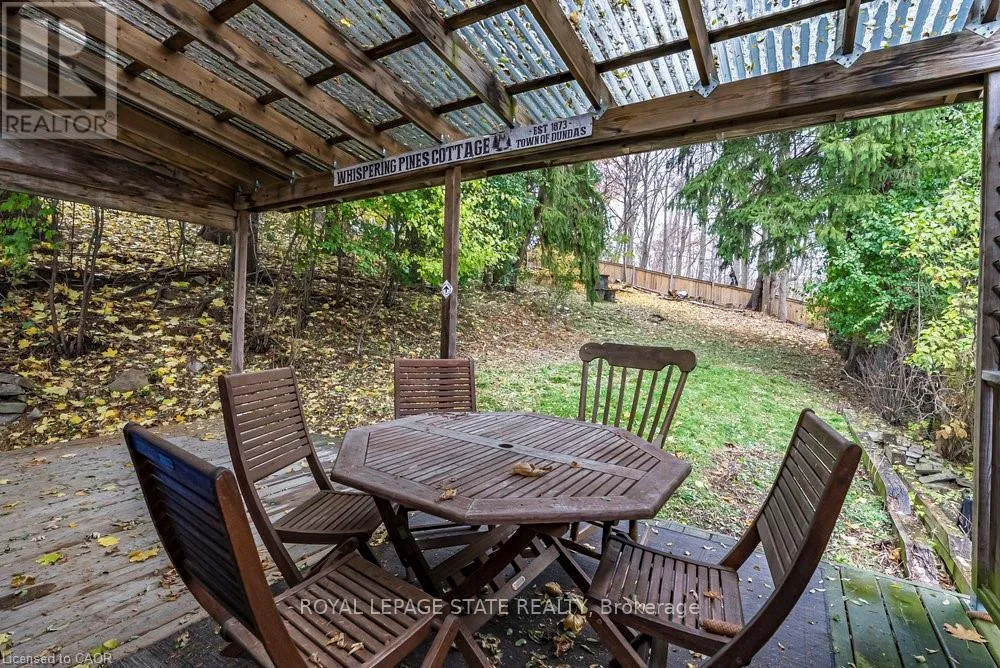 Cross Streets: Creighton Rd. ** Directions: Governor's Rd to Creighton to Begue. Welcome to "Whispering Pines Cottage" Better Than Condo Living! Enjoy the charm of Dundas living in this fabulous detached bungalow, just a short stroll from the vibrant downtown core. Nestled on a picturesque 33' x 161' treed lot, this home offers a peaceful connection to nature right in the heart of town. Step inside to a bright, open-concept Living and Dining area with new broadloom and large windows that fill the space with natural light. The spacious Kitchen features granite counters, a handy peninsula, and built-in appliances-perfect for everyday living and entertaining alike. The 4-piece Bathroom offers a touch of luxury with its granite countertop and ceramic flooring. The Primary Bedroom overlooks the beautifully landscaped backyard, while the second Bedroom-currently used as an office-walks out to a covered deck, ideal for morning coffee or evening relaxation. Recent updates include: roof stripped and reshingled (Oct. 2025), fresh décor, updated plumbing, replaced windows, doors, siding, eaves, and electrical. Whether you're downsizing or buying your first home, this sweet bungalow is a rare find-quiet, convenient, and move-in ready. Steps to conservation trails, schools, public transit, shopping, and all the charm of downtown Dundas! (id:27476)