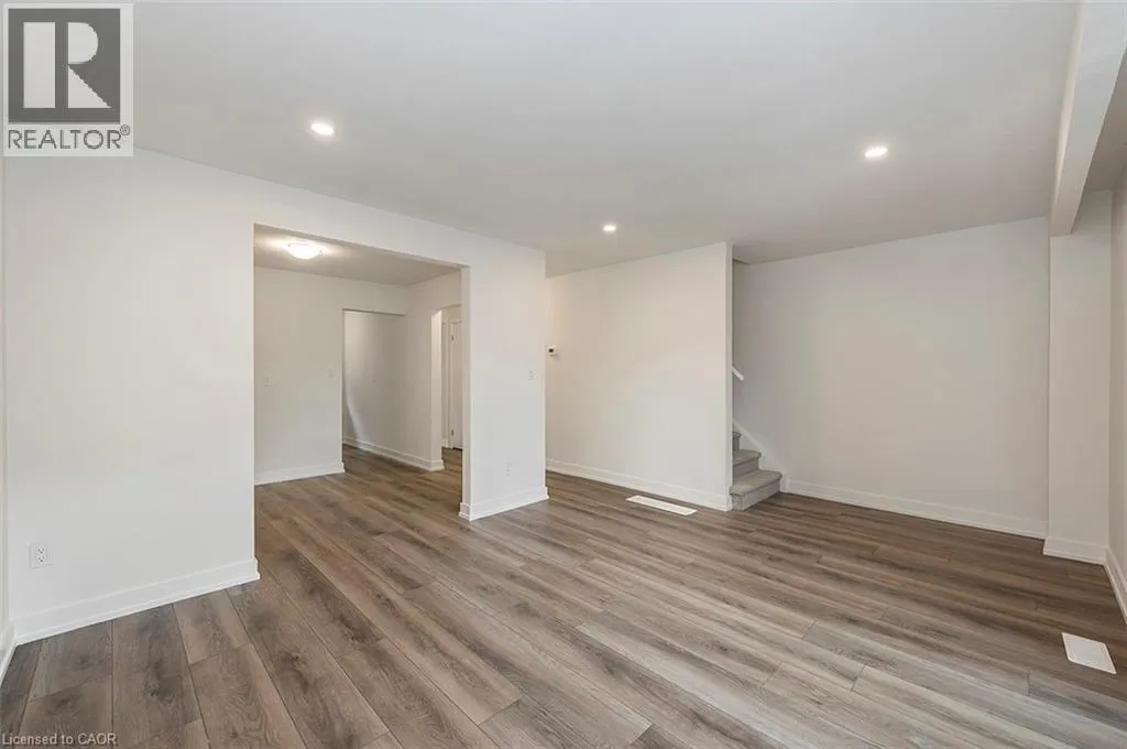 Queenston Road, North on Woodman Drive N Welcome to 65 Woodman Drive North! This spacious 3-bedroom, 1.5-bath END-UNIT townhome will be fully renovated and ready for you to move in. The home will feature a brand-new kitchen with stainless steel appliances, quartz countertops, and modern cabinetry. Wide plank vinyl flooring will flow seamlessly throughout the main floor, complemented by new pot lights in the living room. Enjoy the added privacy of backing onto a beautifully maintained common green space, perfect for relaxation or play. Complete with a private garage and located just minutes from the Red Hill Valley Parkway, public transit, shopping, and all essential amenities â this home will offer both comfort and convenience in one of Hamiltonâs most accessible locations! ** Listing photos are of Model home & virtually staged ** (id:27476)