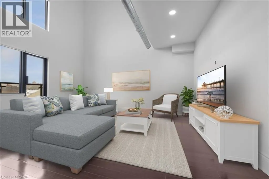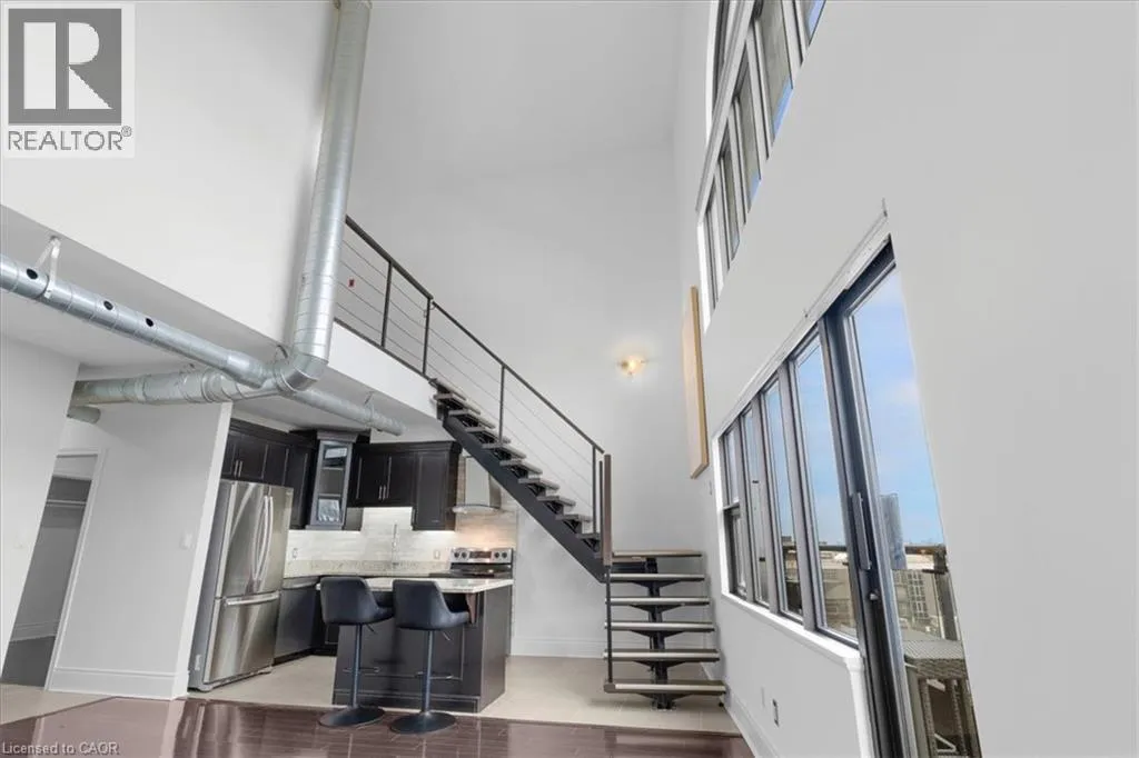 King William St. btwn John St. N. and Catharine St. N. Experience fine urban living in this spectacular industrial, modern penthouse, perfectly tailored for young professionals, creatives, and entrepreneurs who crave style, sophistication, and connection to Hamilton's vibrant core. Step inside to a soaring wall of windows that flood the open-concept living space with natural light and frame city views. The industrial-chic design creates a refined yet creative atmosphere that inspires both productivity and relaxation. The main floor features a contemporary kitchen, bright living room with walkout to the first balcony, convenient laundry room, bathroom, and a versatile bonus room with closet, ideal for dining, home office, art studio, guest room, or meeting space. Upstairs, the primary bedroom is a retreat, featuring a walk in closet and 5 piece ensuite bathroom. You'll also find the second, larger balcony with bbq, perfect for morning coffee, entertaining, or late nights above city lights. Every detail has been designed for modern living, from smart Hue lighting throughout that sets the perfect ambiance, to high-end finishes and appliances that make this penthouse as functional as it is beautiful. Located in the heart of downtown Hamilton, youâre steps away from the cityâs best cafés, restaurants, art galleries, co-working spaces, and nightlife, everything a dynamic professional lifestyle demands. Whether youâre an artist seeking inspiration or a business-minded achiever looking to stay connected, this condo is your ultimate home base. Live. Create. Thrive. (id:27476)