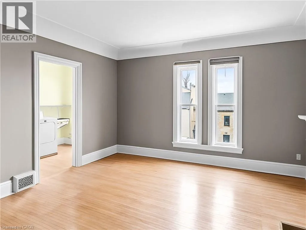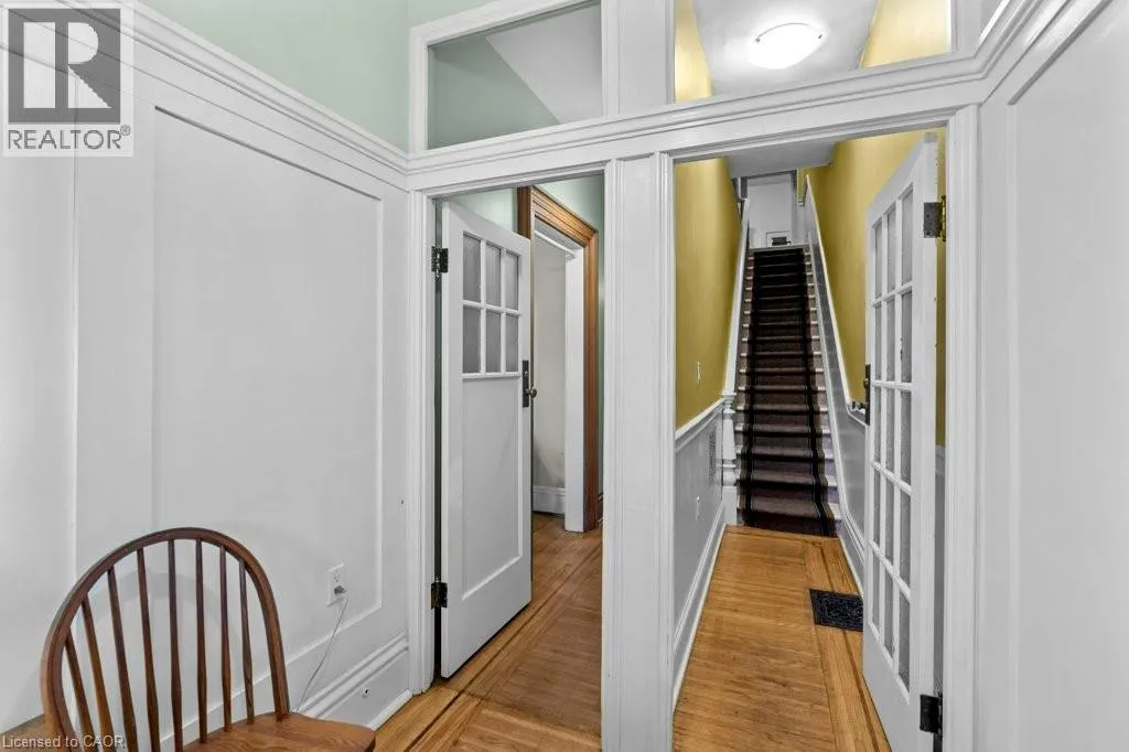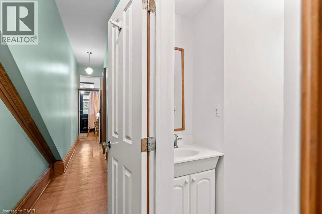 Main St W between Pearl St S and Ray St S Charming 1895 Victorian Rowhouse steps from Hess Village. Step back in time while enjoying modern comforts in this character-rich rowhouse. Featuring high ceilings, original hardwood floors, and exquisite trim, this home retains its historic charm while boasting updated mechanics, including plumbing, electrical, furnace, roof, and flashing. The main floor offers a welcoming living room with a gas fireplace, two spacious bedrooms, and a generous eat-in kitchen. This chefâs haven is complete with a double sink, gas stove, skylight, pot lights, and a large window overlooking the backyard. The kitchen also includes a built-in dishwasher and offers convenient access to the fully fenced yard. Two 2pc bathrooms are located on the main floor, with one featuring hook-ups for a tub. Upstairs, the second level features another kitchen (with double sink and built-in dishwasher), a cozy living room, a 3pc bathroom, bedroom, and a bright laundry room. The third level offers an additional two bedrooms. This home presents a fantastic opportunity for investors or homeowners looking for rental income. It can easily be converted back into two units (legal non-conforming)âa 2-bedroom unit with laundry on the main and basement level, and a 3-bedroom unit with laundry on the upper levels. Located in the highly sought-after Hess Village, this property is in a high-demand rental area and is just steps away from trendy shops, restaurants, and entertainment. The backyard is fully fenced, with new sod being added and a shed for extra storage. Youâll enjoy easy access to the main level kitchen, as well as a separate stairway leading to the second level. Thereâs plenty of street parking available, and the yard could easily be reduced in size to add rear parking. Some of the original features that add unique charm to this property include the restored windows, the original hardware with beveled glass on the front door, and abundant hardwood throughout. Don't miss out on this rare find! (id:27476)