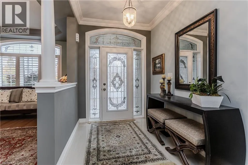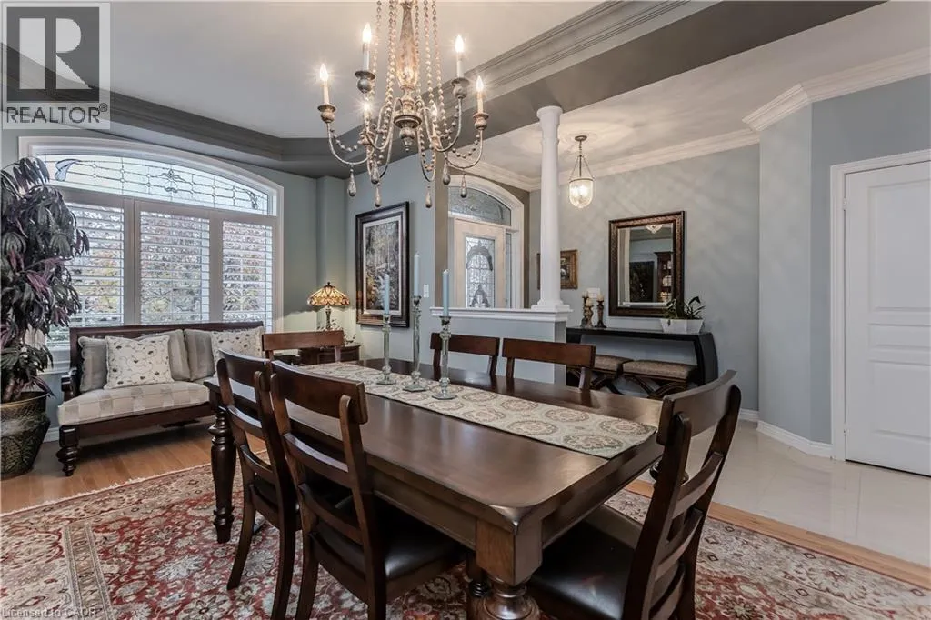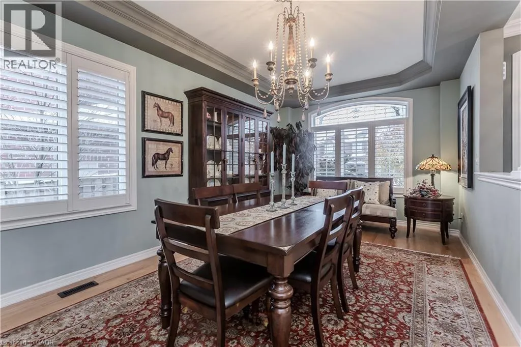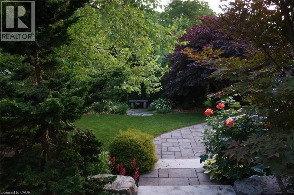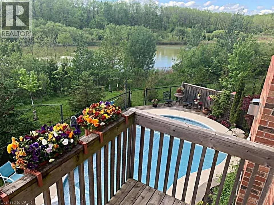 Dundas St E to Burke St to McKnight Ave to Attridge Cres Discover the perfect blend of comfort, community, and convenience in this beautifully upgraded family home nestled in one of Waterdownâs most sought-after neighbourhoods. Built by Starlane Homes and set on a picturesque lot backing onto green space and a pond, this property offers the privacy of no rear neighbours alongside a family-focused lifestyle. From the moment you arrive, the curb appeal stands outâmature trees including Japanese maple, blue spruce, birch, and redbud, professional landscaping, a double garage with inside entry, and a driveway for four cars. Inside, thoughtful details such as crown moulding, California shutters, designer lighting, and 9ft ceilings elevate every space. The main floor features a charming dining room with hardwood, a tray ceiling, and a stained-glass accent window. The spacious eat-in kitchen offers porcelain tile floor, island, custom cabinetry, SS appliances, and an upgraded patio door leading to a wooden deck overlooking the backyard oasis. The adjoining family roomâcomplete with a gas fireplace and brick feature wallâis the perfect place to unwind. A 2pc powder room completes this level. Upstairs, the expansive primary suite offers a walk-in closet and a beautifully upgraded 4pc ensuite with a soaker tub, oversized vanity, porcelain tile, subway tile, and a glass walk-in shower. Three additional well-sized bedrooms, including one with a cozy window seat, share a family-friendly 4pc bath with a separate toilet room, ideal for busy mornings. The fully finished lower level adds incredible versatility with high ceilings, multiple above-grade windows, a walkout, a bright rec room, a full in-law suite with second kitchen, a bedroom, a 3pc bath, and a separate entranceâperfect for extended family or multi-generational living. The backyard completes the lifestyle, offering full privacy, professional landscaping, an interlock patio, armour-stone detailing, and an in-ground saltwater poolâyour own private retreat for family fun. (id:27476)
