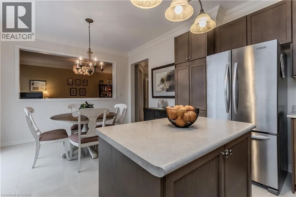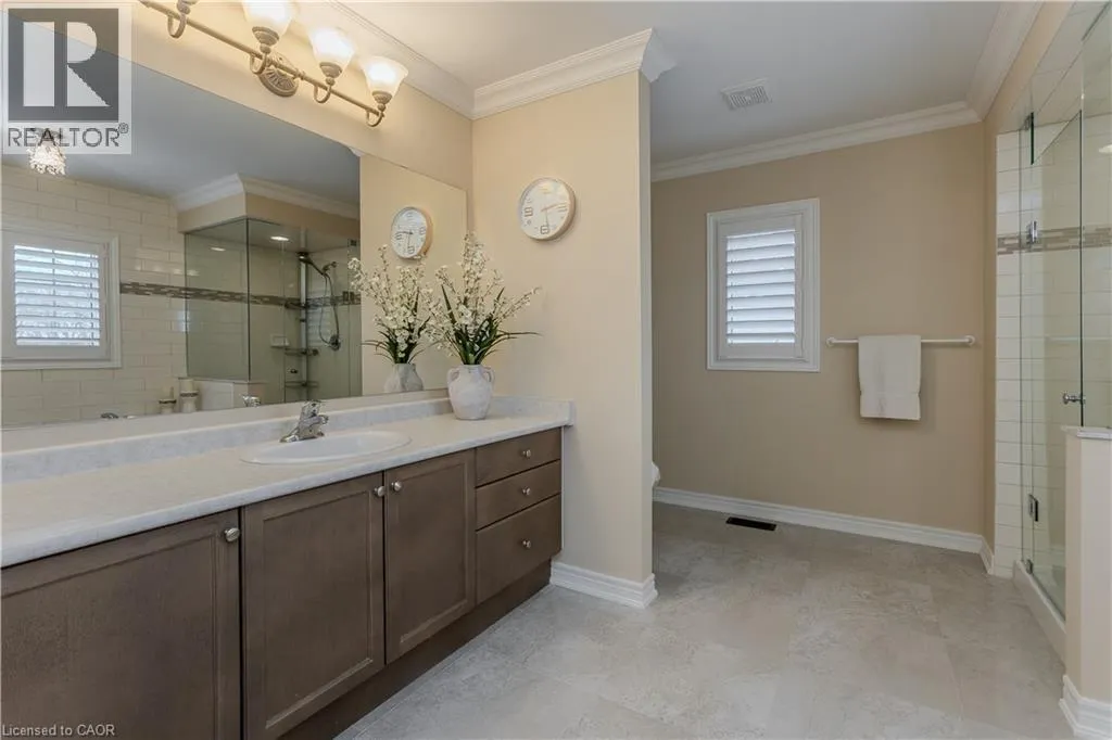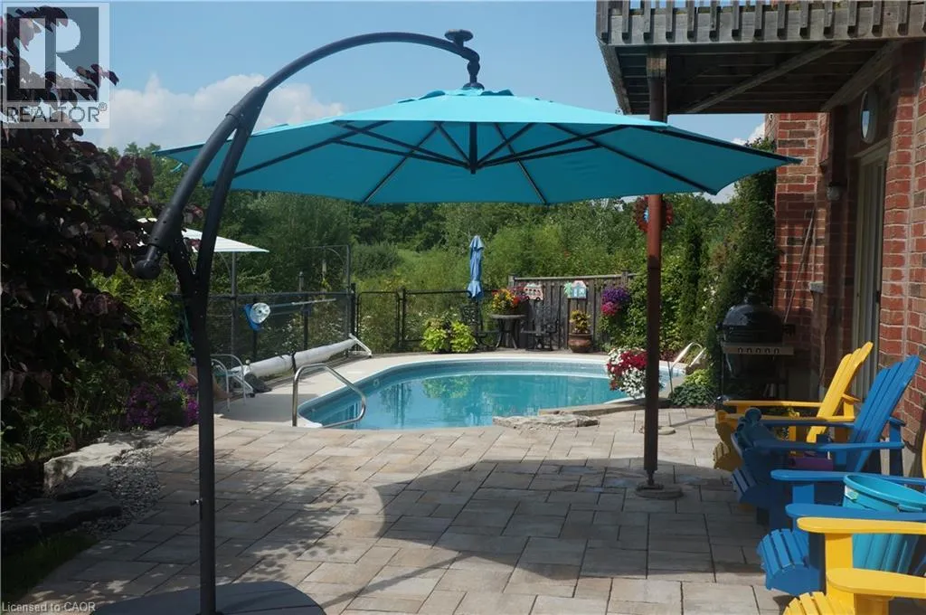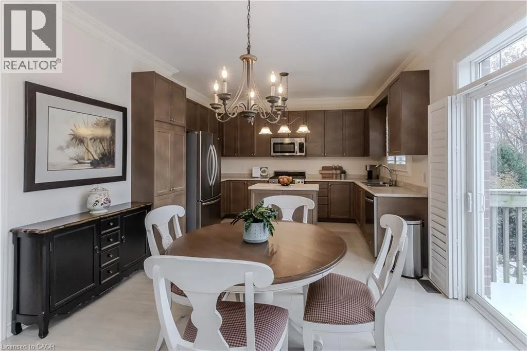 Dundas St E to Burke St to McKnight Ave to Attridge Cres Discover the perfect blend of comfort, community, and convenience in this beautifully upgraded family home nestled in one of Waterdownâs most sought-after neighbourhoods. Built by Starlane Homes and set on a picturesque lot backing onto green space and a pond, this property offers the privacy of no rear neighbours alongside a family-focused lifestyle. From the moment you arrive, the curb appeal stands outâmature trees including Japanese maple, blue spruce, birch, and redbud, professional landscaping, a double garage with inside entry, and a driveway for four cars. Inside, thoughtful details such as crown moulding, California shutters, designer lighting, and 9ft ceilings elevate every space. The main floor features a charming dining room with hardwood, a tray ceiling, and a stained-glass accent window. The spacious eat-in kitchen offers porcelain tile floor, island, custom cabinetry, SS appliances, and an upgraded patio door leading to a wooden deck overlooking the backyard oasis. The adjoining family roomâcomplete with a gas fireplace and brick feature wallâis the perfect place to unwind. A 2pc powder room completes this level. Upstairs, the expansive primary suite offers a walk-in closet and a beautifully upgraded 4pc ensuite with a soaker tub, oversized vanity, porcelain tile, subway tile, and a glass walk-in shower. Three additional well-sized bedrooms, including one with a cozy window seat, share a family-friendly 4pc bath with a separate toilet room, ideal for busy mornings. The fully finished lower level adds incredible versatility with high ceilings, multiple above-grade windows, a walkout, a bright rec room, a full in-law suite with second kitchen, a bedroom, a 3pc bath, and a separate entranceâperfect for extended family or multi-generational living. The backyard completes the lifestyle, offering full privacy, professional landscaping, an interlock patio, armour-stone detailing, and an in-ground saltwater poolâyour own private retreat for family fun. (id:27476)