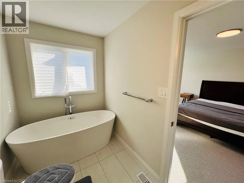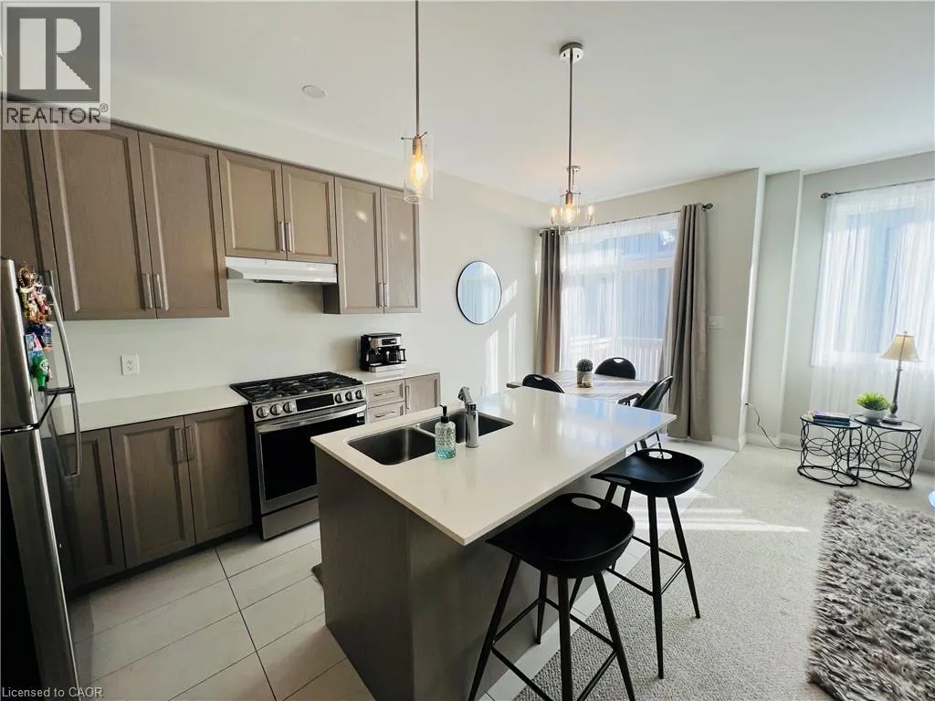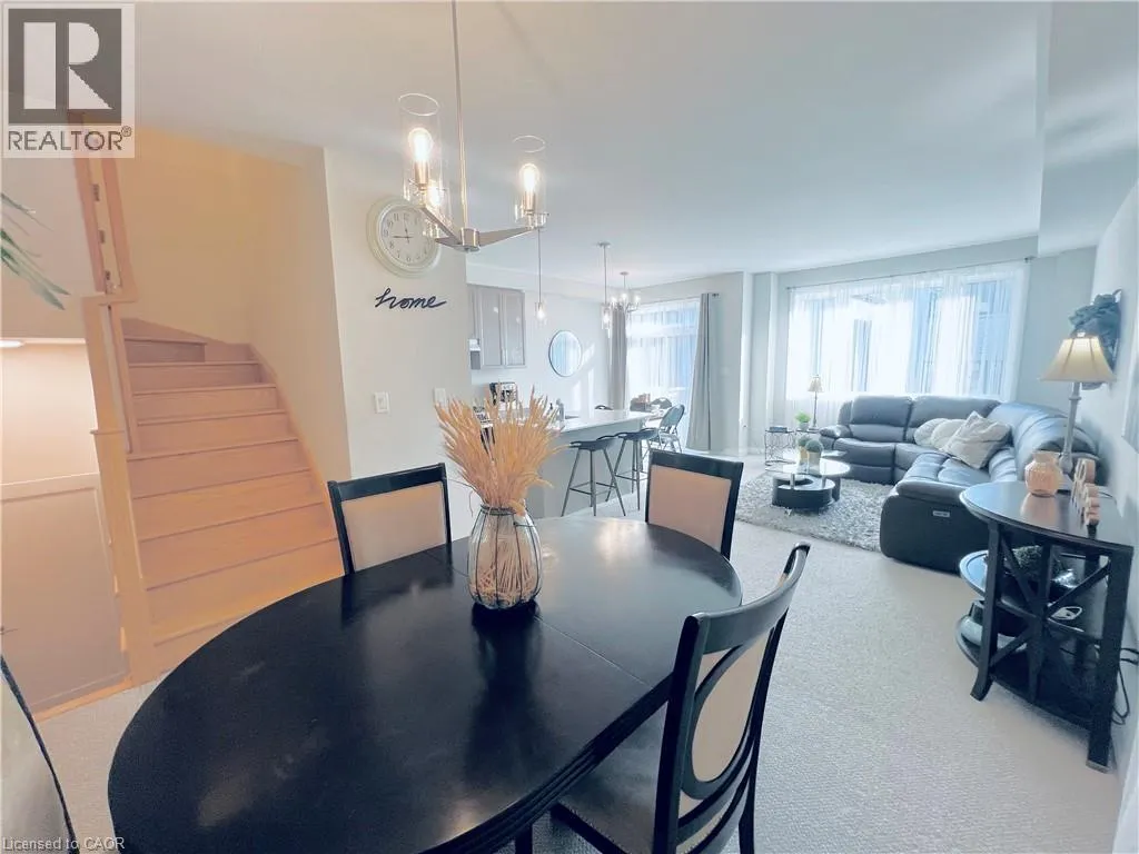 Rymal Rd W to Hazelton Ave to Alessio Dr to Cherry Blossom Heights Welcome to this beautifully newly built semi-detached 2-storey home, thoughtfully crafted by the reputable Spallaci Home Builders. Nestled in the highly sought-after, upscale, & family-friendly West Hamilton Mountain neighbourhood, this home offers the perfect combination of modern design, everyday comfort, & exceptional convenience. From the moment you arrive, the inviting brick & stone exterior & charming covered porch create a warm & welcoming first impression. Step inside to discover a bright, open living space enhanced by 9-foot ceilings & large windows that fill the main floor with natural light, creating an uplifting & spacious atmosphere. The heart of the home is the stunning kitchen, featuring quartz countertops, sleek overhead cabinets & drawers, & a seamless walk-out to the rear deckâideal for outdoor dining, entertaining, or simply enjoying a quiet moment outside. The modern open-concept layout makes hosting & everyday living feel effortless, with a smooth flow from kitchen to dining to living areas. Upstairs, the home continues to impress with a well-designed second floor that offers comfort & privacy for the whole family. The main bedroom serves as a peaceful retreat, complete with a private ensuite bath & a walk-in closet. Two additional bedrooms provide flexibility for children, guests, or office spaceâone of which includes its own walk-in closet for added convenience. The separate second-floor laundry room is a thoughtful & practical touch that simplifies daily routines. The partially finished basement, complete with a 3-piece bath, offers excellent potential for additional living spaceâwhether you envision a cozy family room, home gym, hobby area, or guest suite. Perfectly located minutes from the Garth & Upper James shopping areas, & a short distance to nearby parks & schools, this home delivers style, comfort, & convenience in one exceptional package. A wonderful opportunity to enjoy modern living in a fantastic neighbourhoodâwelcome home! (id:27476)