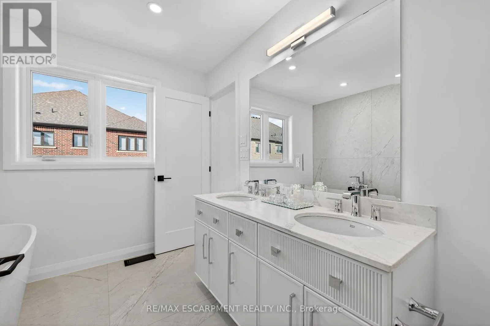 Cross Streets: Rymal Rd. W. and Garth St. ** Directions: Rymal Rd to Hazelton. R. on Alessio Rymal Rd W to Hazelton. Turn right at Alessio Drive. Here's your exclusive opportunity to be part of another celebrated community by an award-winning builder. Welcome to Eden Park - ideally located on Hamilton's desirable West Mountain, close to parks, schools, scenic walking trails, a community recreation centre, and with easy access to major highways for commuters. This beautifully crafted, brand new 1,995 sq. ft. luxury home sits on a 32 ft. x 98 ft. lot and boasts an impressive $120,000 in premium upgrades throughout. Step inside to a professionally designed open-concept living space, thoughtfully finished with high-end materials and expert craftsmanship. The bright and inviting eat-in kitchen features extended-height cabinetry, quartz countertops and back splash, stainless steel appliances, and a stylish upgraded lighting- perfect for everything from morning coffee to weekend entertaining. The warm oak-engineered hard wood flooring flows seamlessly to a solid oak staircase, stained to match, leading to three spacious bedrooms. The primary suite offers a relaxing retreat, complete with a luxurious 5-piece ensuite featuring oversized 48" x 48" tiles, a walk-in shower, and a deep soaker tub - ideal for winding down after a long day. Additional highlights include an Oversized "look-out" basement with large windows, bathroom rough-in, and endless potential for a future rec room, home gym, or kids' play area. Entertainer-friendly layout with easy rear yard access, perfect for hosting backyard BBQs this summer. This home combines elevated style with practical family living - all in a prime location. Don't miss your chance to own a piece of Eden Park. (id:27476)