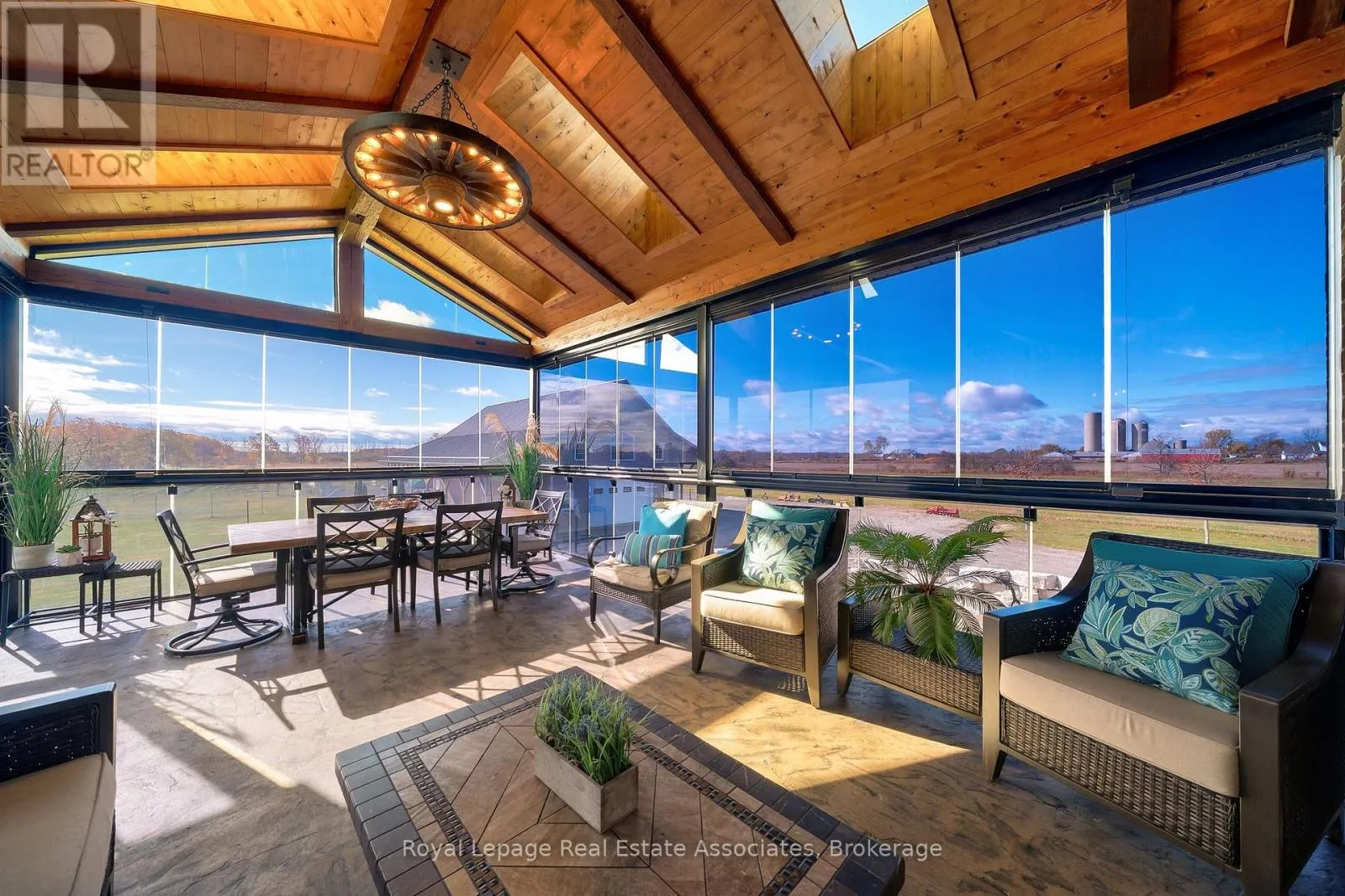 Ridge Rd/Fifty Rd Don't miss this incredible and rare opportunity to own a luxury, custom built bungalow with over 4800 sq of living space, located on over 21 acres of scenic land, including a 2500 sq ft workshop, a private pond, forest and farmland! Enjoy the stunning sunsets and the peace and privacy of country living in desirable Stoney Creek and still be close to all the city amenities. Upon entering this remarkable residence, you will be amazed by the beautiful wide-open views from the oversized windows and the attention to detail in this exceptionally well built bungalow, which can easily be wheelchair accessible. The chef-inspired custom kitchen features an oversized island, solid wood cabinets, granite countertops, heated tile floor and high end stainless steel appliances including double ovens, 6 burner gas range, bar fridge, ice maker and a walk-in butler's pantry with stand-up freezers. Enjoy morning coffee in the lumon-glass enclosed 3 season sunroom. Relax by the gas fireplace in the living room, with 12ft cathedral ceilings and stunning barn beams. The laundry room/mudroom has direct entry to the heated 3+ car garage (over 1000 sq ft) with epoxy floors and 12 ft ceilings. The primary suite features his/hers walk-in closets and a spa-like 4 pc ensuite with heated tile floors. Two additional bedrooms on the main floor - one with a private 3 pc ensuite and the other with cathedral ceiling and would be an ideal office space. If you love to entertain, the open concept rec room in the walk-out basement will amaze you! It is also roughed in for a second kitchen, wet bar and laundry room and would be an ideal in-law suite. Ample storage throughout the home and two separate cold rooms. This is a perfect property for business owners, investors, multi-generational living or anyone seeking the peace and privacy of luxury country living! (id:27476)