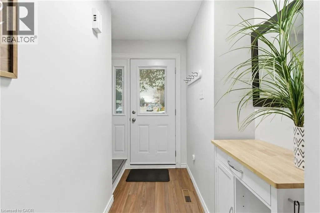 Lincoln M. Alexander Pkwy to Garth St to Garrow Dr to Brigadoon Dr to Golden Orchard Calling all first-time home buyers! This semi-detached home is perfect for those looking to step into homeownership! Located in a super convenient area, it features a bright, spacious living room with large windows that bring in lots of natural light. Upstairs, youâll find three comfortable bedrooms, ideal for setting up your dream space, along with a four-piece bathroom. The finished basement adds extra versatility, offering a cozy recreation room updated with new flooring (2022), a convenient half bathroom, and a flexible space currently set up as a home officeâperfect for remote work or hobbies. The home has been thoughtfully updated to make it move-in ready. Youâll love the waterproof luxury vinyl flooring (2024) in the foyer, dining, and kitchen areas, as well as the fresh blinds in the living room and two bedrooms. Additional upgrades include updated exterior doors, a repaved driveway that was widened (2023), an electrical panel upgraded to breakers from fuses and a new furnace and A/C unit (2022), owned tankless hot water heater (2025) and water softener (2025). This home is ready for you to move in and make it your own. Donât be TOO LATE*! *REG TM. RSA. (id:27476)