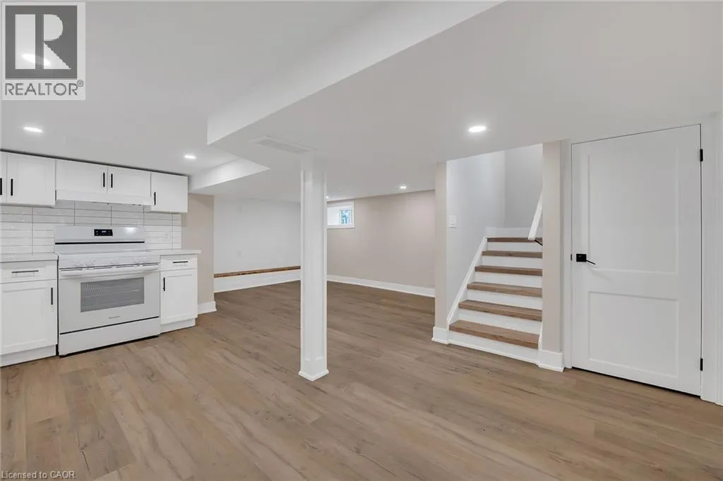 Follow Central Ave to Auburn, Go South For Lease â 1 Bed, 1 Bath Lower Unit with In-Suite Laundry....This fully finished, in-law-suiteâready basement apartment features its own private side entrance and a beautifully designed custom kitchen complete with quartz countertops, undermount sink, stylish backsplash, and pot lights. The open-concept layout flows into a spacious living room, creating a warm and comfortable living space. The unit includes a large bedroom, a modern 3-piece bathroom, and private in-suite laundry for added convenience. Perfect for a single professional or couple, this suite offers comfort, privacy, and contemporary finishes throughout. Located in a quiet, family-friendly neighborhood close to transit, shopping, parks, and other local amenities. (id:27476)