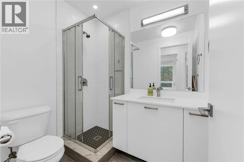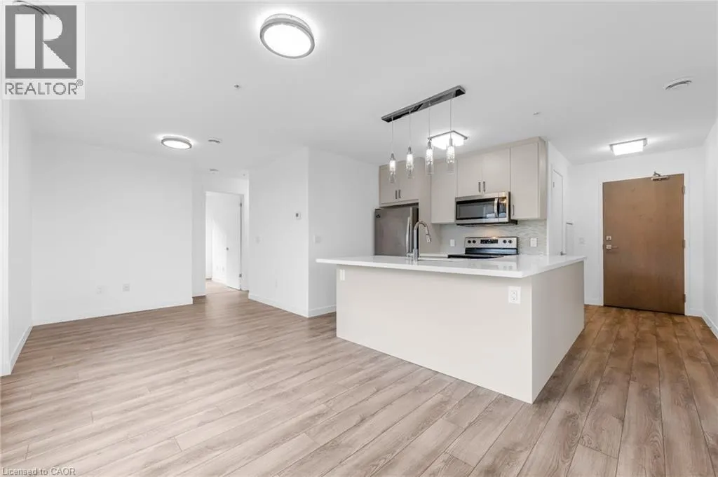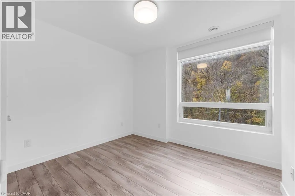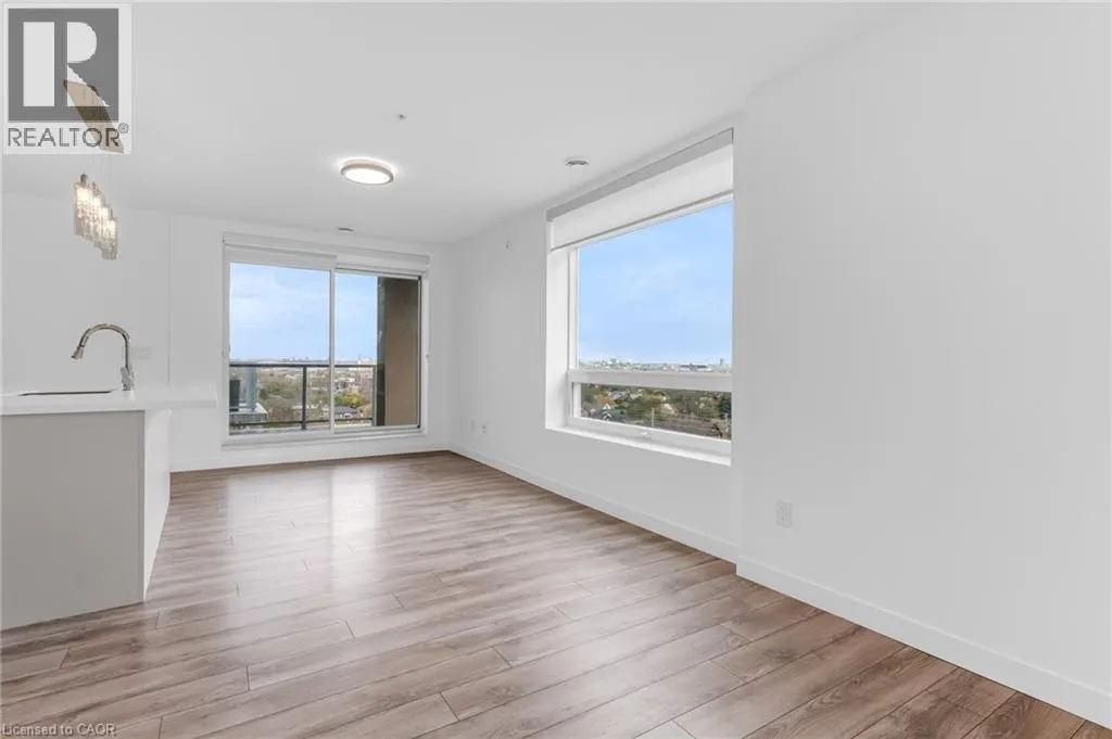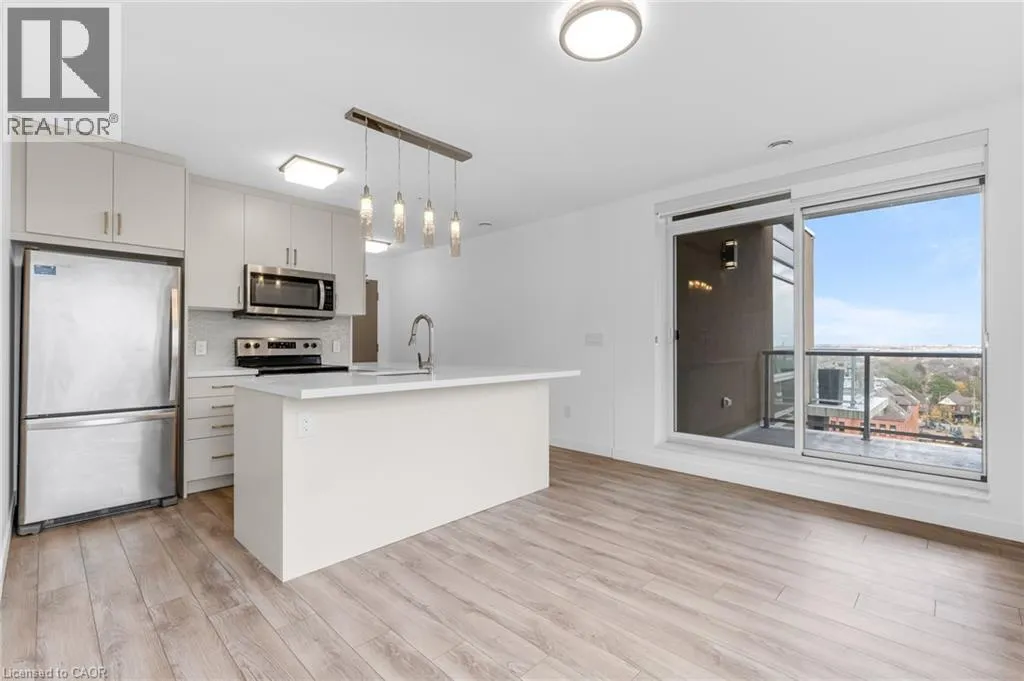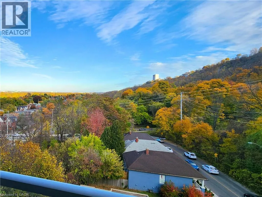 CHARLTON AVE BELOW THE ESCARPMENT. This Executive End-Unit 2 Bedroom 2 bath suite boasts over 800 sq ft of living space and is nestled just below the beautiful escarpment offering gorgeous scenic views while within walking distance of St Josephâs hospital and the GO Station. The open concept floorplan is luxuriously appointed throughout and offers carpet-free living w/ low maintenance laminate flooring, upgraded lighting and window coverings throughout, quality stainless steel appliances in the modern kitchen w/ quartz countertops which overlooks the living room/dining room and an inviting spa-like 4pc ensuite bath w/ quartz countertops and walk-in closet off the primary bedroom, an additional modern 3pc bath, spacious 2nd bedroom and in suite laundry. Step outside to your oversize balcony offering panoramic views of the bay and downtown core. Premium building amenities include a ground floor terrace w/ patio seating & bbq area, modern exercise room and party room. Steps to the Wentworth stairs, trails, prime transit, shopping, trendy restaurants and the downtown core â this elegantly appointed executive condo is sure to please! ** Use of 1 underground parking space & 1 storage locker included! RSA (id:27476)