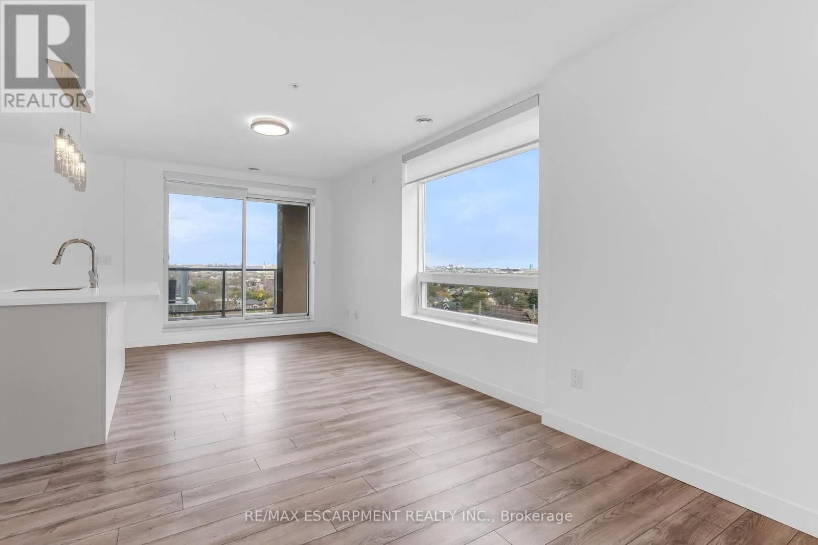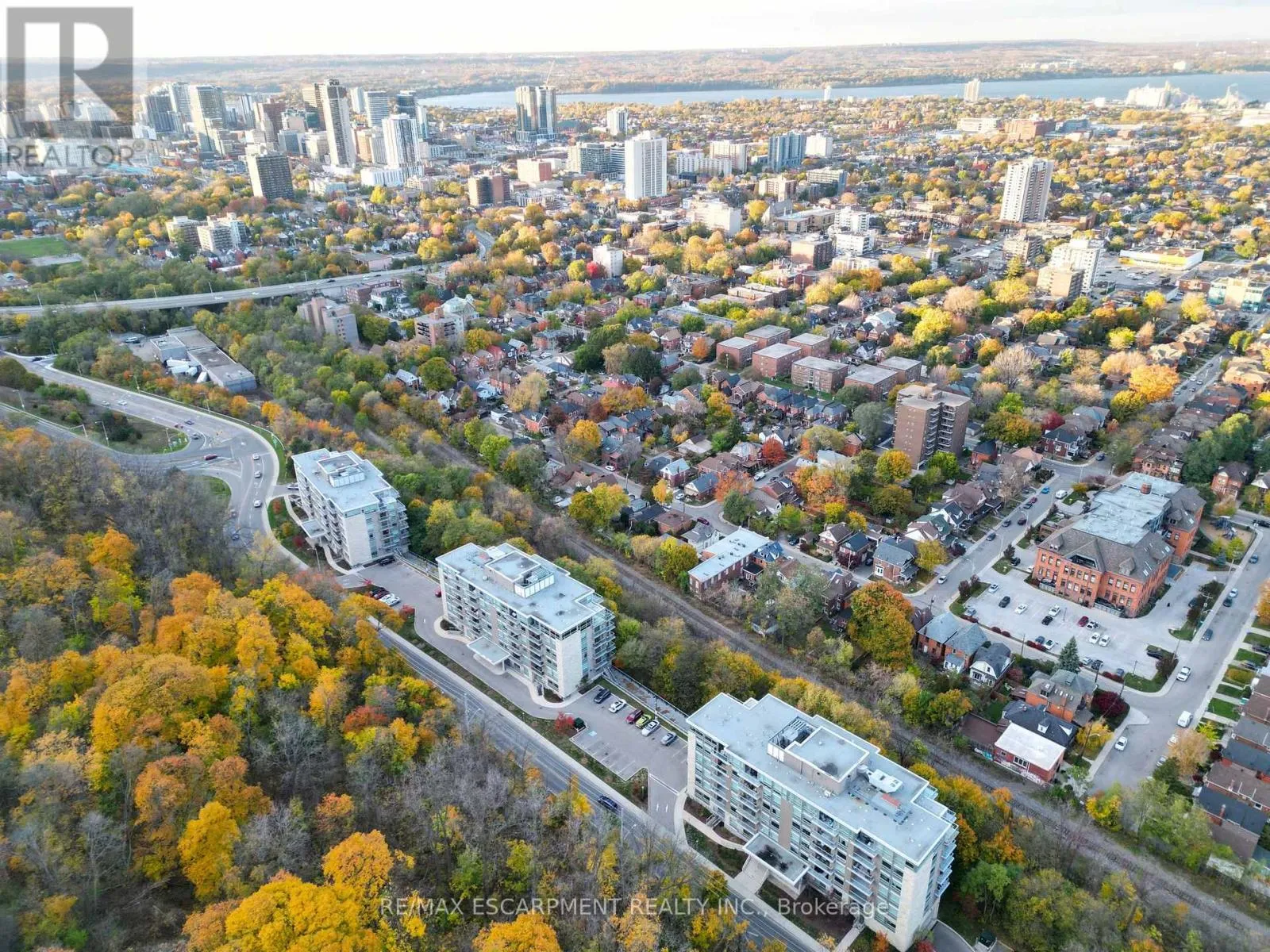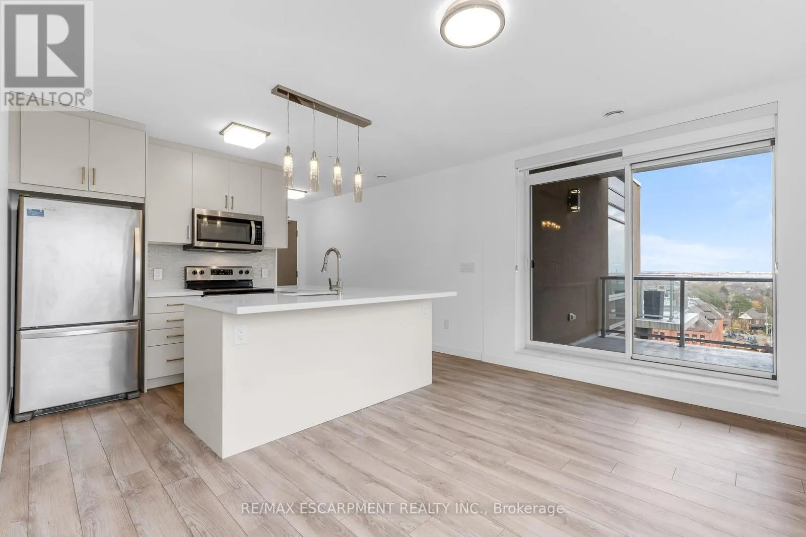 Cross Streets: Wentworth. ** Directions: CHARLTON AVE BELOW THE ESCARPMENT. This Executive End-Unit 2 Bedroom 2 bath suite boasts over 800 sq ft of living space and is nestled just below the beautiful escarpment offering gorgeous scenic views while within walking distance of St Joseph's hospital and the GO Station. The open concept floorplan is luxuriously appointed throughout and offers carpet-free living w/ low maintenance laminate flooring, upgraded lighting and window coverings throughout, quality stainless steel appliances in the modern kitchen w/ quartz countertops which overlooks the living room/dining room and an inviting spa-like 4pc ensuite bath w/ quartz countertops and walk-in closet off the primary bedroom, an additional modern 3pc bath, spacious 2nd bedroom and in suite laundry. Step outside to your oversize balcony offering panoramic views of the bay and downtown core. Premium building amenities include a ground floor terrace w/ patio seating & bbq area, modern exercise room and party room. Steps to the Wentworth stairs, trails, prime transit, shopping, trendy restaurants and the downtown core - this elegantly appointed executive condo is sure to please! ** Use of 1 underground parking space & 1 storage locker included! RSA (id:27476)