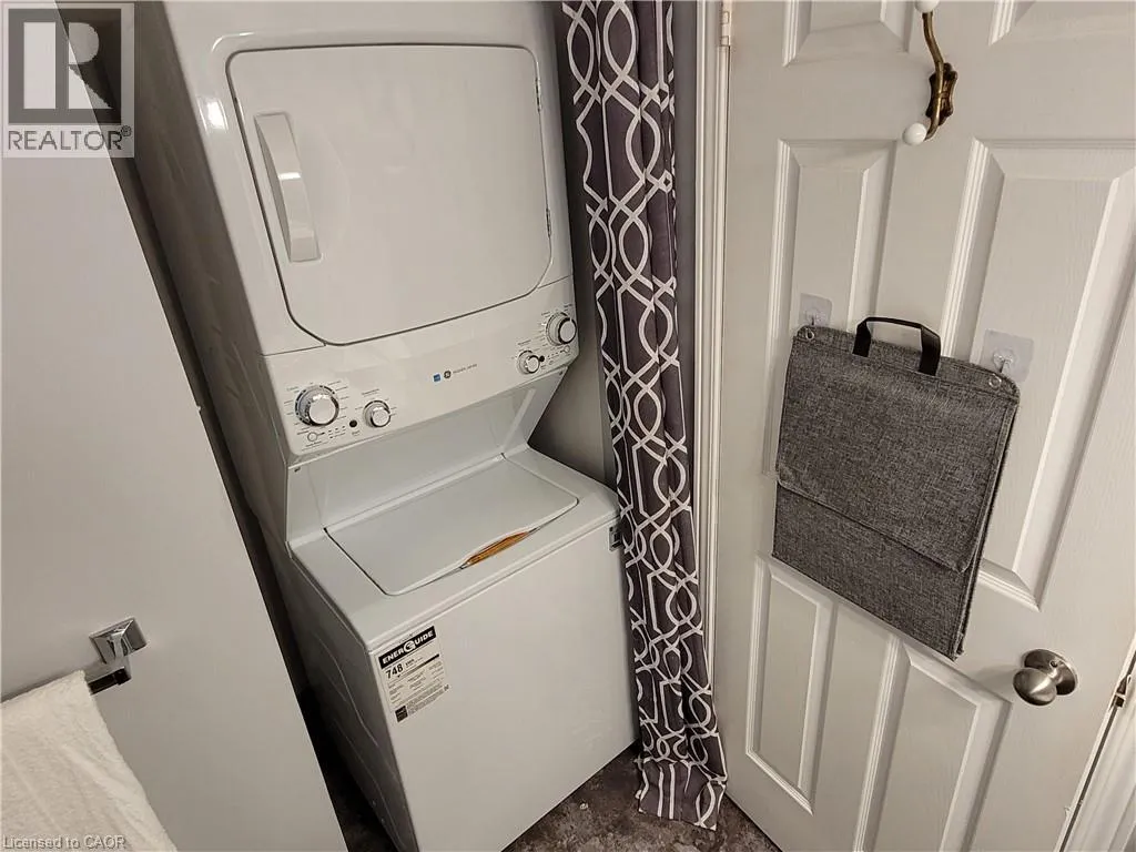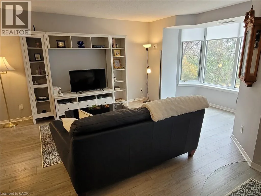 Limeridge Rd W between West 5th & Garth Street Welcome Home!!! Fabolous 1 Bedroom + Den Condo located in a quiet building on the desirable Hamilton West Mountain! This home is move in ready and features and open concept layout, updated light fixtures, fresh paint, newer flooring, In-suite Laundry, French Doors, Tons of Storage space and 3 very large windows that offer an abundance of natural light and look out upon a picturesque private treed greenspace! 1 parking spot in the heated underground parking and a Storage locker are also included with the Unit! Located close to Trails, Parks, Shopping, Bus Routs, schools, the LINC and more! This one won't last! Book your showing today! (id:27476)