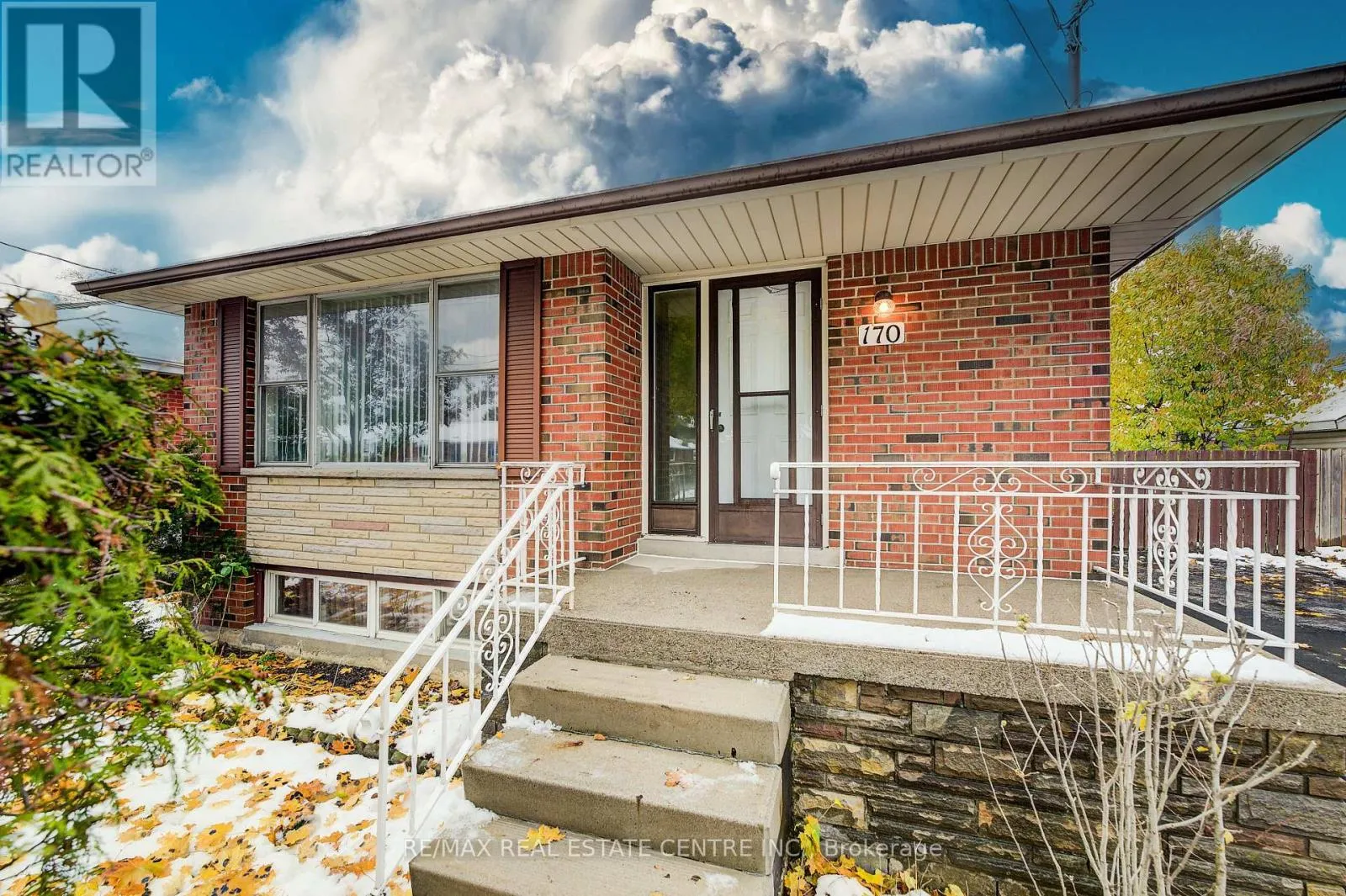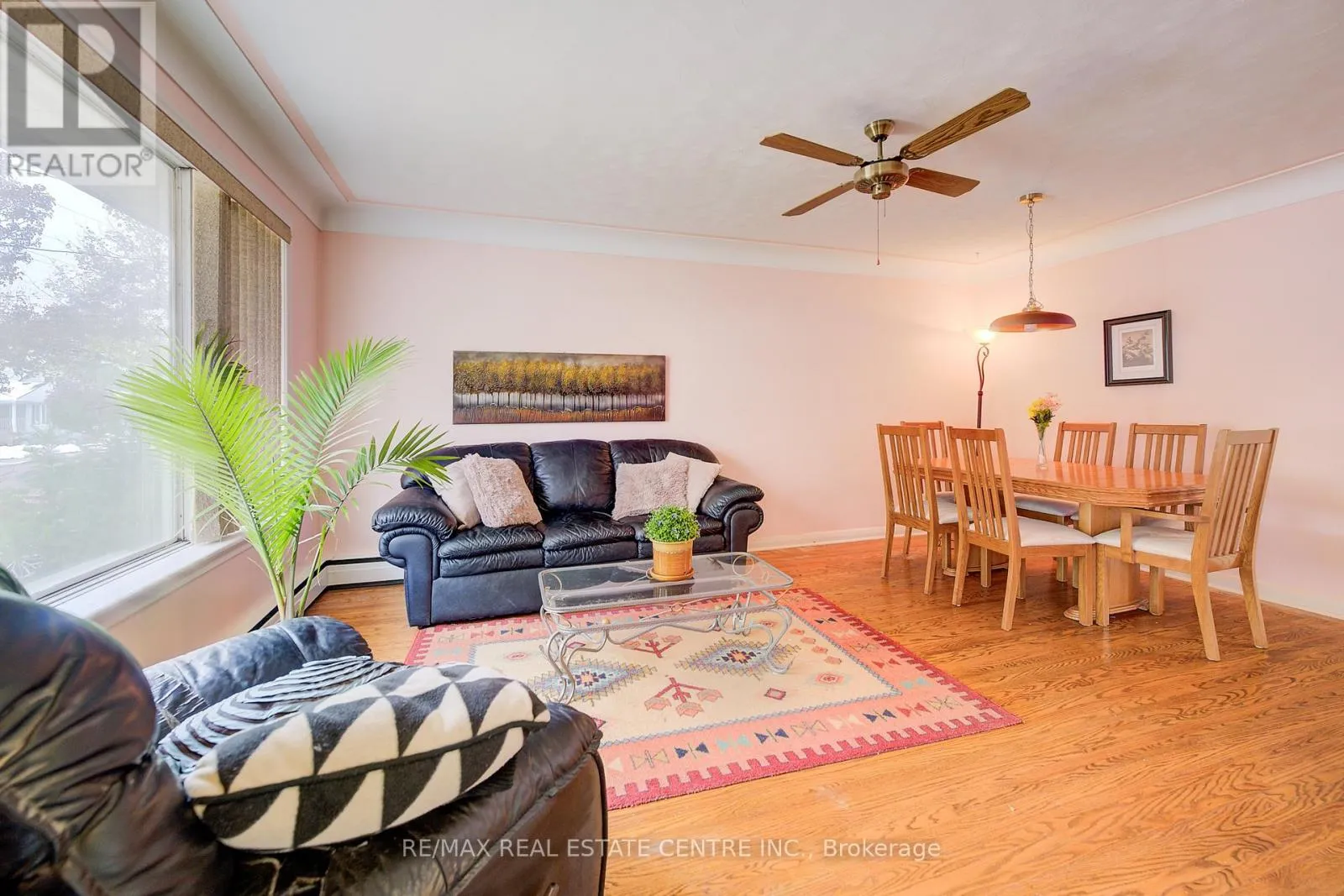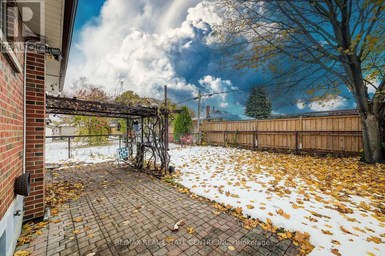 Fennell and Upper Ottawa Highly sought after, rarely available one floor beauty in Hamilton Mountain's family-friendly Hampton Heights. Set on a quiet, tree-lined street known for its welcoming neighbours, parks, and great schools. The main floor has hardwood flooring, large windows that bring in natural light, and a convenient kitchen pull out cabinet for built-in dishwasher. Huge, bright living/dining room perfect for relaxing and entertaining. Three spacious bedrooms. Lower level with walk up from a separate side entry-ideal potential in-law suite or teen retreat. The lower level features several above grade windows creating a bright space with two bonus bedrooms, possibly one more, area for future second bathroom, huge recroom with decorative fireplace, 100 amp circuit breaker panel. Large, paved, double width driveway with parking for six cars, and access to huge fenced backyard, paver brick patio with real grapevine canopy. 50'x100' lot with space for future pool and garage or workshop. Don't miss this opprtunity in this fantastic mountain neighbourhood. All sizes and measurments approximate and irregular. (id:27476)