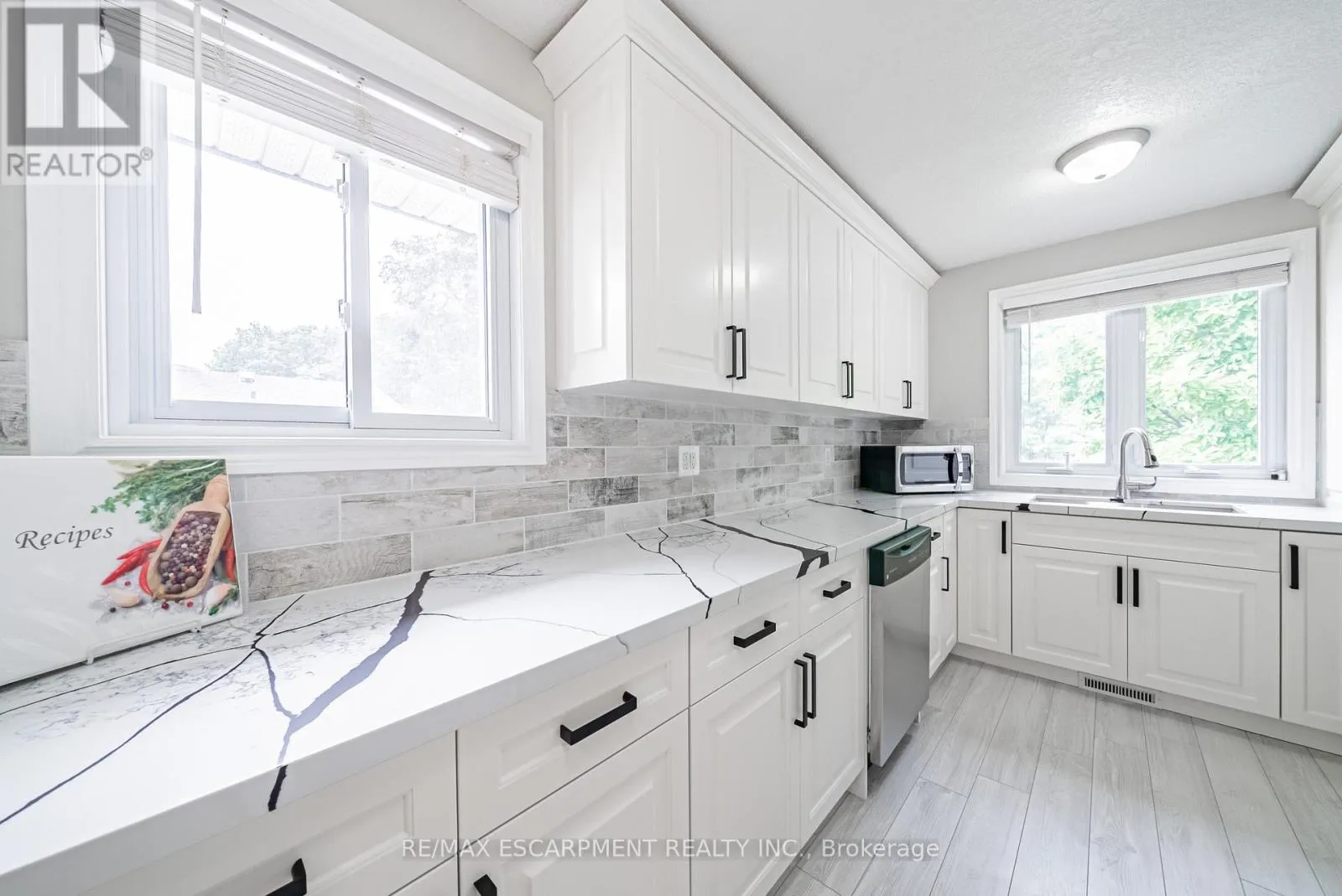 Cross Streets: Quaker Crescent. ** Directions: Loconder Drive to Queen Victoria Drive to Quaker Crescent to Quinlan Court. Welcome to 12 Quinlan Court, lovely 4-level Backsplit Home. As you approach the home, you'll be greeted by a generously-sized driveway, ensuring ample parking space for guests. Inviting backyard oasis complete with an in-ground pool and deck area, setting the stage for outdoor dining and entertaining. Attention to detail is evident in every corner of this home. The entire property has been fully renovated to the highest standards. The layout is thoughtfully designed, main floor features a delightful kitchen space, offering ample room for dining and living alike. Lower level boasts a bedroom, three-piece bathroom, and not one but two separate entrances leading to the backyard space. Upper floor hosts the master bedroom, second bedroom, and luxurious five-piece bathroom. Basement level offers additional living space and three-piece bathroom. This versatile area can serve as a guest suite, a home office, or a recreational space, catering to your unique needs and preferences. (id:27476)