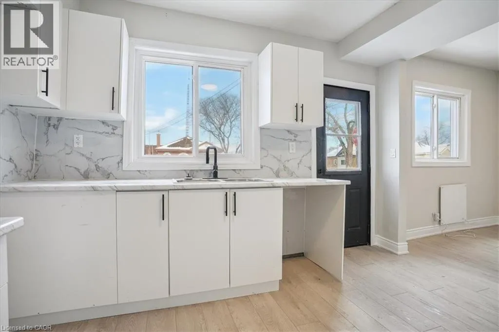 East on Britannia at the corner of Britannia and Tolton Ave AMAZING value in this 3-unit property in the desirable Normanhurst neighbourhood! All 3 units above grade with tons of natural light. The front main floor unit features a bright and airy open concept 1 bedroom unit with private entrance at the front of the house, luxury vinyl flooring, modern white kitchen and in suite laundry. In the rear, you will find an another 1 bedroom unit with private entrance featuring 4 piece bath and upstairs, is a beautiful spacious 2 bedroom unit featuring in suite laundry and natural light from every angle. This property features 3 hydro meters, 3 gas meters and plenty of private on-site parking. Located close to all amenities with prime highway access, plenty of parks and schools, this investment property is the perfect addition to your portfolio! (id:27476)