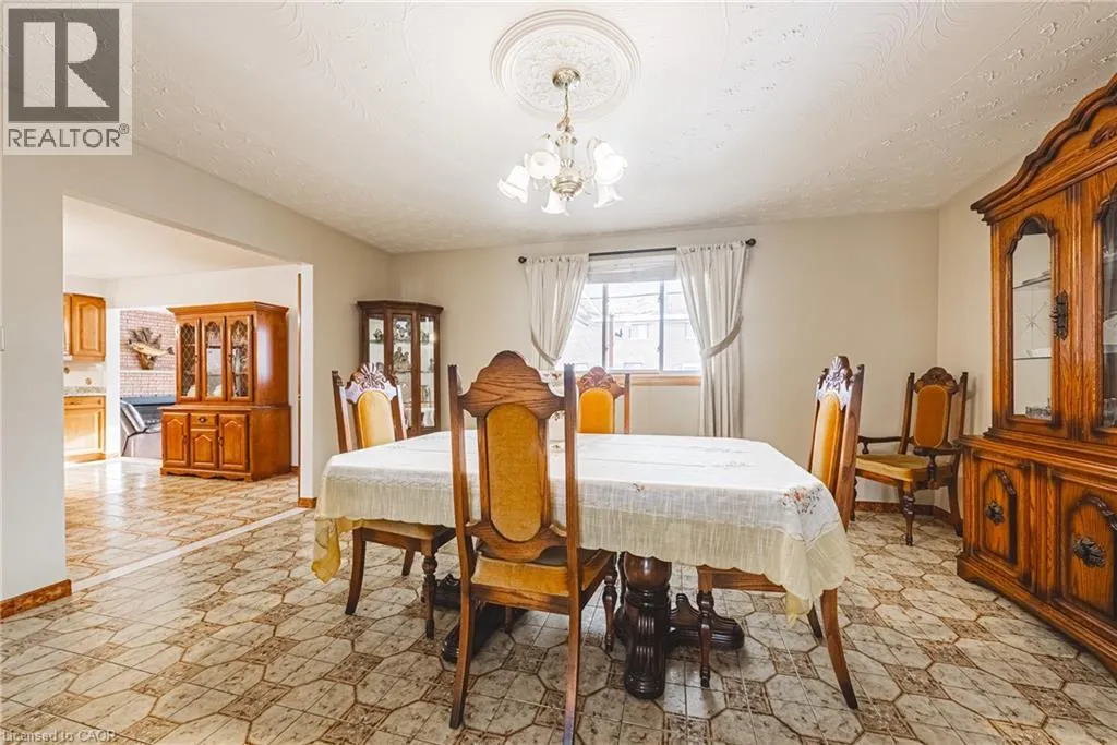 Upper Paradise Rd to Hadeland Ave Welcome to 19 Hadeland Avenue â a well-maintained 2-storey brick home offering over 2,100 square feet of living space in a desirable West Mountain neighbourhood. This 3-bedroom, 2-bathroom home features a bright and functional layout with a large eat-in kitchen, formal living and dining rooms, and a cozy family room perfect for gatherings. The main floor also includes laundry and a 2-piece bath. Upstairs, the spacious primary suite offers a private 3-piece ensuite, while two additional bedrooms provide comfort for family or guests. The partially finished basement includes a large recreation area and a second kitchen, offering excellent in-law or rental potential. With a double garage, private double-wide drive, and a fenced yard, this home provides space, comfort, and convenience â just minutes from schools, parks, shopping, and highway access. Roof approximately 7 years old, windows approximately 10 years old, and furnace and A/C updated within the last year. (id:27476)