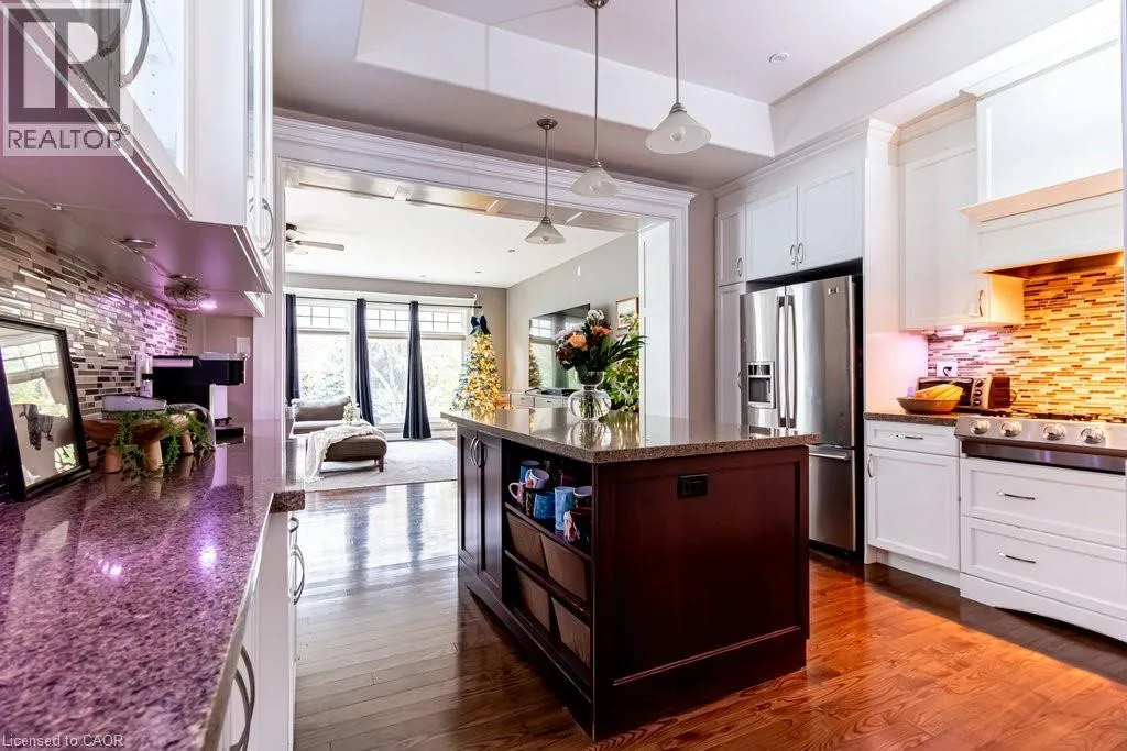 Between Dunsmure and King on the West side of Holton Circa 1911 charm meets modern comfort in this beautifully updated home, where leaded art-glass windows, coffered ceilings, and five fireplaces set a gracious tone. On an 80 x 104 ft lot, the home offers over 5,300 sq. ft. with 6 bedrooms and 4 baths. The open-concept kitchen and living area features granite counters, a six-burner gas range, double built-in ovens, and a grand living room overlooking the backyard through near floor-to-ceiling windows. Recent updates include a fully revamped lower level with flexible studio or family-room space, a nanny suite with kitchenette, a modern three-piece bath with walk-in rainfall shower, an enclosed laundry room, and new PVC piping. Upstairs, the primary bedroom with fireplace provides a serene escape, joined by three additional bedrooms, a four-piece bath, and a walkout to a 520 sq. ft. rooftop terrace. The third floor adds even more versatility, with a kitchenette, 2 pc bath, sitting nook, and a generous loungeâideal for creative work, teens, guests, or movie nights. Outside feels like a private retreat, with a fishpond, cabana, on-ground pool with newer filter and liner, gazebo, refreshed decking, lounging areas, and new grass. A repainted front porch and new gate boost curb appeal. Did I mention the double 80-ft frontage lot? Offers potential for severance and is perfect for multi-generational living. Set on a lush double lot, the home is steps from the Bruce Trail, Gage Park, Rosedale Tennis Club, the Bernie Morelli Recreation Centre, transit, and schools. If your current home feels tight, this one offers room for everyone to breathe and enjoy their own space. (id:27476)