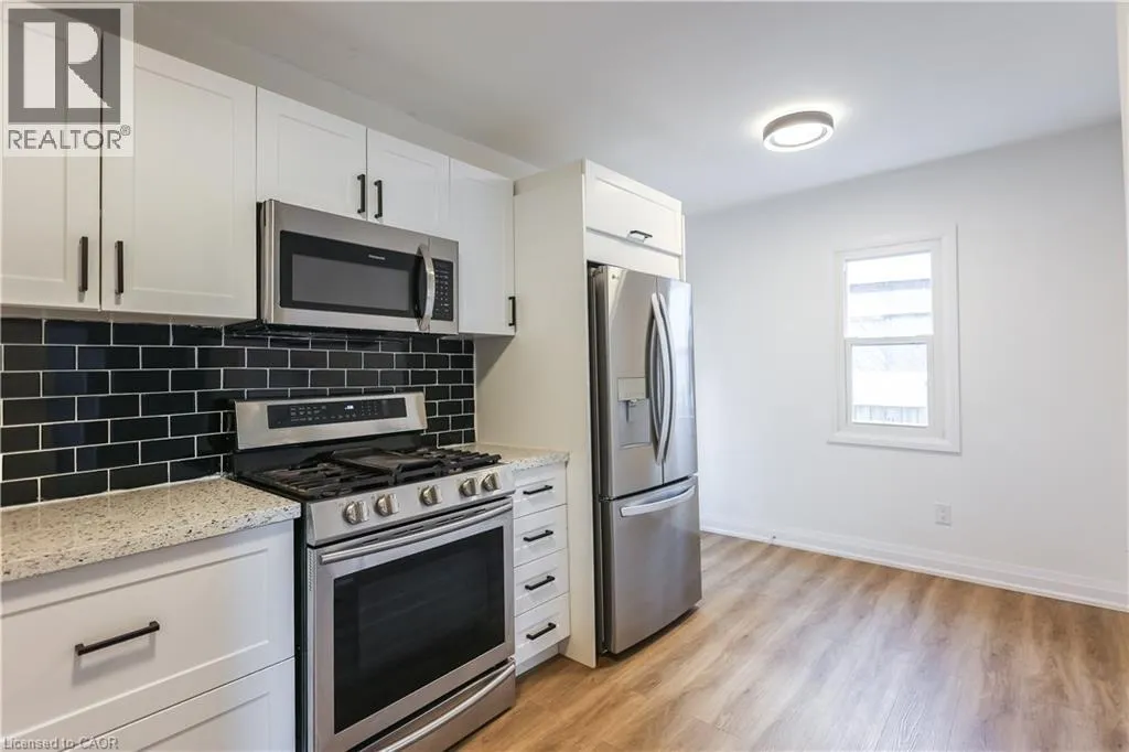 head westbound on cannon st e, on your right hand side Discover 1275 Cannon St E - a fully renovated, move-in ready Victorian-style home in the heart of Hamilton's east end. With 3 bedrooms, 2 bathrooms, and 914 sq ft of beautifully finished space, this charming property is ideal for first-time homebuyers, young couples, or small families starting out. The main floor features modern laminate flooring, fresh neutral paint, and a contemporary kitchen with stainless steel appliances, quartz-look counters, and a striking black subway tile backsplash. Upstairs, you'll find cozy bedrooms with thoughtful staging, including a children's playroom and a serene primary retreat. This home comes complete with a 1-car driveway and curb appeal that speaks to its classic roots. Located near Ottawa Street's trendy shopping district, parks, schools, and public transit, this is your chance to own a home full of character - at an affordable price. Looking to buy a home in Hamilton? Start here. (id:27476)