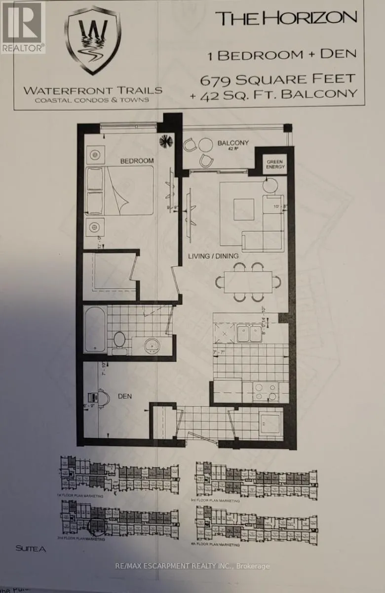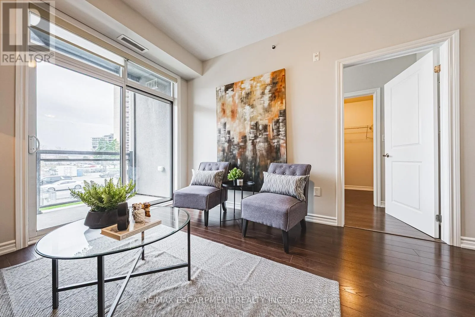 Cross Streets: Green & Frances. ** Directions: Green Rd- Francis. Beautiful 1 Bedroom + Large Den in Waterfront Trails!? Welcome to lakeside living in this Boutique building, well-designed condo located steps from Lake Ontario. This spacious 1 bedroom plus full-size den offers impressive flexibility - perfect for a guest room, office, or fitness space. Located in one of Stoney Creek's most scenic waterfront communities, you'll enjoy walking trails, park space, and a small beach just outside your door. Take in gorgeous sunset views and the peaceful lakefront atmosphere year-round. Waterfront Trails is known for its exceptional upkeep and efficiency. Residents enjoy a spectacular rooftop terrace with panoramic views of the lake and escarpment, a well-equipped fitness centre, and an inviting party room. The building is pet-friendly and offers secure underground parking and an unobstructed view of the Escarpment. This unit includes 1 underground parking space and a locker. Additional parking may be available for a reasonable monthly fee. Conveniently located close to the QEW, and shopping, this condo is an excellent choice for first-time buyers, downsizers, or anyone seeking a calm, low-maintenance lifestyle by the water. (id:27476)