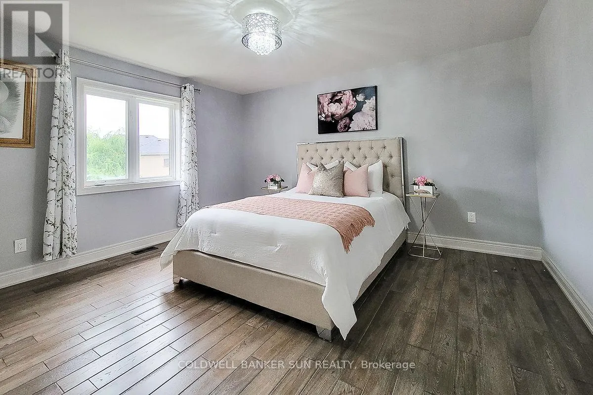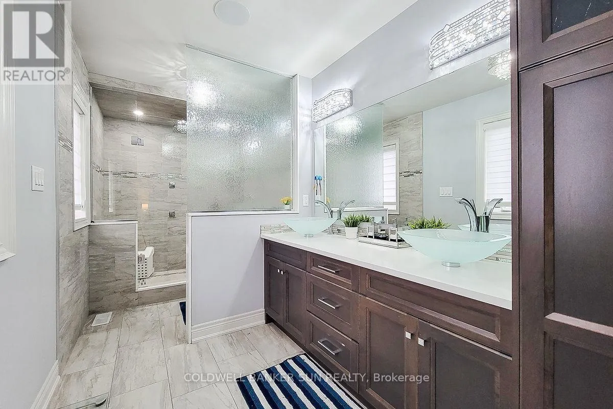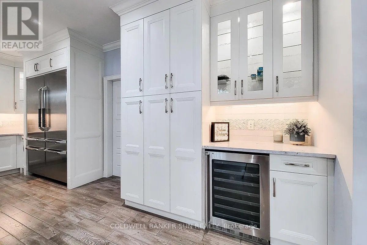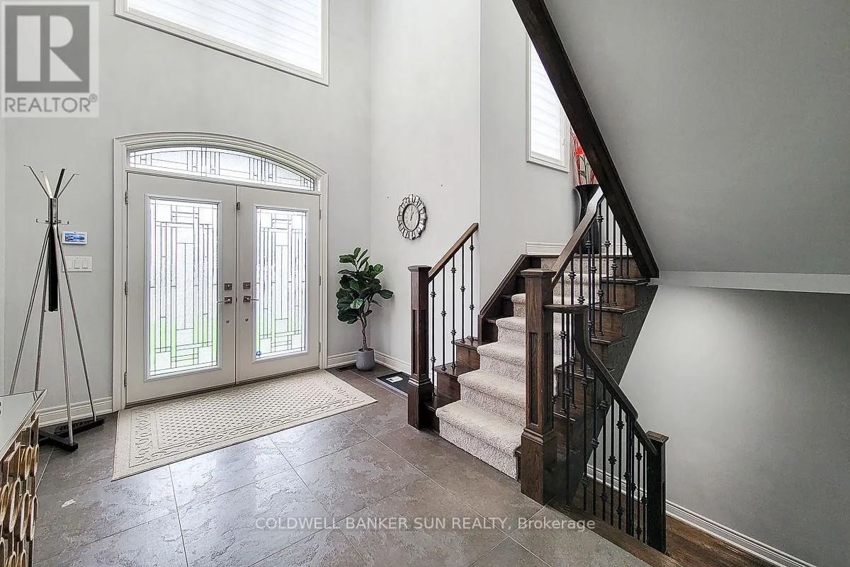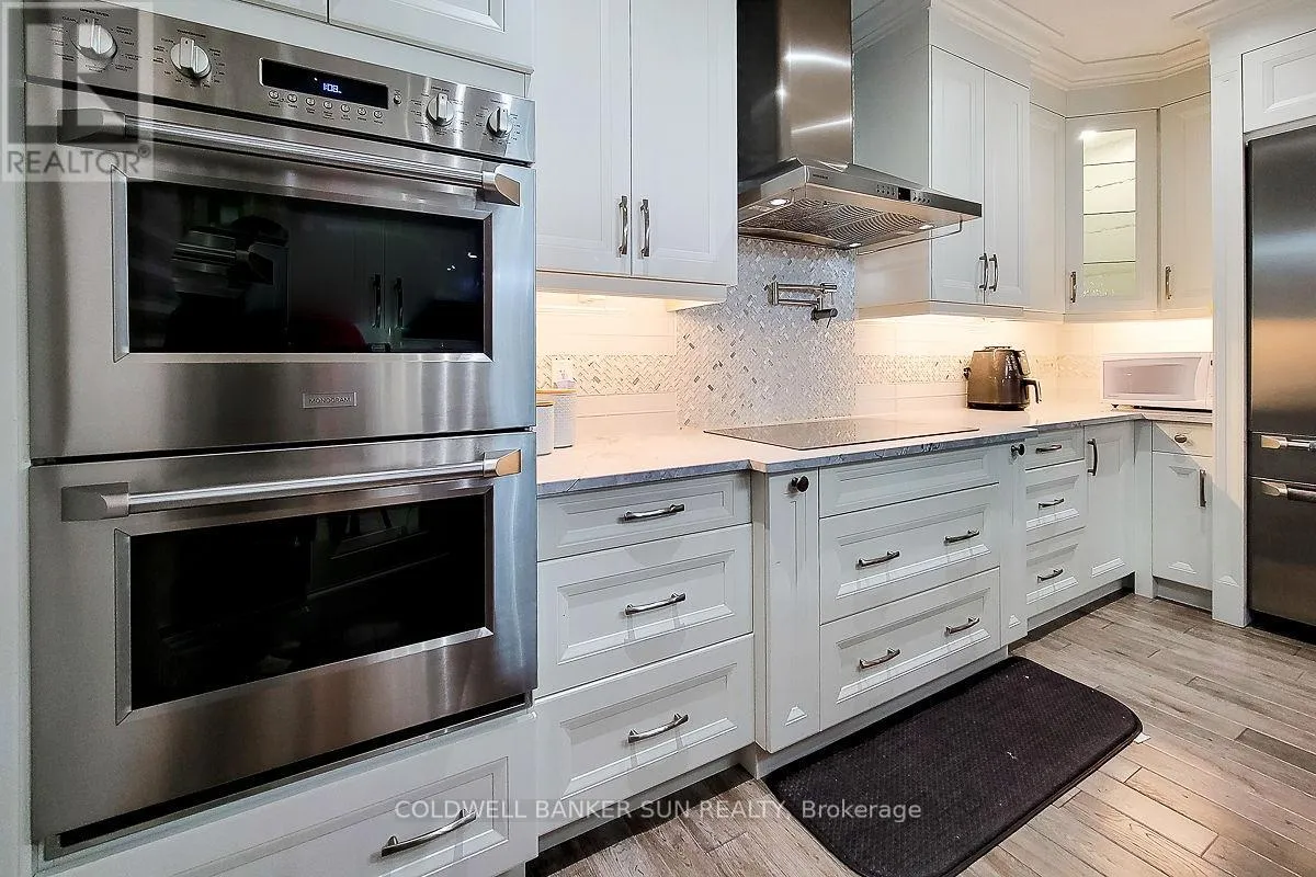 Cross Streets: Kingspoint circ And Westhampton Way. ** Directions: Exit 78 (Fifty Rd & QEW). Welcome to this beautifully designed 3000 sq ft home on a premium pie-shaped lot in Stoney Creek's sought-after Lake Pointe community. This property sits on Kingspoint Circle, just steps from the lake, Fifty Point Conservation Area, major shopping, and convenient commuter routes. Built by Marcasa Homes, the exterior features brick with stone and stucco accents for a modern, upscale look. Inside, you're greeted by a wide open layout, an impressive oak staircase with iron spindles, and contemporary hardwood floors throughout. The craftsmanship shows in every detail. The kitchen is a standout, with extended maple cabinetry, textured glass display doors, pot drawers, a large breakfast island, a pantry-style fridge enclosure, granite counters, and a striking backsplash. The family room offers a gas fireplace with a recessed TV niche and elegant millwork, including decorative ceilings, deep baseboards, and upgraded interior doors. Upstairs, the primary suite is a true retreat with a luxury walk-in closet and a spa-inspired ensuite featuring a double vanity. The second bedroom also has its own ensuite, ideal for family or guests. This home blends quality construction, thoughtful design, and a prime location, offering a move-in-ready lifestyle near the waterfront and nature. ** This is a linked property.** (id:27476)