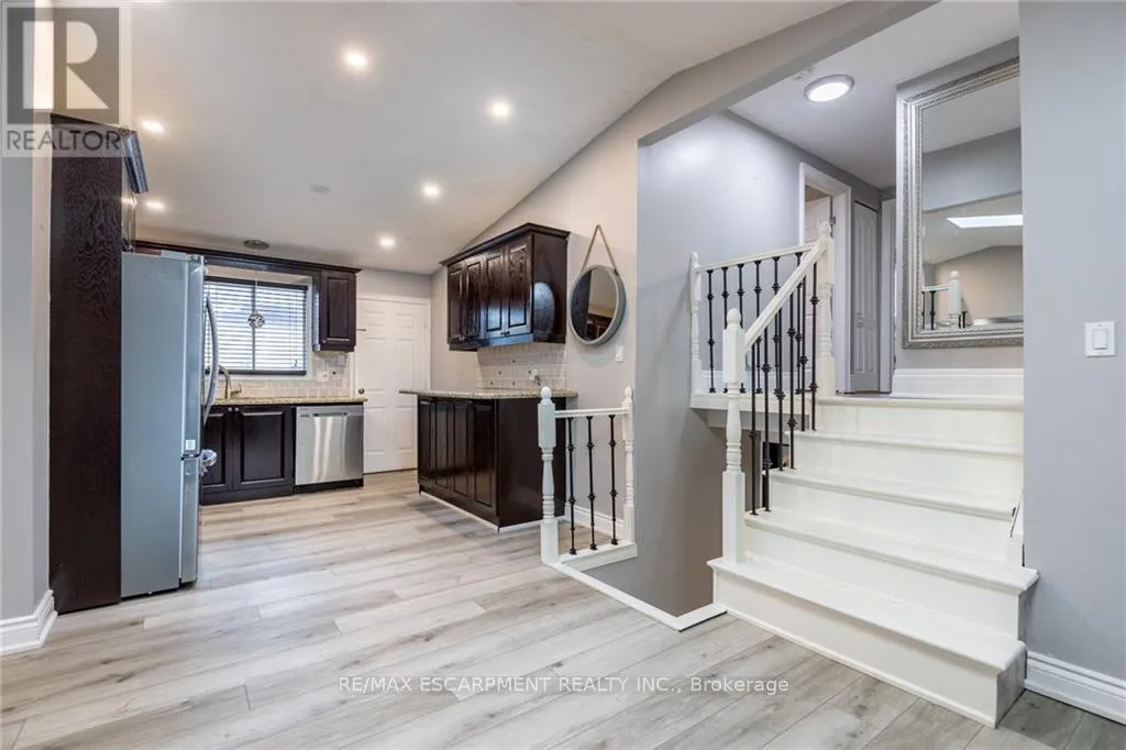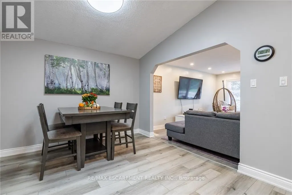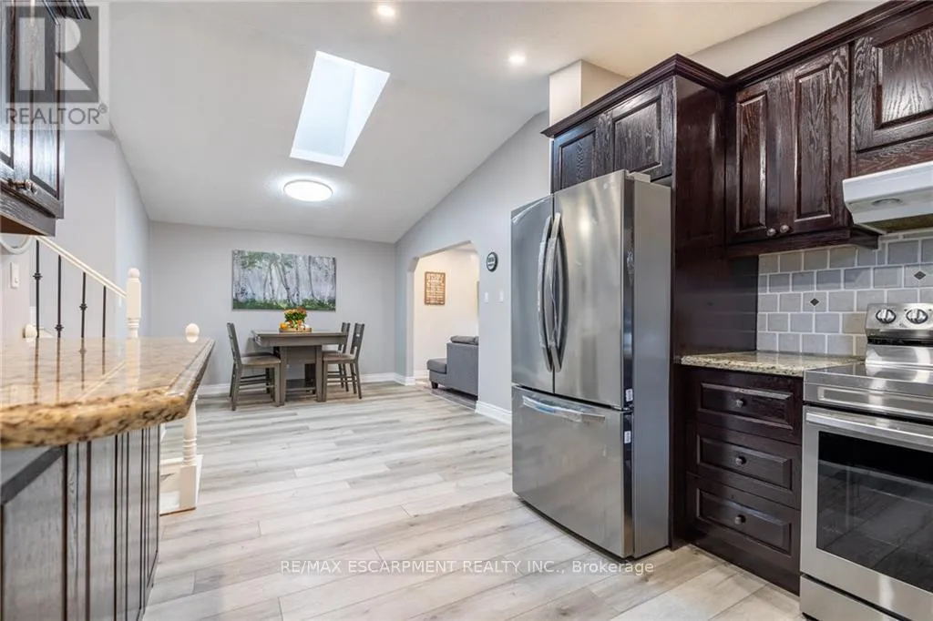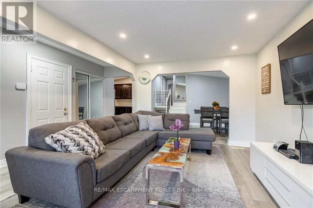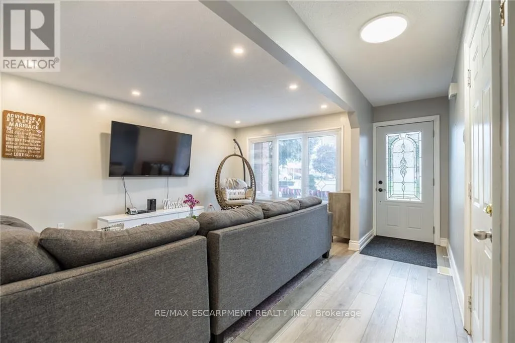 Gordon Drummond to Twin Oaks Welcome to this beautifully maintained 4-level backsplit, ideally situated in the highly sought-after community of Stoney Creek. Offering approximately 2,300 sq ft of finished living space, this home is perfectly suited for large or growing families. Step inside to discover a bright and airy main floor featuring an open-concept living and dining area - ideal for entertaining. The spacious kitchen is both stylish and functional, complete with granite countertops and brand new stainless steel appliances (2023).Upstairs, you'll find a generous primary bedroom, two additional well-sized bedrooms, and a full 4-piece bath. The lower level boasts a large family room that can easily be transformed into a luxurious primary suite, complete with its own 3-piece bathroom. Descend to the fully finished basement where you'll find a versatile rec room - perfect for a games area, home office, or even a 4th bedroom with double closets. This level also includes a dedicated laundry room, cold storage, and additional space for all your storage needs. The private backyard is a serene retreat, featuring a covered deck - perfect for enjoying your morning coffee or hosting evening gatherings. A double-wide driveway provides ample parking for up to 6 vehicles. Recent updates include: New screen doors (2022)Garage door with automatic opener (2022)All new flooring on the main and lower levels (2022)Central A/C unit (2022)New stainless steel appliances: fridge, stove, washer, and dryer (2023)Backyard deck (2022). Location is everything: Just minutes to major highways, and within close proximity to shopping, dining, movie theatres, parks, and excellent schools. (id:27476)