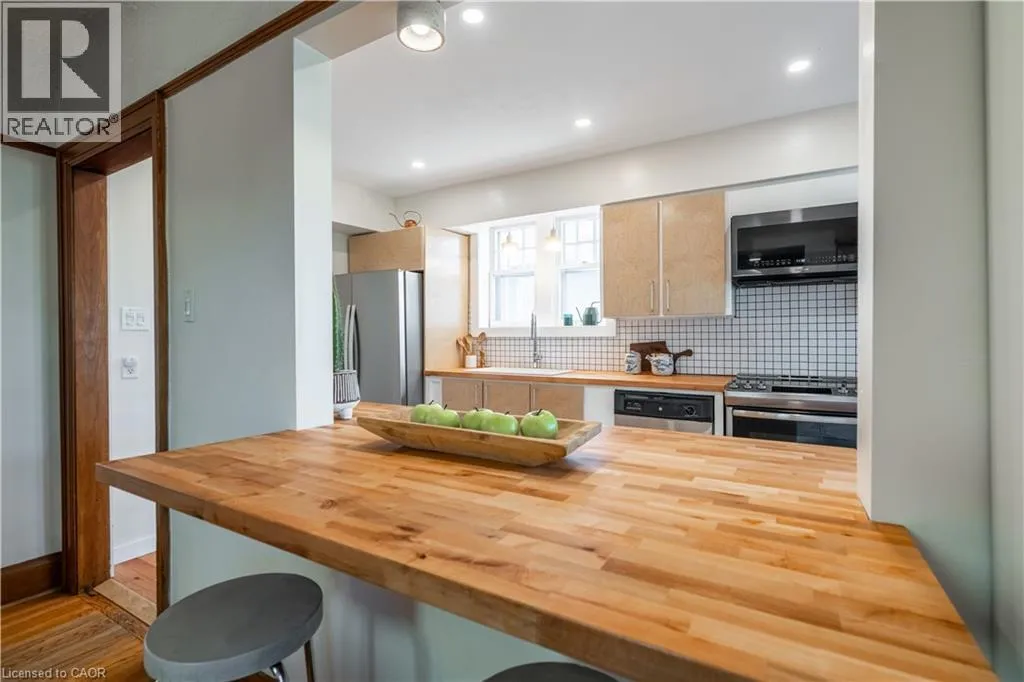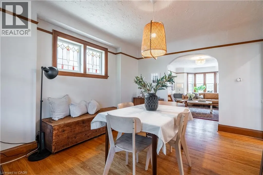 Maple Avenue to Weir Street South Welcome to 26 Weir Street South, a charming and character-filled 1.5 storey brick home offering1,326 sq ft of move-in ready living space. From the moment you step inside, you'll be captivated by the timeless original woodwork, including the elegant staircase, classic bannisters, solid wood doors, and vintage baseboards that echo the home's historic charm. Stunning stained glass windows in both the foyer and dining room add a unique touch of elegance and warmth. The main floor features a spacious living room with a large bay window that floods the space with natural light. The formal dining room is perfect for hosting, while the bright eat-in kitchen includes a breakfast bar for casual meals and conversation. Sliding patio doors lead to a generous covered deck, ideal for entertaining guests. Step outside to a private, fully fenced backyard, a tranquil and beautifully landscaped retreat. Whether you're relaxing with a morning coffee, hosting a summer barbecue, or letting the kids play freely, this peaceful outdoor space offers something for everyone. Upstairs, you'll find three comfortable bedrooms and an updated 4-piece bathroom. The basement adds even more living space with a cozy rec room, a 2-piecebath, and a separate side entrance, offering in-law suite or rental potential. A paved driveway with parking for up to three vehicles, leads to a detached single-car garage with hydro, perfect for a workshop or man cave. Located in a friendly, family-oriented neighbourhood just steps from Montgomery Park, and close to schools, restaurants, shopping, and public transit. Quick highway access makes commuting to Toronto or Niagara a breeze. Don't miss your chance to own this beautiful, well-maintained home, its full of character, comfort, and charm. Book your showing today! (id:27476)