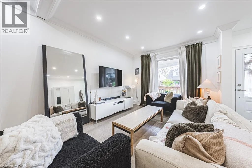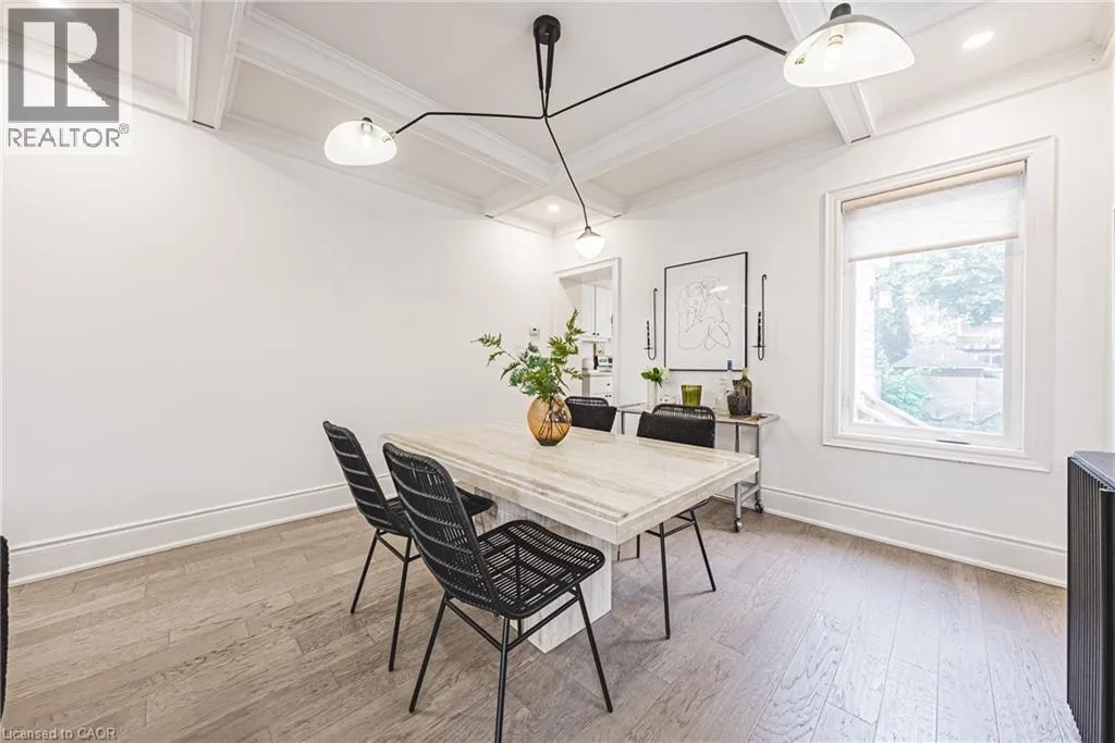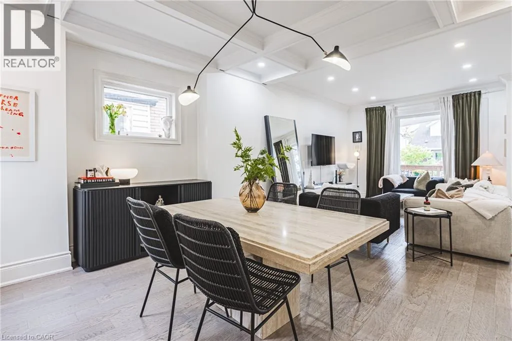 on Kensington between King St E & Lawrence Road Welcome to 110 Kensington Avenue South! Set in the heart of the desirable Delta neighbourhood, this beautifully renovated home blends 1920s character with modern comfort. Just steps from Gage Park and a short walk to the shops and cafés of trendy Ottawa Street, this property offers the perfect mix of charm, convenience, and community. Curb appeal shines with an inviting front porch, beautifully framed with exterior lighting. Inside, bright open-concept living features stunning engineered hardwood flooring, fresh paint, crown moulding, baseboards, and elegant trim. The dining room highlights a sophisticated coffered ceiling with a statement light fixtureâideal for entertaining. The kitchen impresses with white cabinetry, pantry, quartz countertops, stainless steel appliances, double sink, and modern backsplash, with a walkout to a private, fenced backyard complete with a patioâperfect for relaxing or hosting. Additional updates include newer windows and exterior doors, newer shingles, upgraded electrical and plumbing fixtures. Located in a family-friendly neighbourhood surrounded by mature trees, trails, parks, schools, and transit, this home offers classic charm, thoughtful upgrades, and easy access to the best of Hamilton living. Come see for yourself. (id:27476)