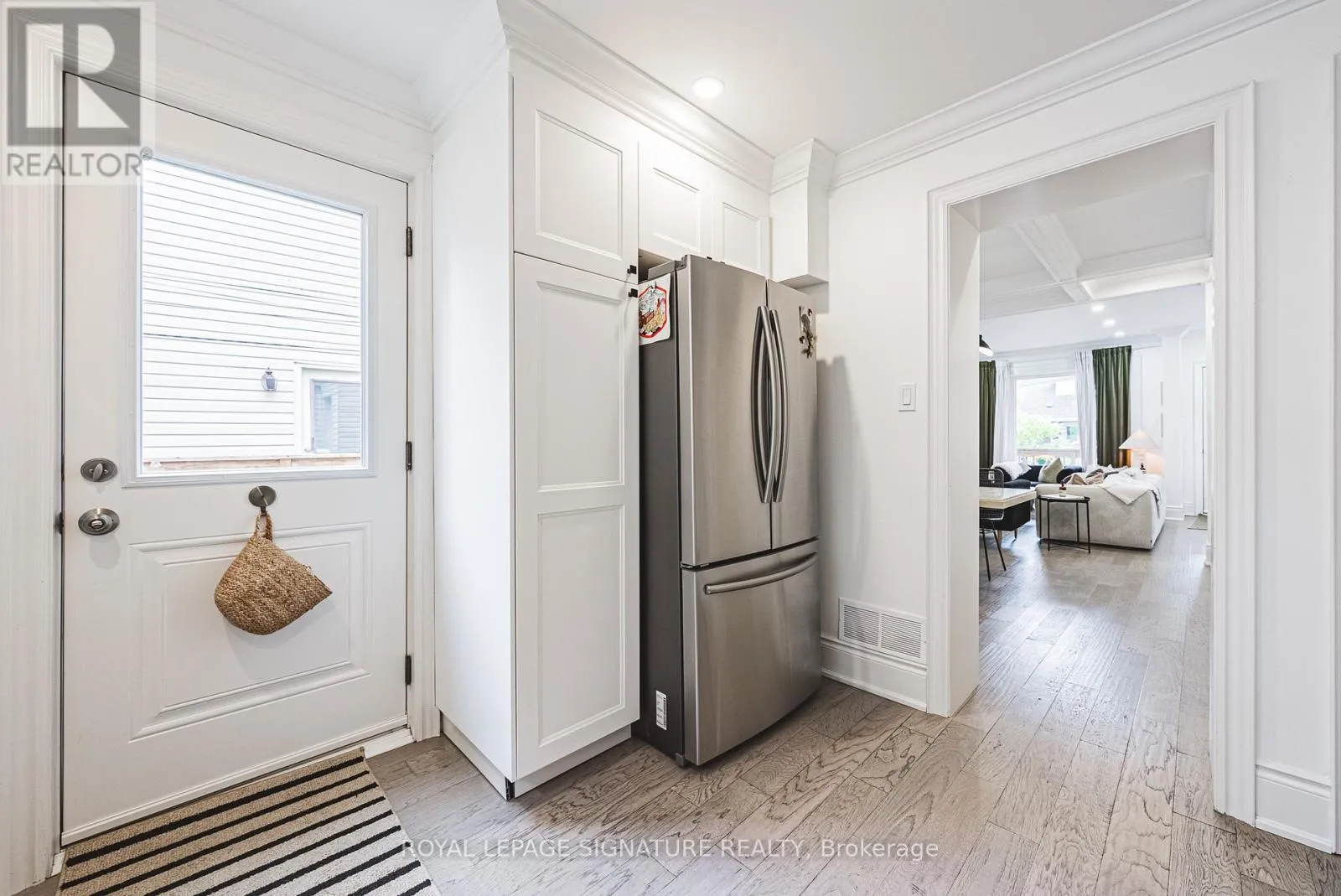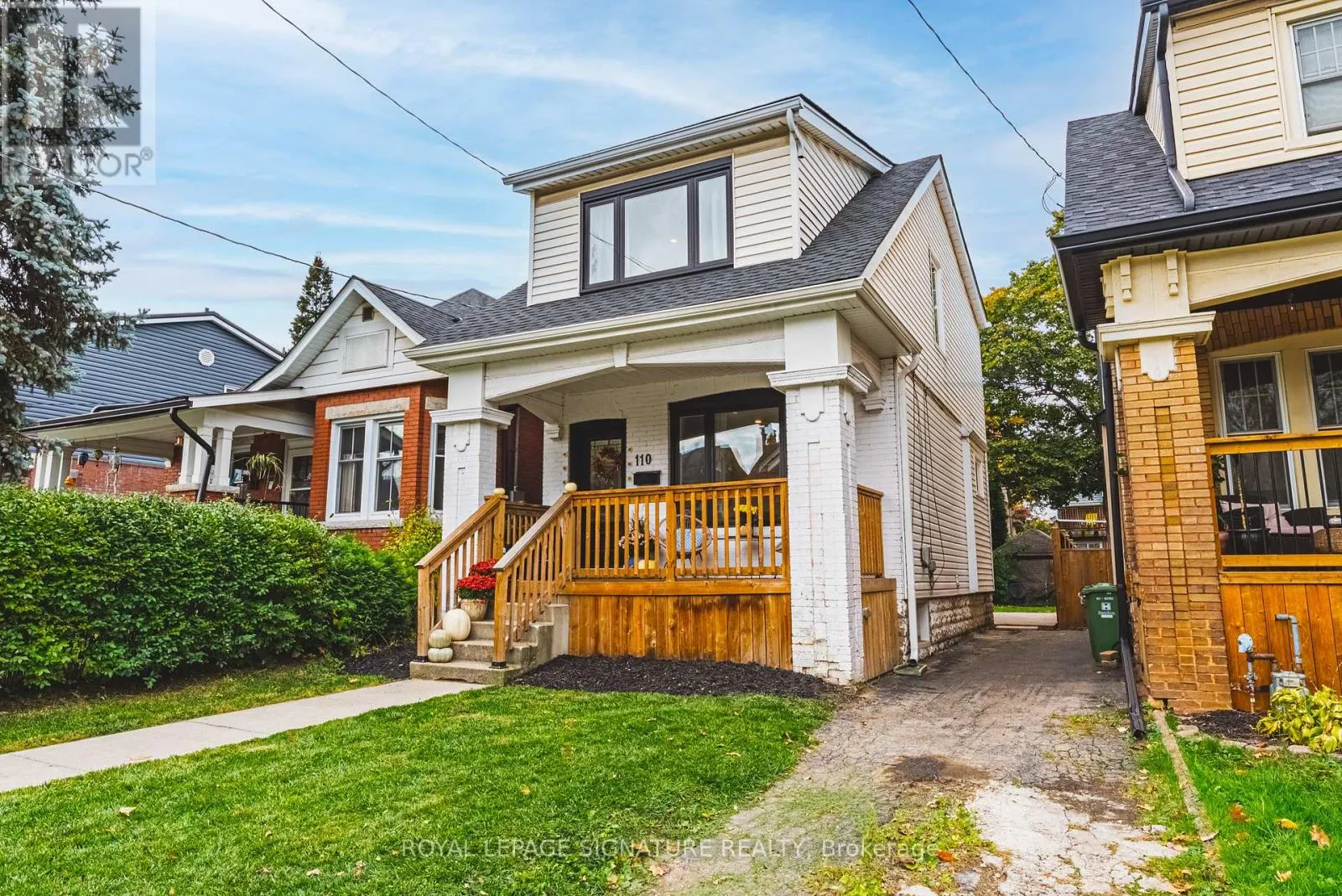 Lawrence Road Welcome to 110 Kensington Avenue South! Set in the heart of the desirable Delta neighbourhood,this beautifully renovated home blends 1920s character with modern comfort. Just steps from Gage Park and a short walk to the shops and cafés of trendy Ottawa Street, this property offers the perfect mix of charm, convenience, and community. Curb appeal shines with an inviting front porch, beautifully framed with exterior lighting. Inside, bright open-concept living features stunning engineered hardwood flooring, fresh paint, crown moulding, baseboards, and elegant trim. The dining room highlights a sophisticated coffered ceiling with a statement light fixture-ideal for entertaining. The kitchen impresses with white cabinetry, pantry, quartz countertops, stainless steel appliances, double sink, and modern backsplash, with a walkout toa private, fenced backyard complete with a patio-perfect for relaxing or hosting. Additional updates include newer windows and exterior doors, newer shingles, upgraded electrical and plumbing fixtures. Located in a family-friendly neighbourhood surrounded by mature trees,trails, parks, schools, and transit, this home offers classic charm, thoughtful upgrades, and easy access to the best of Hamilton living. Come see for yourself. (id:27476)
