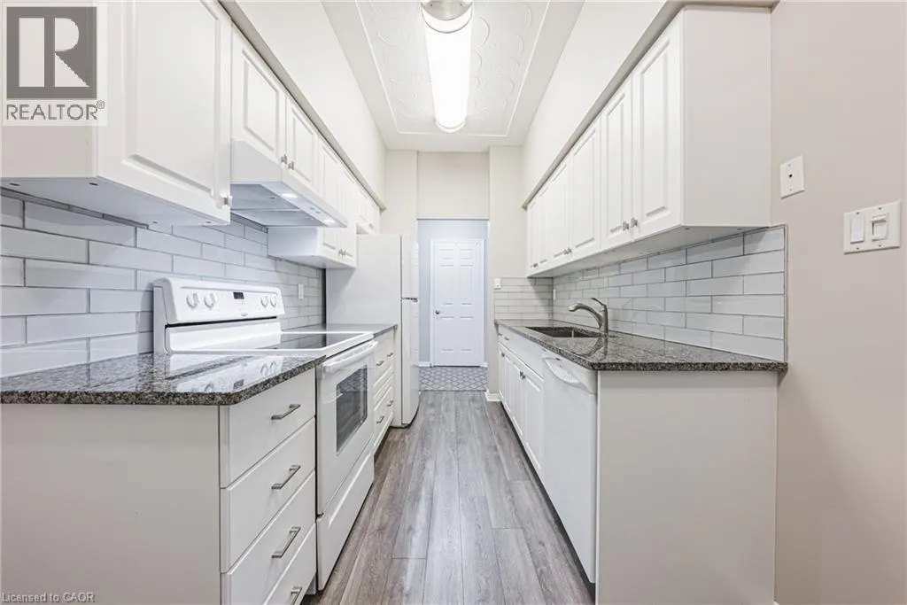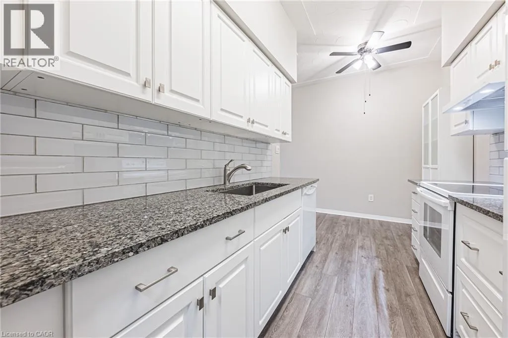 Exit Red Hill Valley PKWY at Greenhill, left on Harrisford St. This is the definition of effortless living! Perfect for anyone who wants simplicity without compromise. Easy access, a calm place to unwind, and a building full of amenities, all at your fingertips. The unit layout gives you real breathing room with a natural flow through the kitchen and main living spaces. Soft, natural light filters through the California shutters, giving the spacious main living area that warm, inviting glow. With two bedrooms, two bathrooms, in-suite laundry, an updated kitchen with tons of cupboard space, an enclosed balcony, and convenient location directly off the Red Hill Valley Parkway, this condo has the full lineup that makes day-to-day living feel a little easier. This unit includes secure underground parking, a sizeable private locker, and notably, the most attractively priced offering currently available in the building. This is a building that also truly takes care of its residents. You'll find everything from a proper fitness centre and indoor saltwater pool to a sauna, library, pickleball courts, party room, workshop, and a car wash. Wrapped in mature trees and steps from scenic trails, this spot puts daily essentials right around the corner - schools, shopping, transit - all of it. You're only minutes from the QEW and 403, keeping travel simple and efficient. Suite 104 at Harris Towers is ready when you are. Book your showing and come take a look! (id:27476)