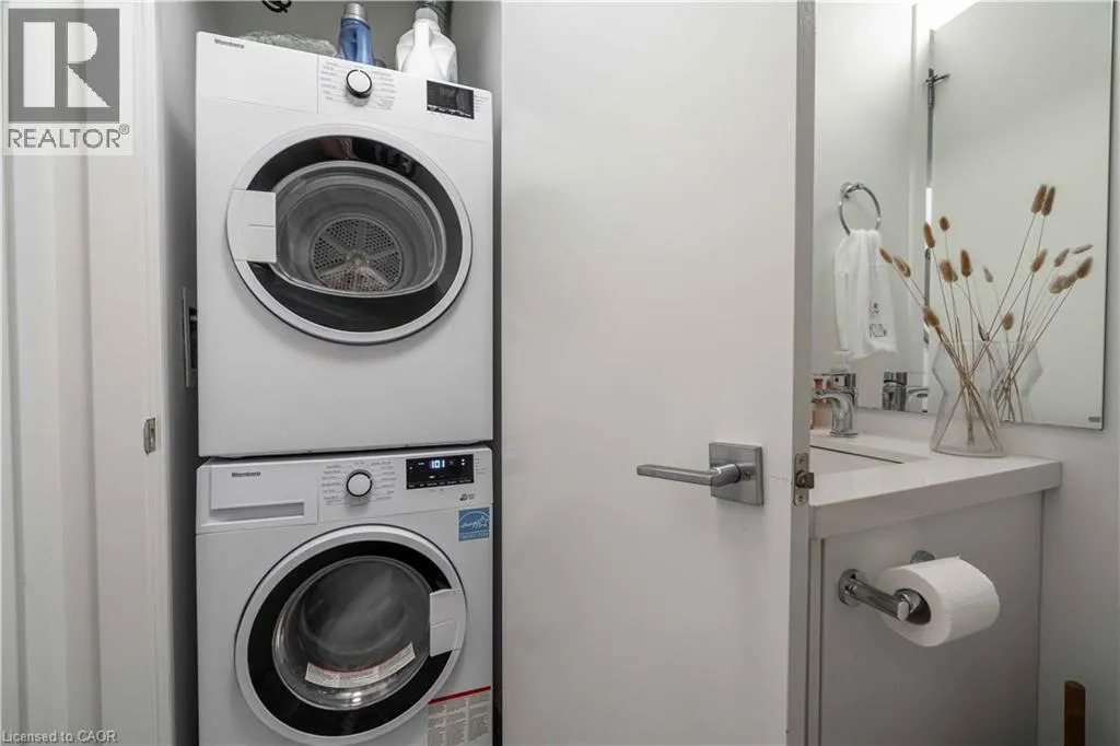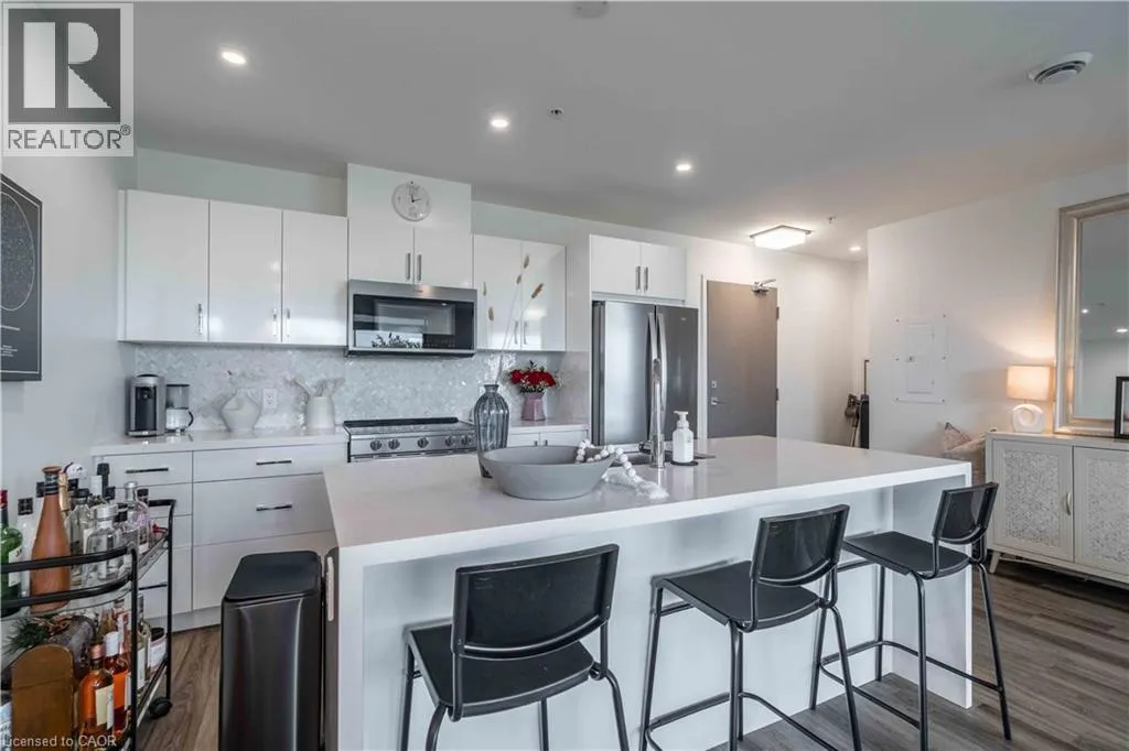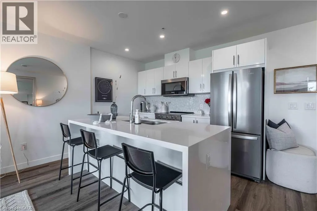 VICTORIA AVE S TO CHARLTON AVE E Perfect for first-time buyers, down-sizers, or investors, this Spruce model unit in Vista 3 Condos offers two bedrooms and two bathrooms. Located in Hamilton's vibrant Stinson neighbourhood at the base of the escarpment, the open-concept living space features a gorgeous kitchen with a white quartz island, waterfall edge, and stainless steel appliances. The amazing unit boasts pot lights, a neutral palette, custom window coverings, laminate flooring, and in-suite laundry. Enjoy breathtaking city views from the covered balcony, and relax in the primary bedroom, which includes a walk-in closet and a four-piece ensuite. The building offers amenities such as a party room, fitness centre, and visitor parking. This unit also includes one underground parking space and a locker and is conveniently located near Juravinski, The General, and St. Joseph's Hospital as well as public transit. (id:27476)
