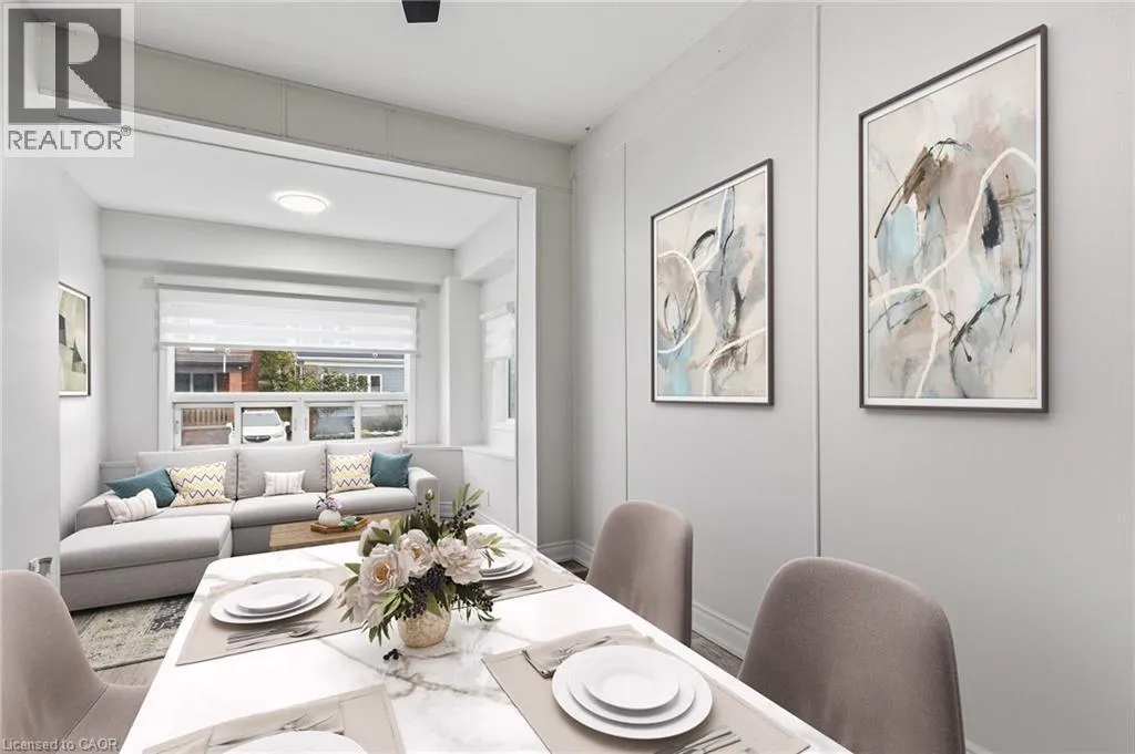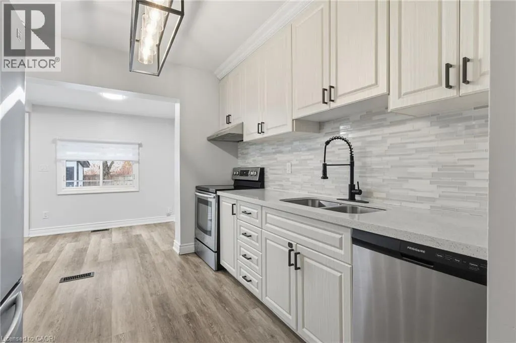 South of Cannon St.E, between Belview Ave and Gage Ave N Beautifully renovated detached home in Hamiltonâs sought-after Crown Point neighbourhood. This bright and spacious 3-bedroom, 3-bathroom home offers modern finishes and thoughtful updates throughout. The main floor features a combined living and dining area with abundant natural light. The contemporary kitchen has quartz countertops, ceramic tile backsplash, stainless steel appliances, and ample cabinetry. Just off the kitchen, there is a versatile flex space, ideal for a family room or breakfast area. From here, walk out to the deck and patio overlooking the low-maintenance backyard. This level also includes a convenient 3-piece bathroom and laundry. Upstairs, youâll find two bedrooms, one with a studio kitchen. There is a bright 4-piece main bathroom. The finished lower level provides a generous recreation room, an additional 4-piece bathroom, and a utility room. This carpet-free home includes vinyl, laminate, and ceramic flooring throughout. Street permit parking only. Just steps from the trendy shops and restaurants of Ottawa Street. Tenant pays hydro, water, and natural gas. (id:27476)